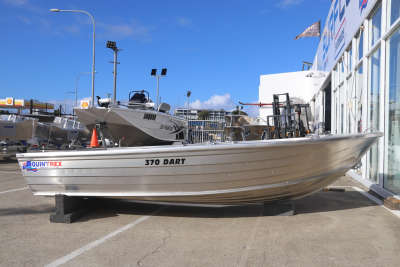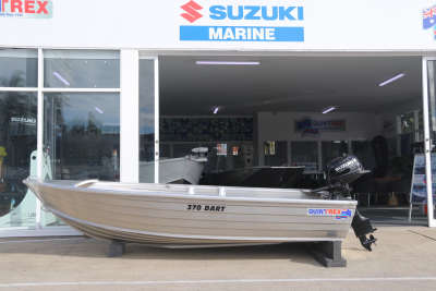 In Stock & Available Now! The 370 Dart Features 1.60mm round swage pressed bottom sheets, this model is capable of handling a bit of rough n tumble. For practical convenience, built-in glove-box is standard. This model also features Bench Seat Flotation to sit 3 people comfortably and is rated a maximum 20hp, so there's plenty of oomph to get around