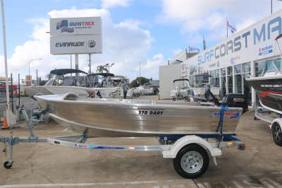 In Stock & Available Now! The 370 Dart Features 1.60mm round swage pressed bottom sheets, this model is capable of handling a bit of rough n tumble. For practical convenience, built-in glove-box is standard. This model also features Bench Seat Flotation to sit 3 people comfortably and is rated a maximum 20hp, so there's plenty of oomph to get around
