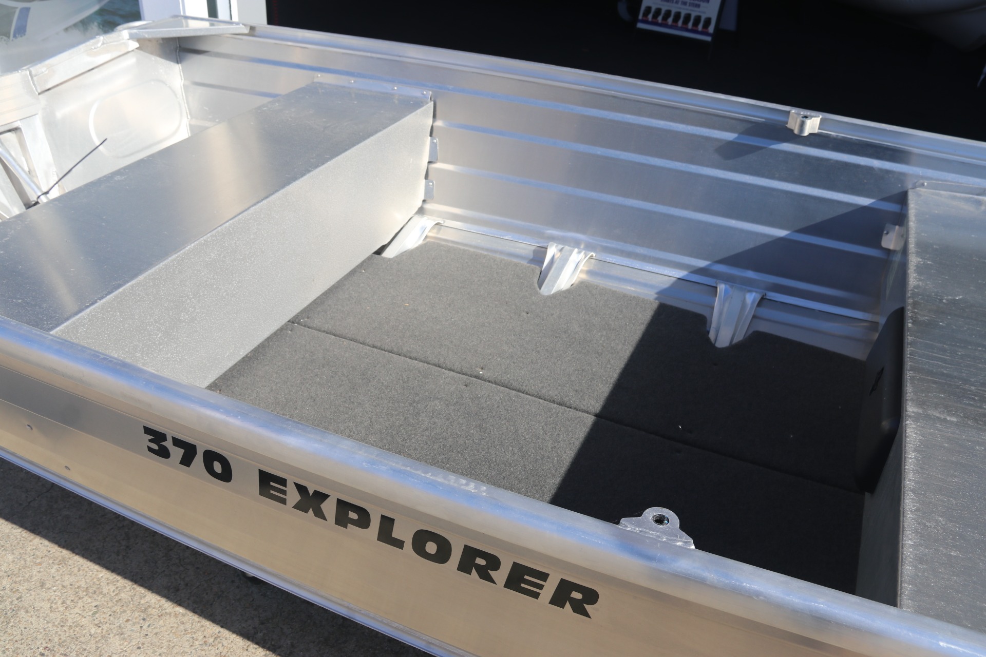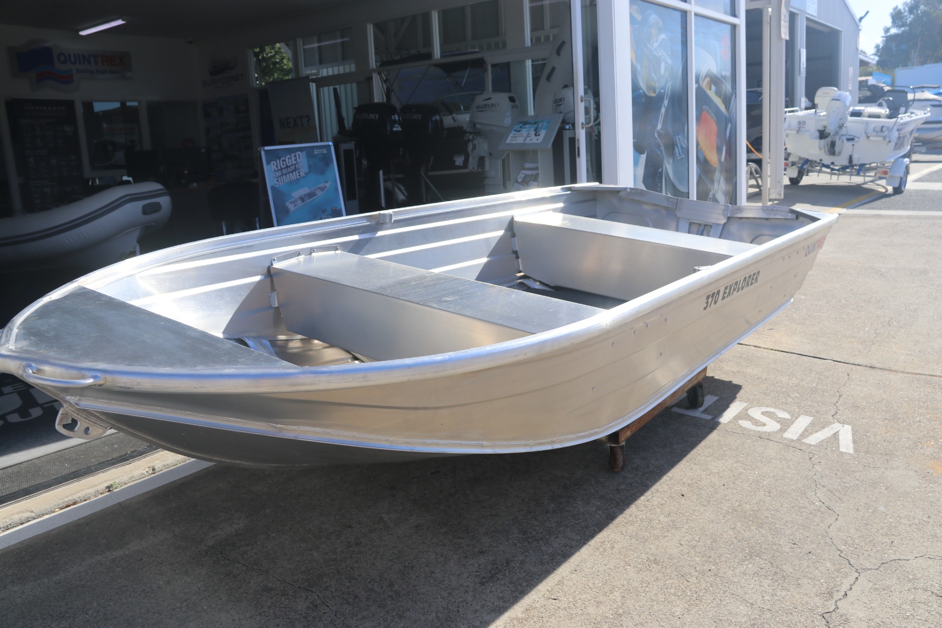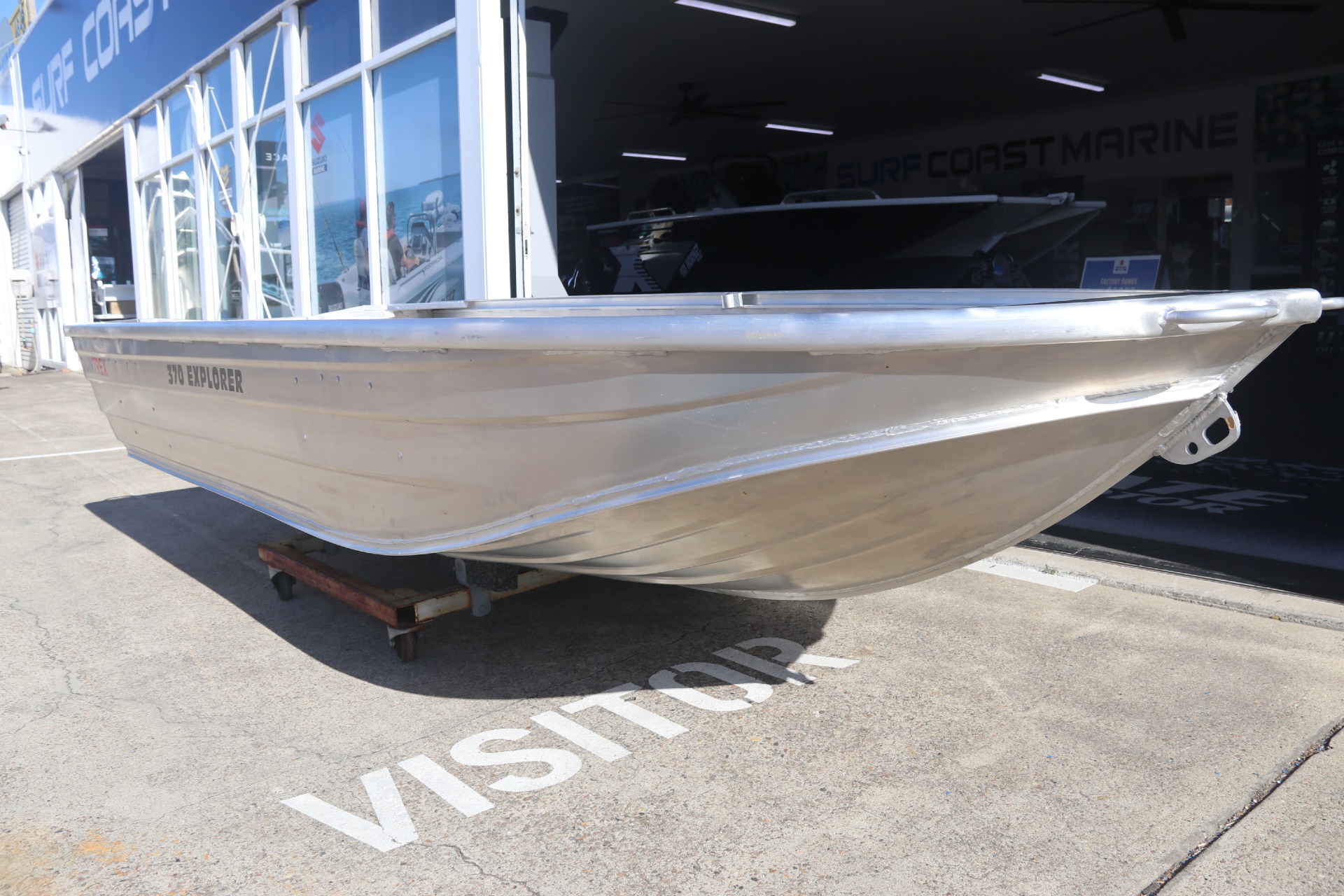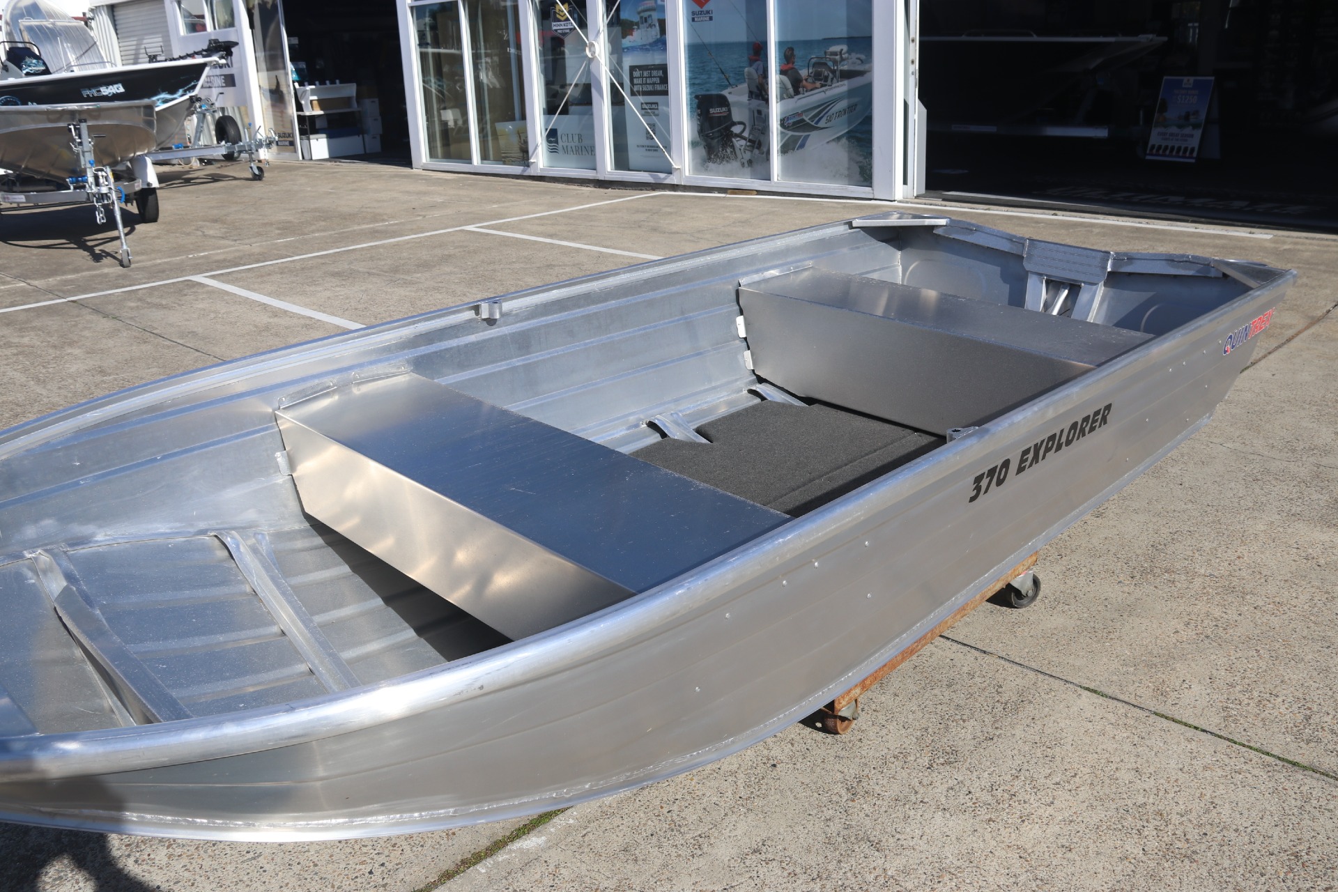 In Stock now at a Deal saving $600 - hull is 12 months old ! With a little more room to move, the 370 Explorer will fit nicely atop most utes for extra adventures when travelling. A one piece external Solid T Keel gives extra durability when loading and the Eclipse Hull allows for a comfortable and enjoyable day out on the water
