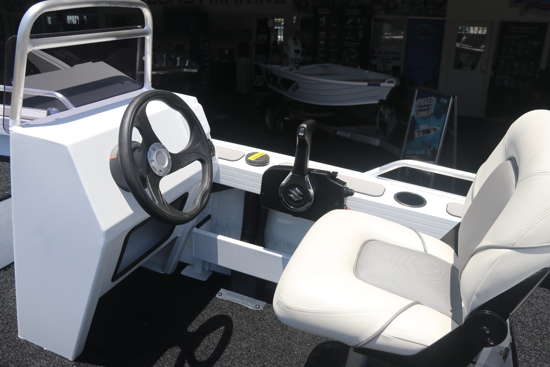 - NEW SIDE CONSOLE WITH SCREEN & GRABRAIL, GAUGES, SWITCHES, UNDER HELM STORAGE SHELF DRINK HOLDERS & LARGER AREA TO MOUNT BIG SOUNDERS