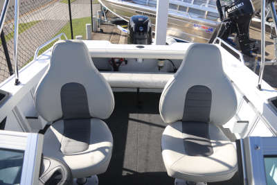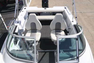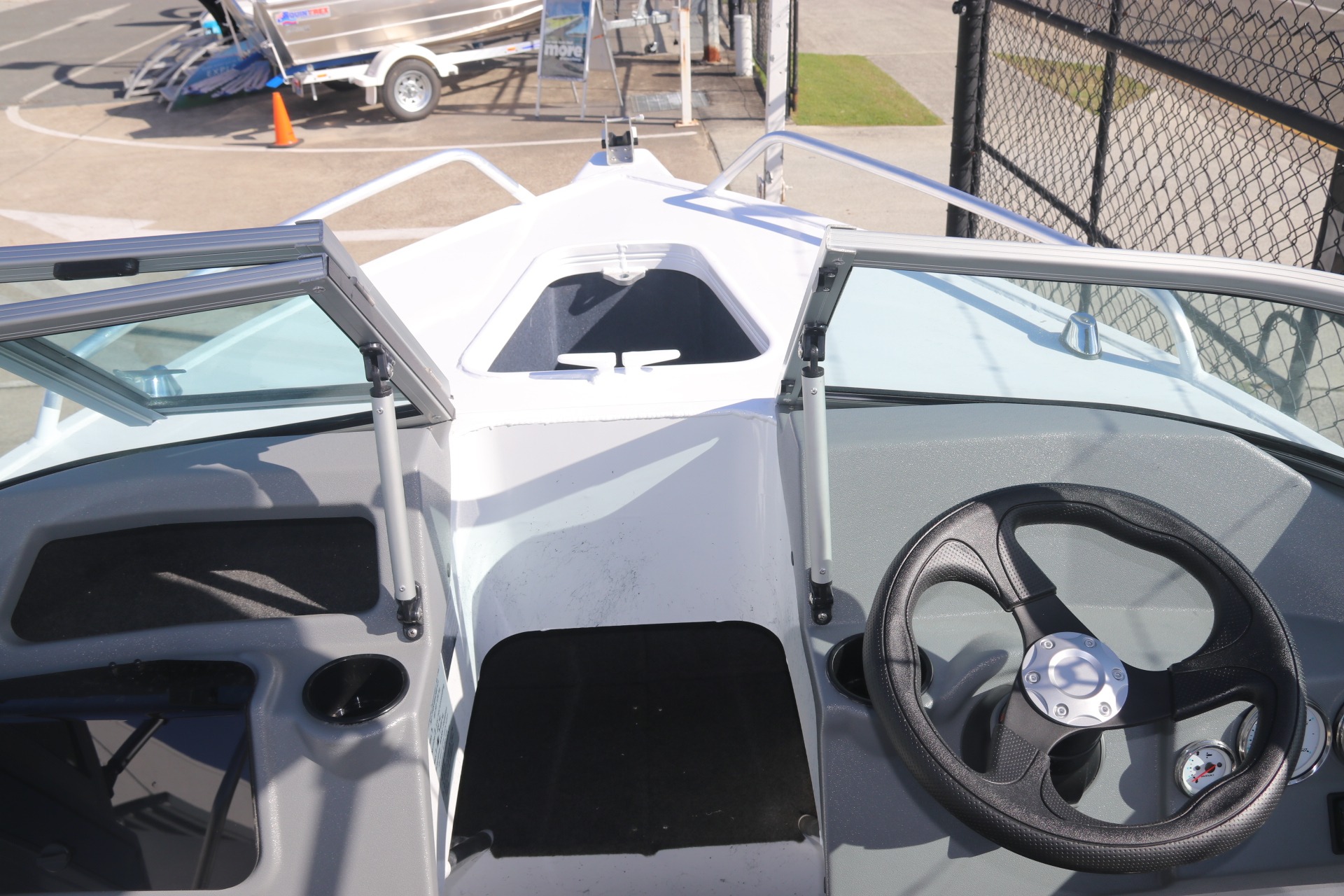 The transom with the duckboard positioned higher on the stern to glide over the water, has a redesigned dashboard for a more seamless finish, a fresh aluminium deck fascia design, new split bow rail and bowsprit design, dual maxi brackets!