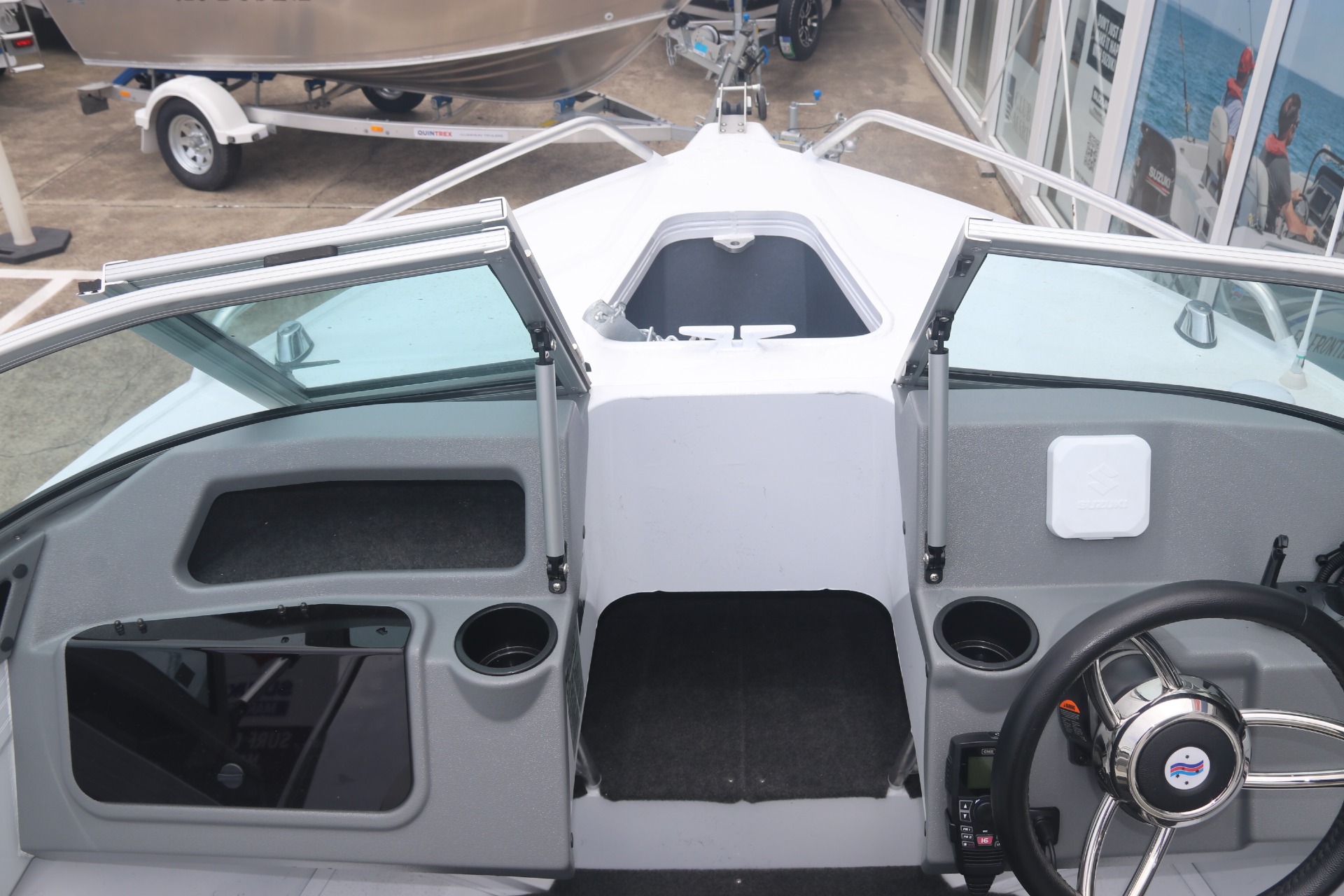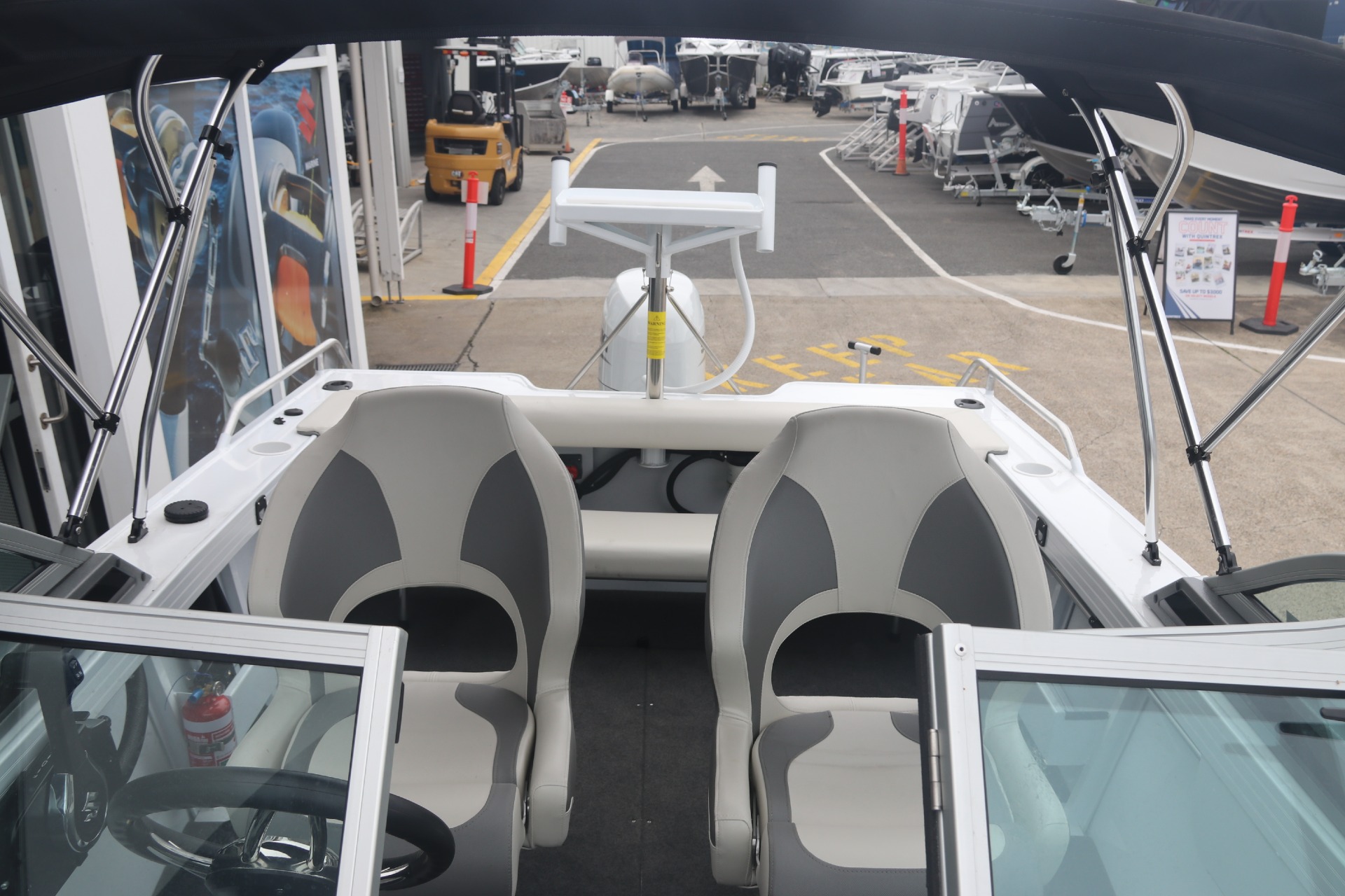 The transom with the duckboard positioned higher on the stern to glide over the water, has a redesigned dashboard for a more seamless finish, a fresh aluminium deck fascia design, new split bow rail and bowsprit design, dual maxi brackets!