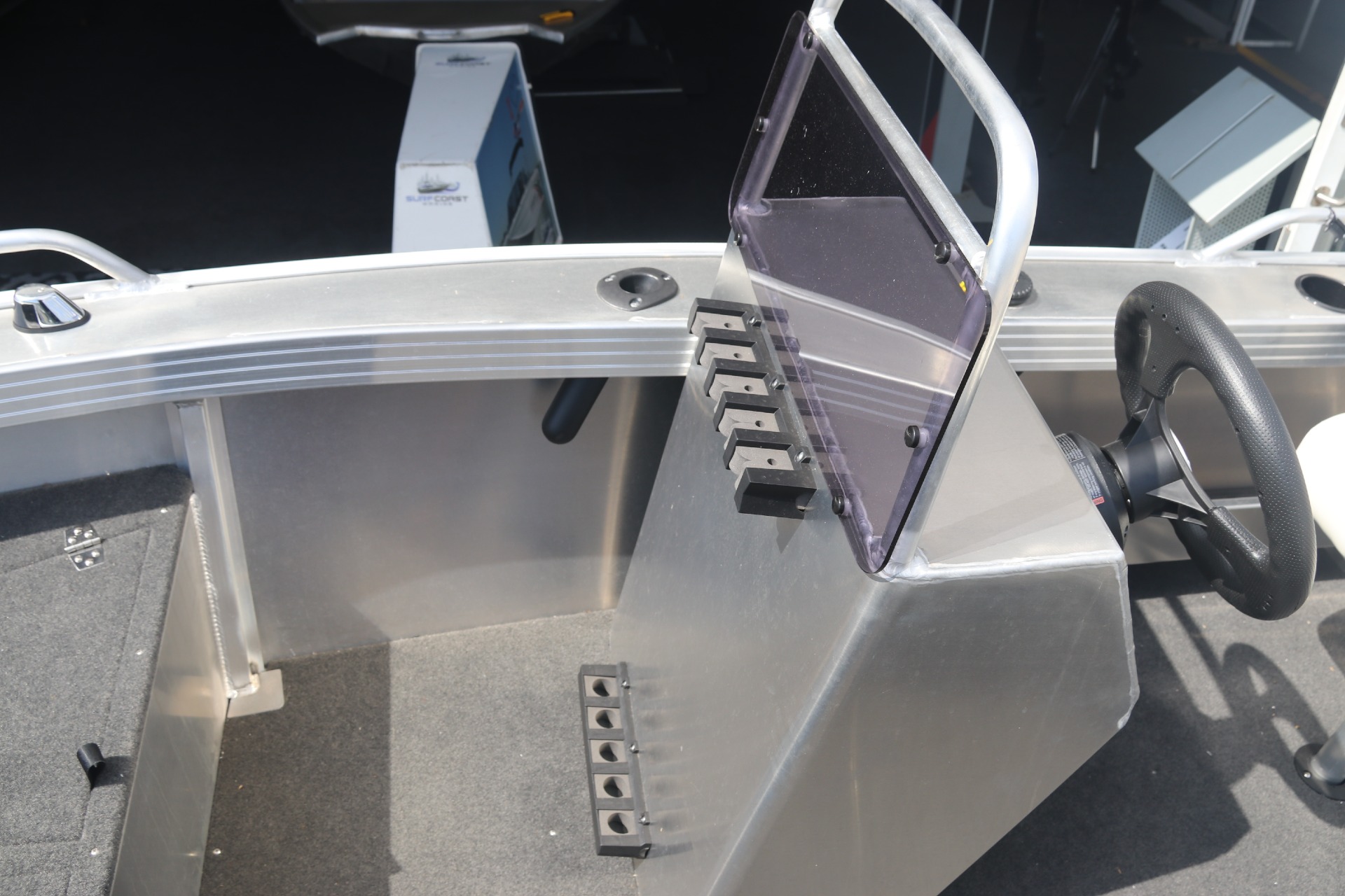 - SIDE CONSOLE WITH SCREEN & GRABRAIL, GAUGES, SWITCHES, DRINK HOLDERS & GLOVE BOX