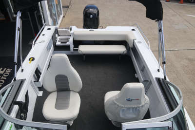 The new transom with the duckboard positioned higher on the stern to glide over the water, has a redesigned dashboard for a more seamless finish, a fresh aluminium deck fascia design, new split bow rail and bowsprit design, dual maxi brackets!