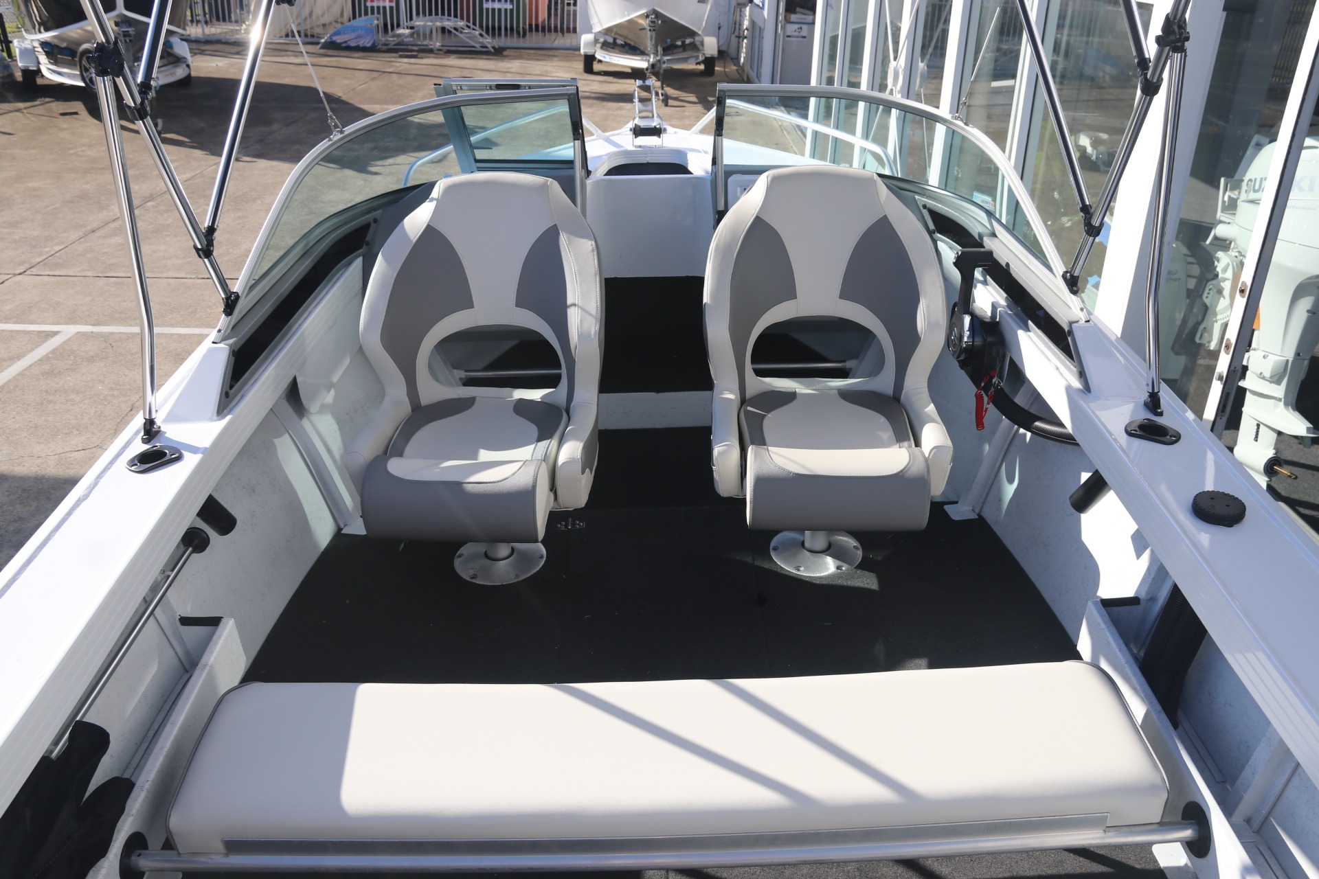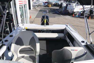 The new transom with the duckboard positioned higher on the stern to glide over the water, has a redesigned dashboard for a more seamless finish, a fresh aluminium deck fascia design, new split bow rail and bowsprit design, dual maxi brackets!