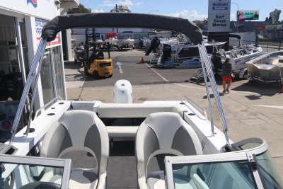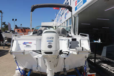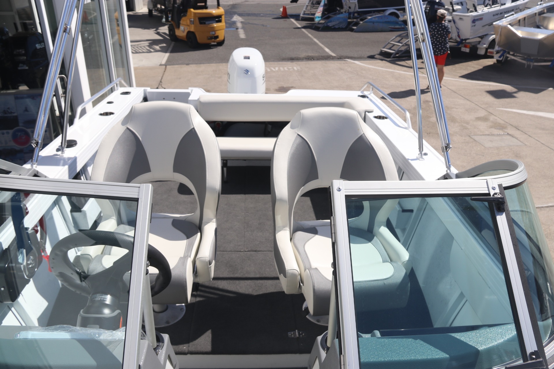 The new transom with the duckboard positioned higher on the stern to glide over the water, has a redesigned dashboard for a more seamless finish, a fresh aluminium deck fascia design, new split bow rail and bowsprit design, dual maxi brackets!