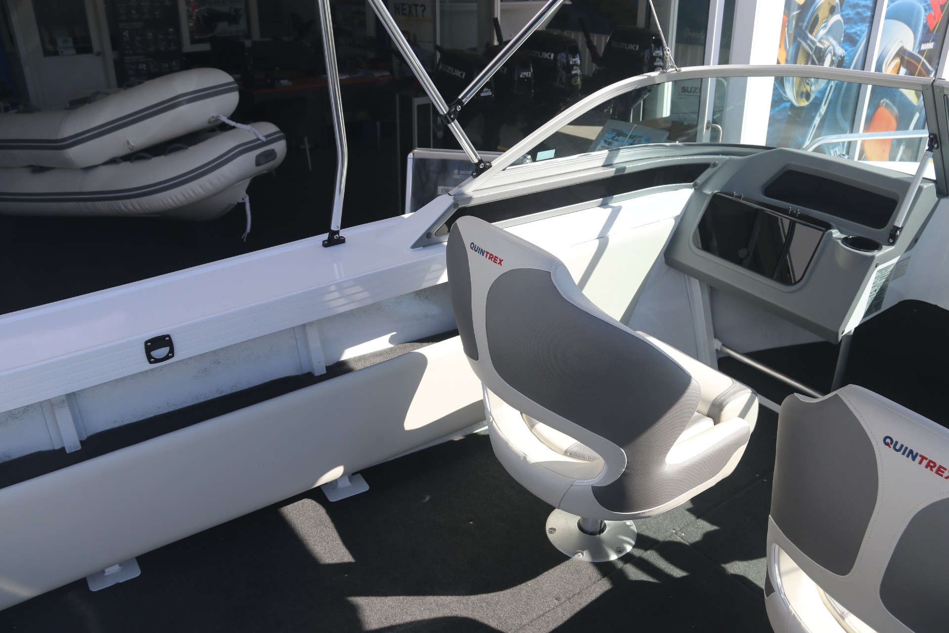 The new transom with the duckboard positioned higher on the stern to glide over the water, has a redesigned dashboard for a more seamless finish, a fresh aluminium deck fascia design, new split bow rail and bowsprit design, dual maxi brackets!