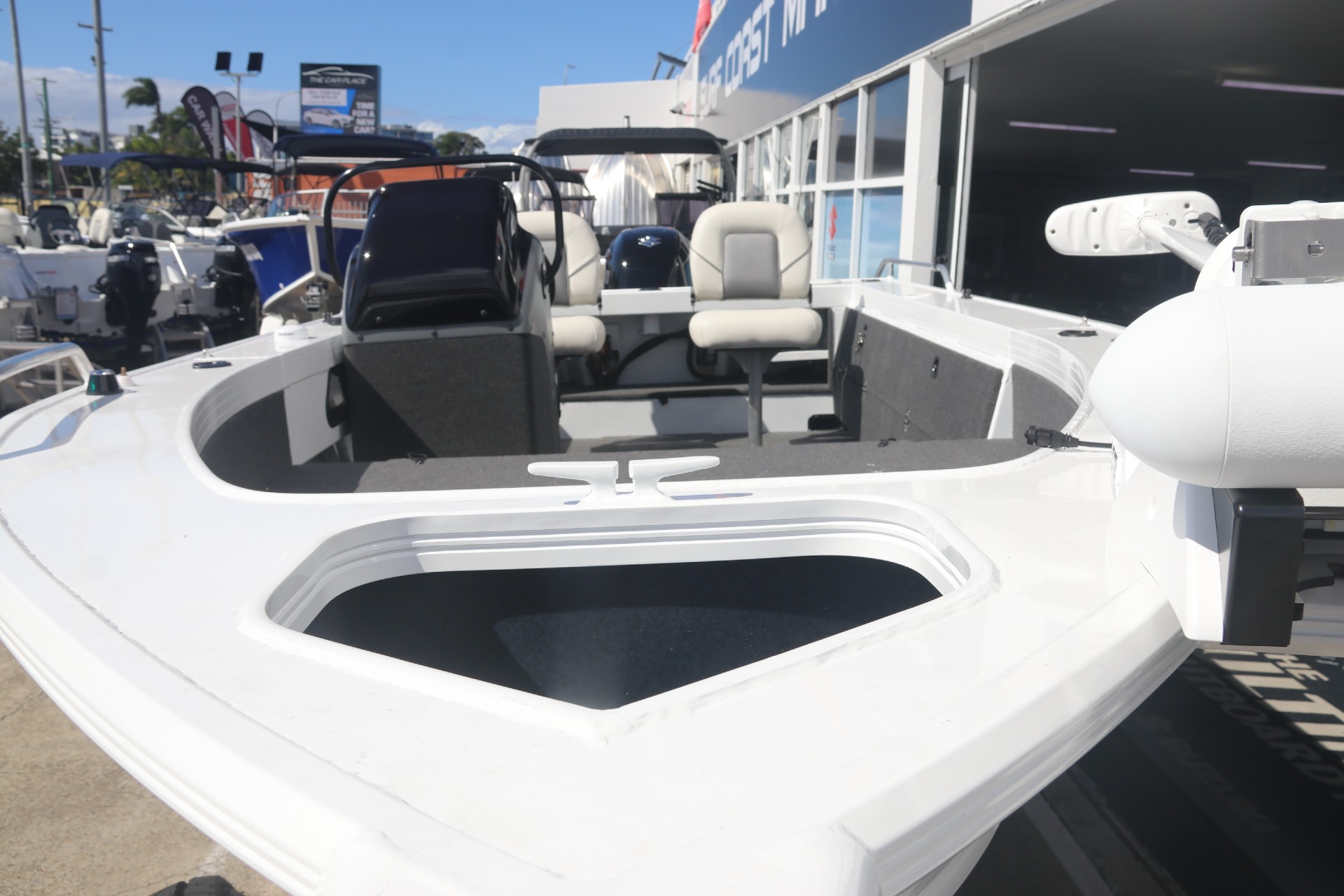 Underneath, the new Quintrex Top Ender range will feature the same time-hardened Blade Hull. However, new stretch-formed aluminium sheet technology has allowed Quintrex to add more side curve to the flared bow, which now extends further down the side of the boats to deflect more spray away from the boat’s occupants.