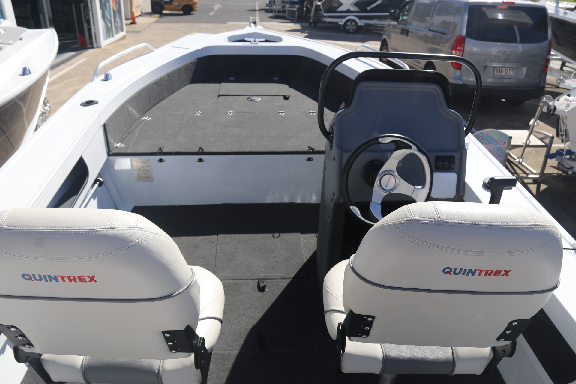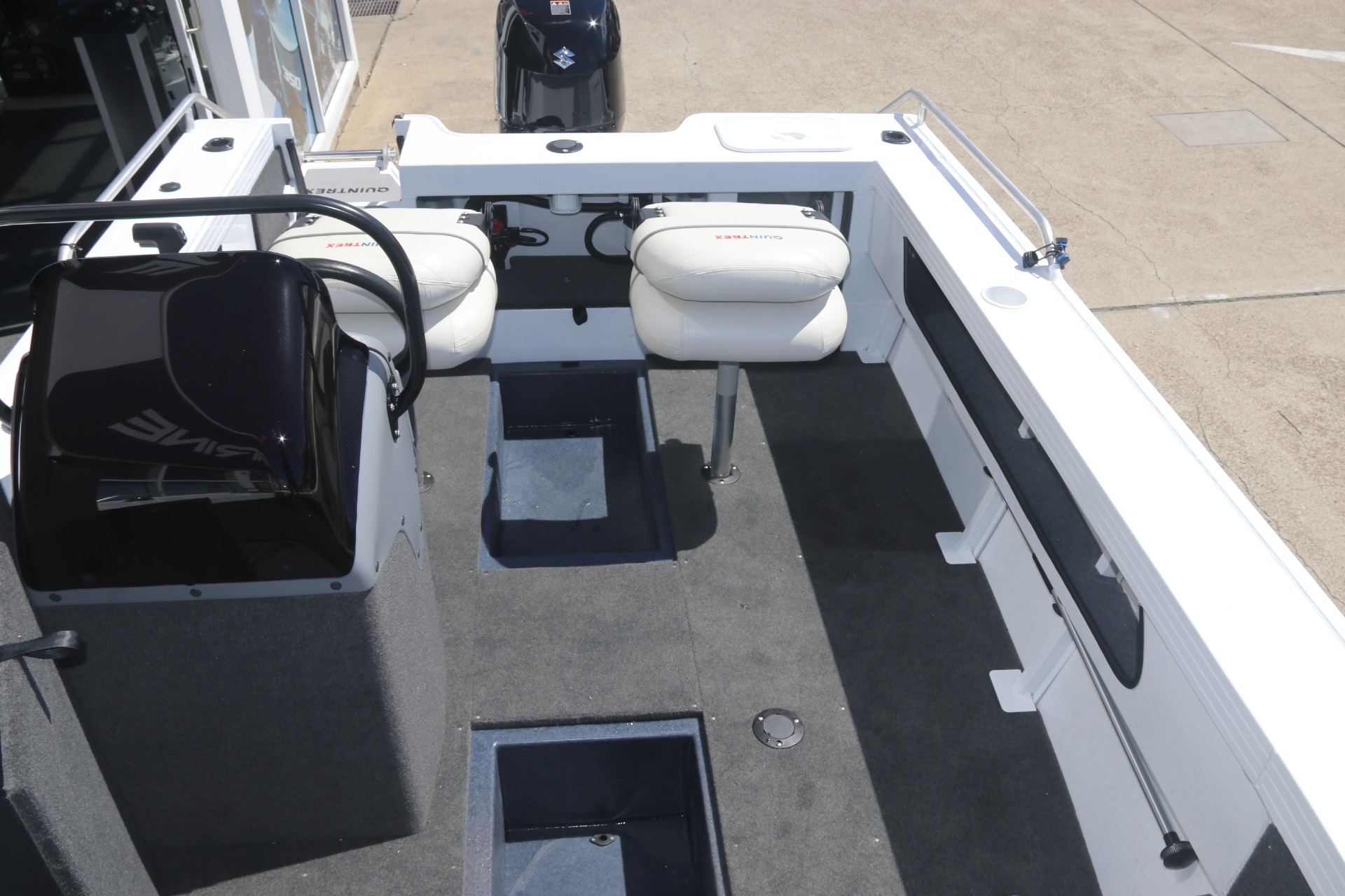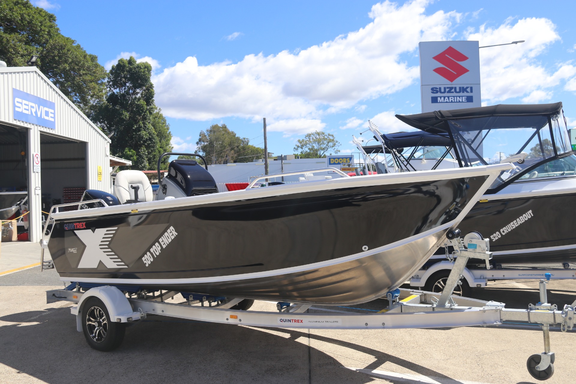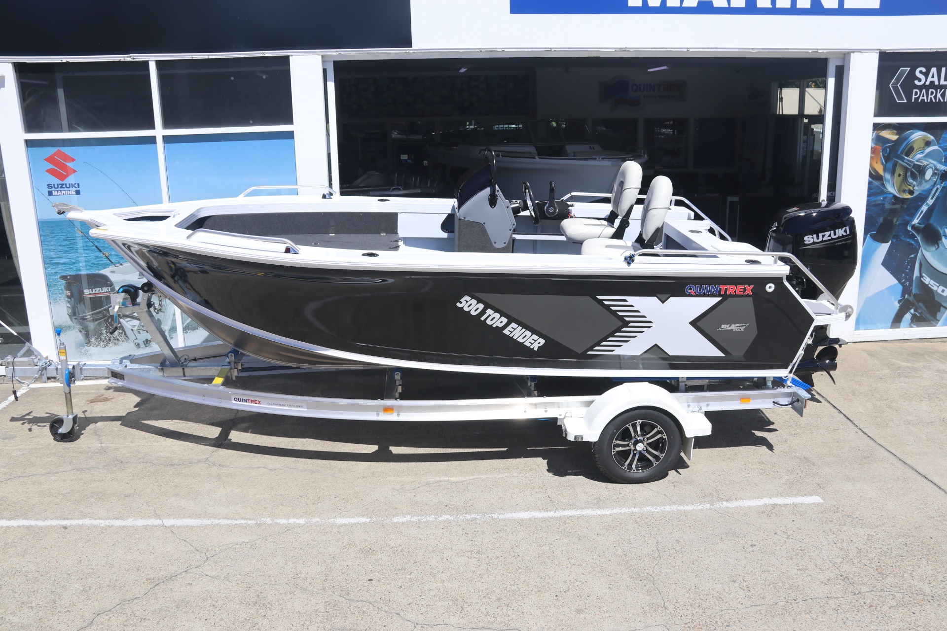 We have a Fully optioned Black boat just arrived in October, or Build one like this for January 26 - we have production orders in place Underneath, the new Quintrex Top Ender range will feature the same time-hardened Blade Hull. However, new stretch-formed aluminium sheet technology has allowed Quintrex to add more side curve to the flared bow, which now extends further down the side of the boats to deflect more spray away from the boat’s occupants.