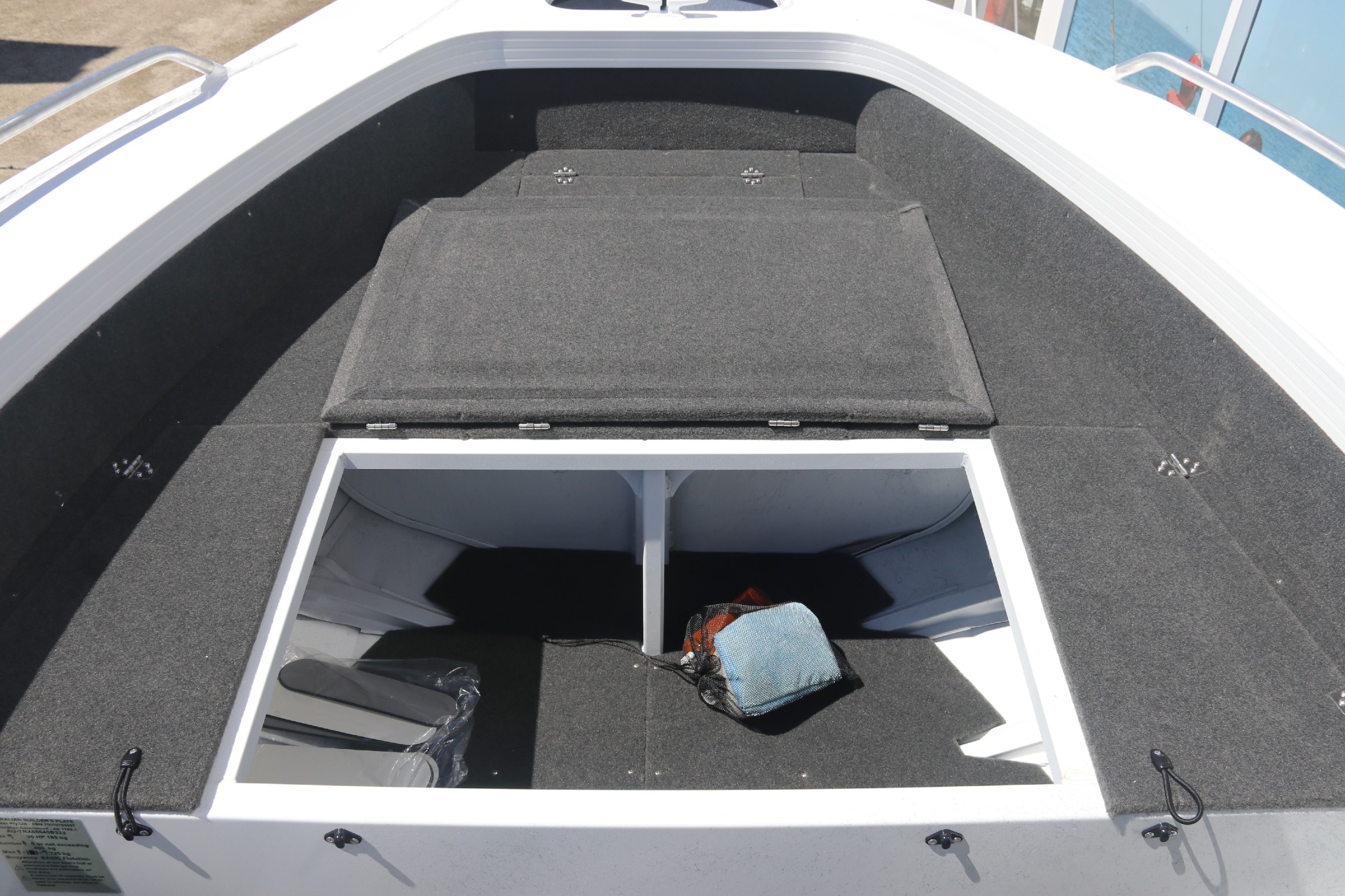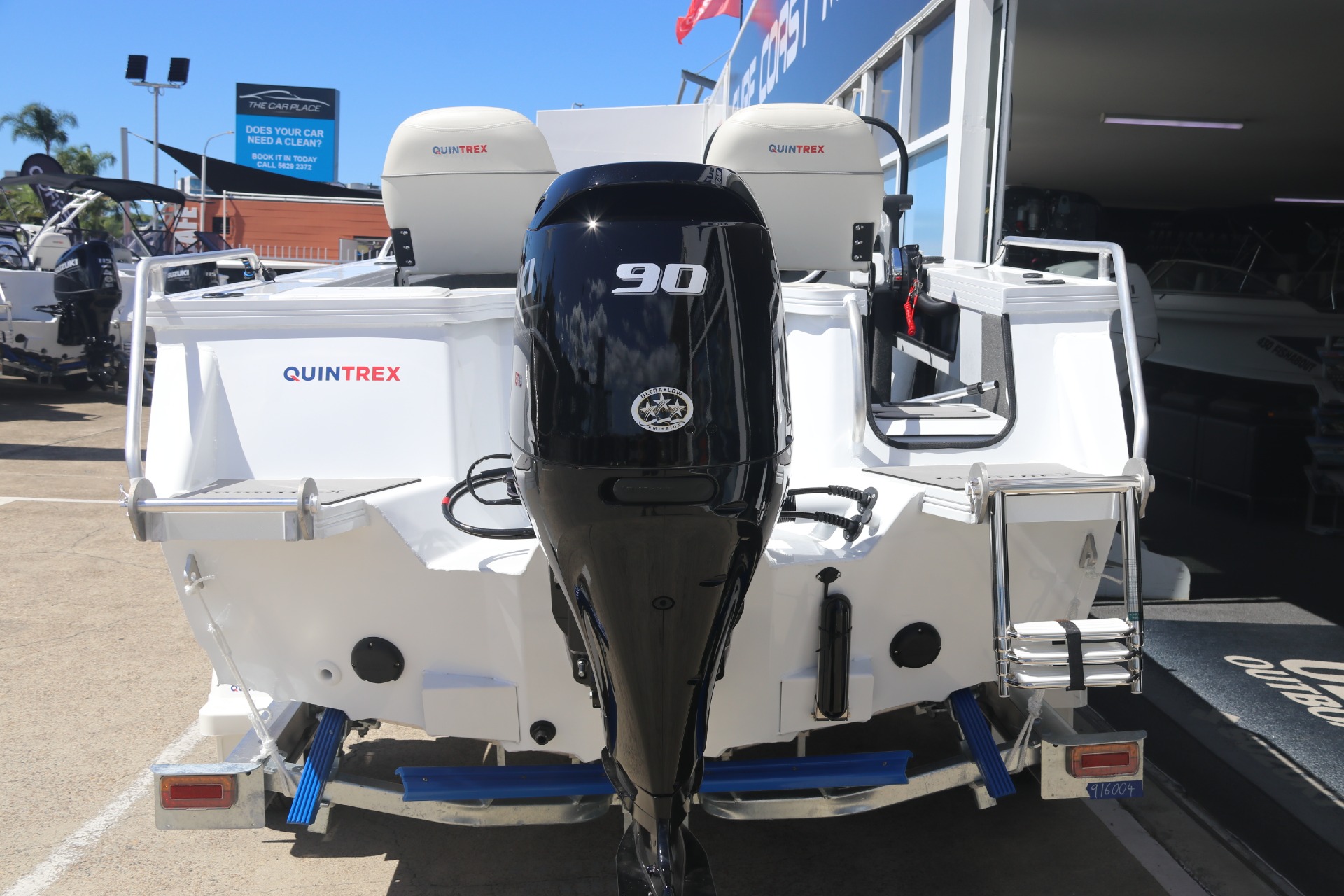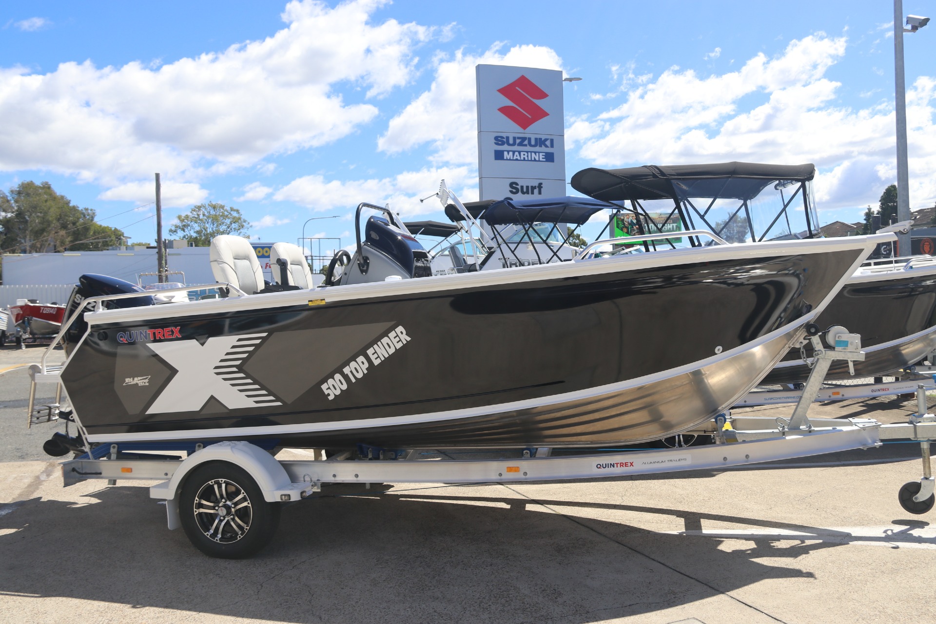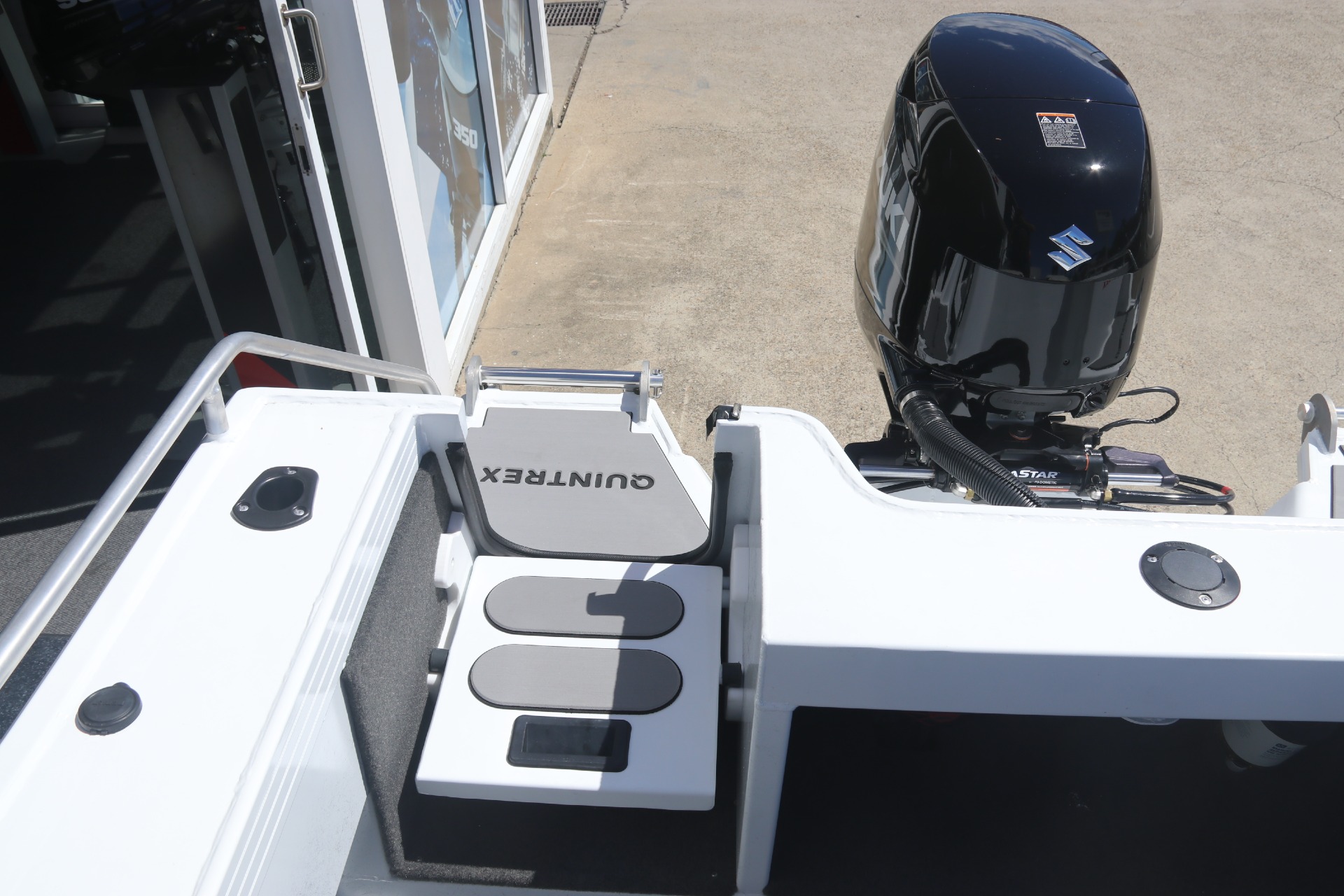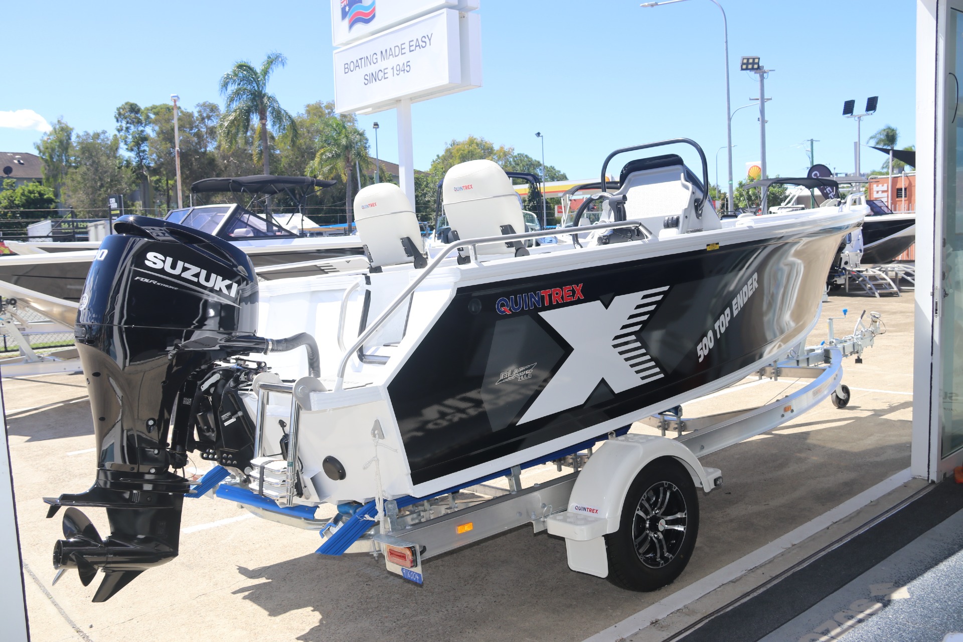 We have a Fully optioned Black boat just arrived in October, or Build one like this for January 26 - we have production orders in place Underneath, the new Quintrex Top Ender range will feature the same time-hardened Blade Hull. However, new stretch-formed aluminium sheet technology has allowed Quintrex to add more side curve to the flared bow, which now extends further down the side of the boats to deflect more spray away from the boat’s occupants.