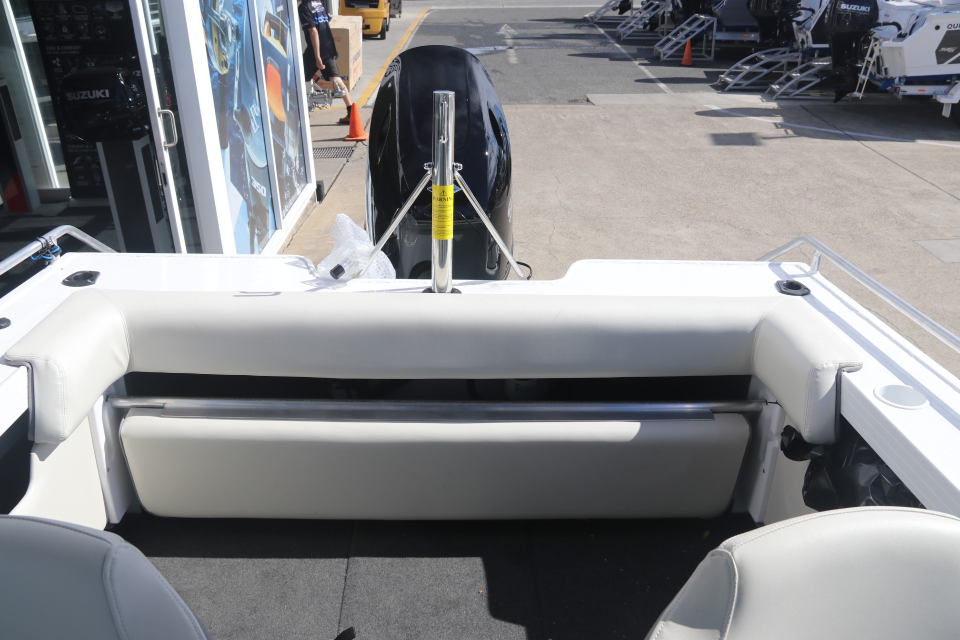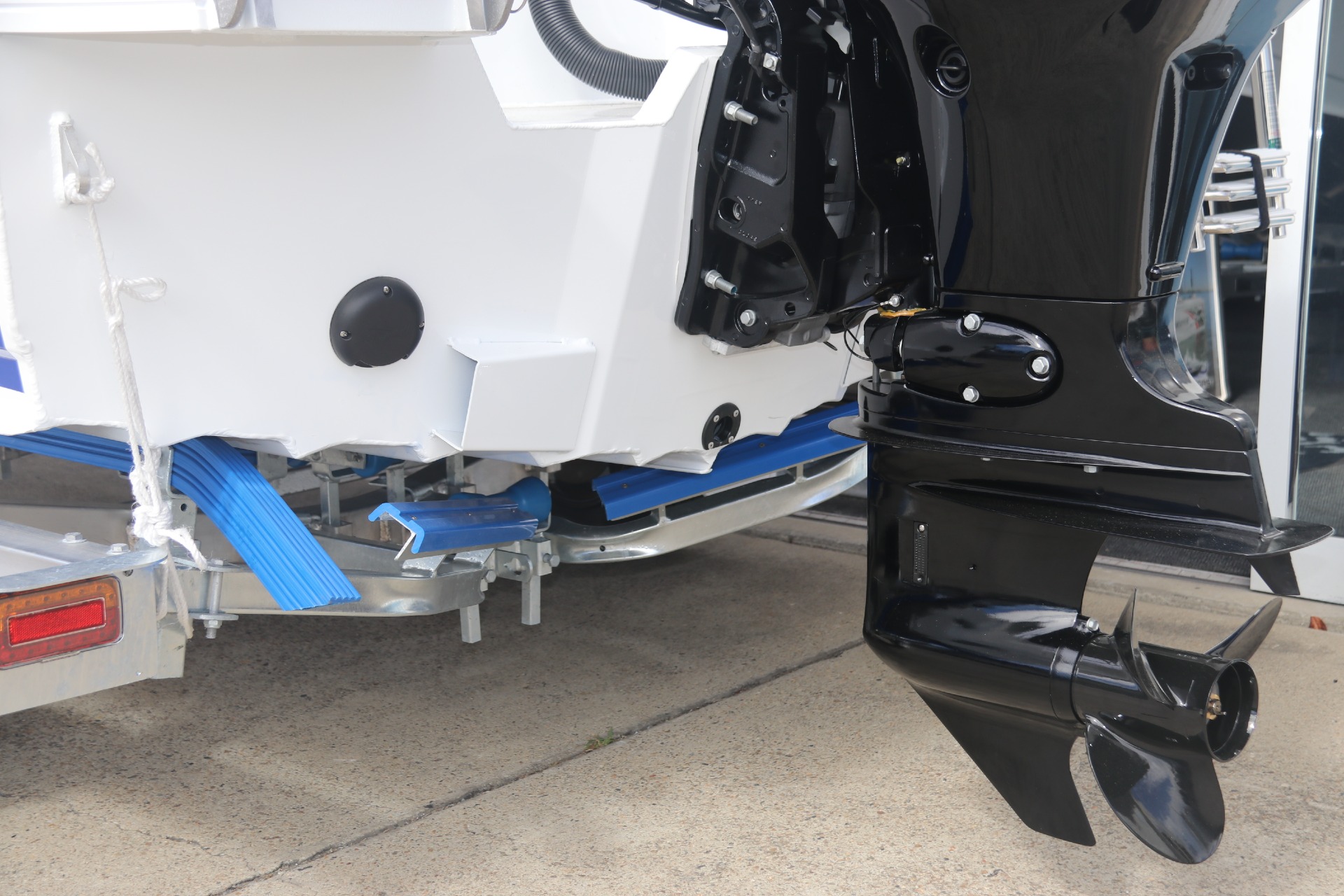 The new transom with the duckboard positioned higher on the stern to glide over the water, has a redesigned dashboard for a more seamless finish, a fresh aluminium deck fascia design, new split bow rail and bowsprit design, dual maxi brackets!