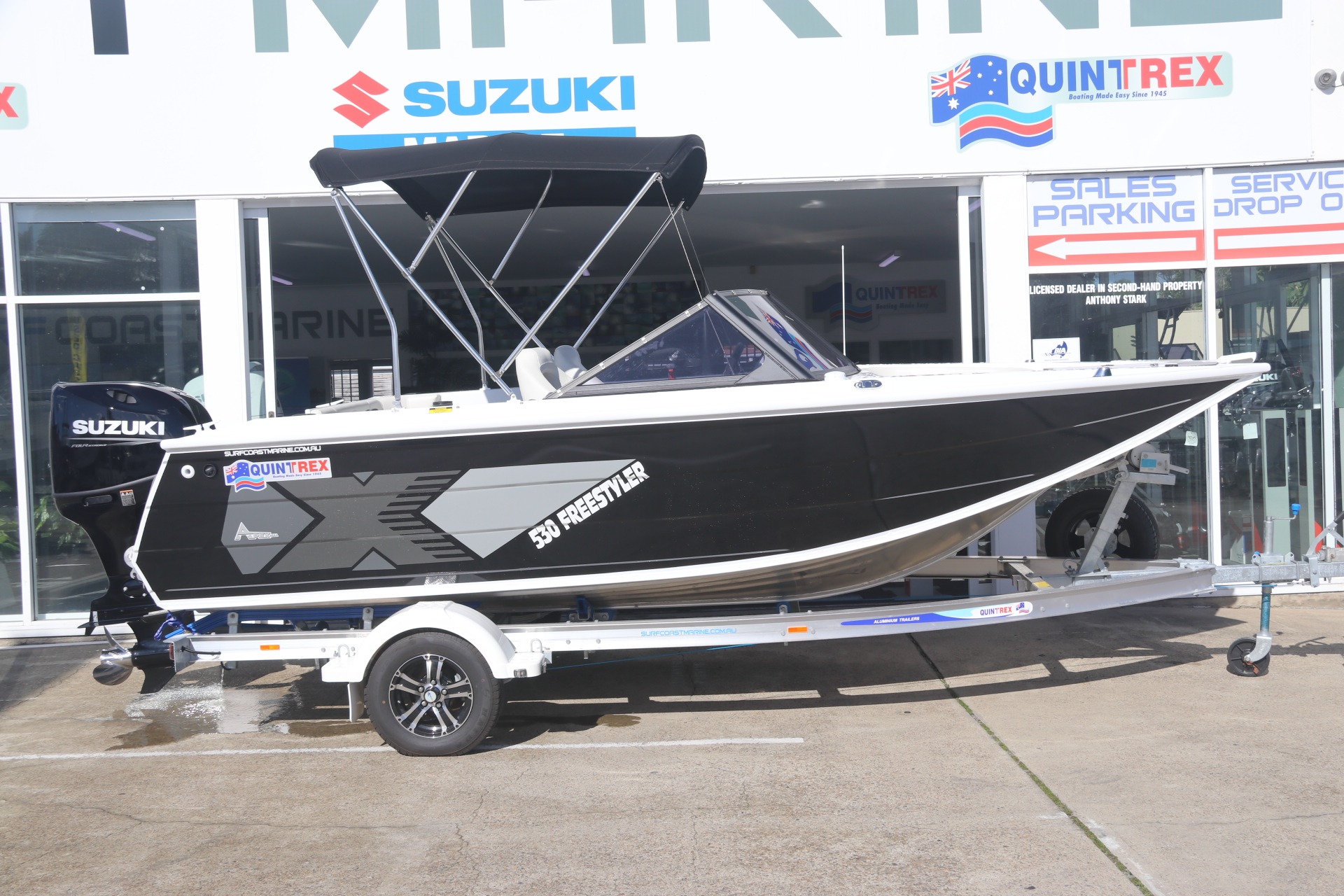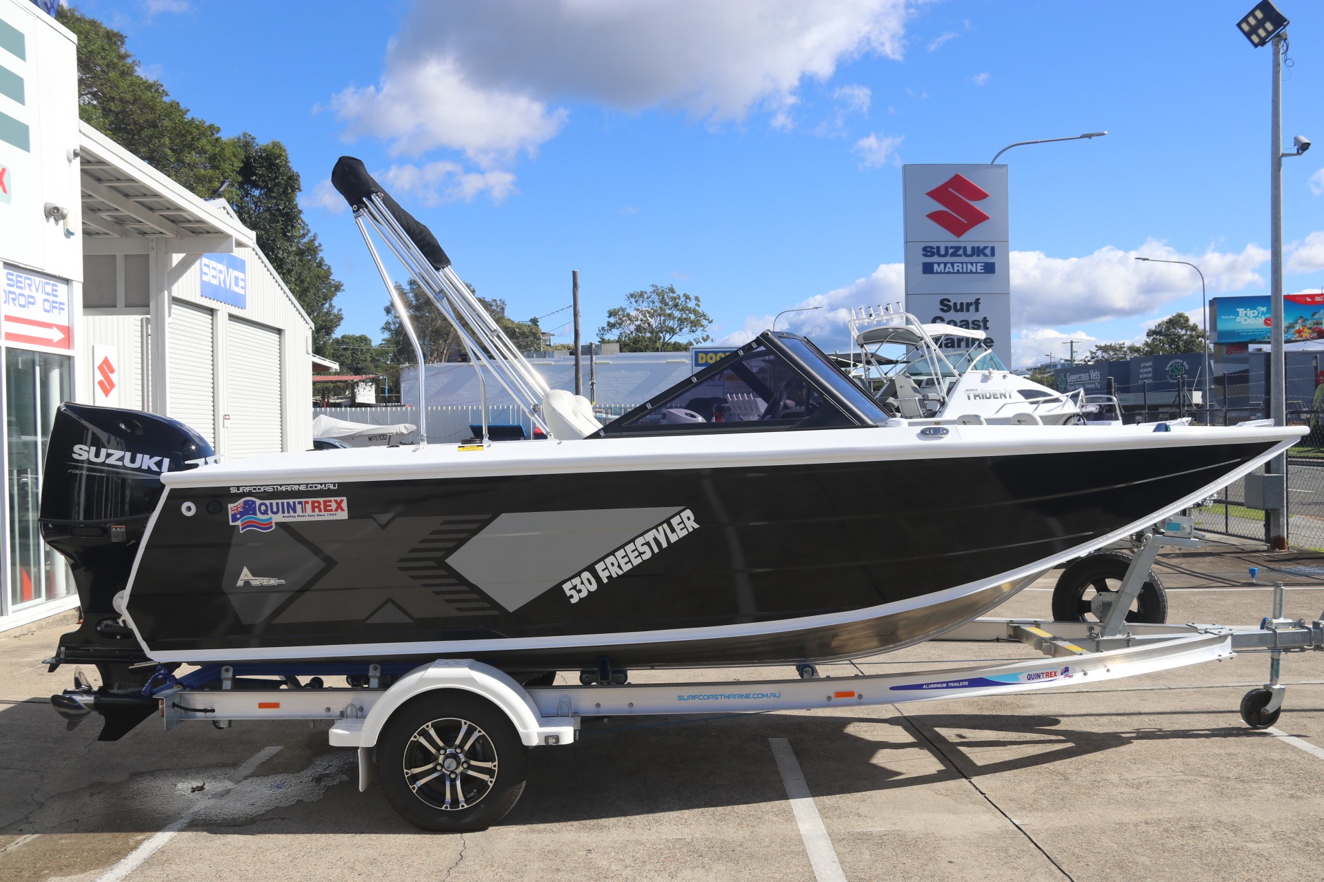 Build one like this for February 2026 The Apex hull design provides the ultimate on water performance, smoother riding in rough water and even better stability and grip when cornering, The forked bow design increases floor space along with the raised side decks (RSD) increasing freeboard by 80mm and overall volume by 20%. The revolutionary hull design allows you to reach full boating potential offering unsurpassed versatility and performance. The 530 Freestyler is perfect for the whole family offering safety and plenty of storage. The new console storage hatch position allows for easy access and a place to keep valuables close by.