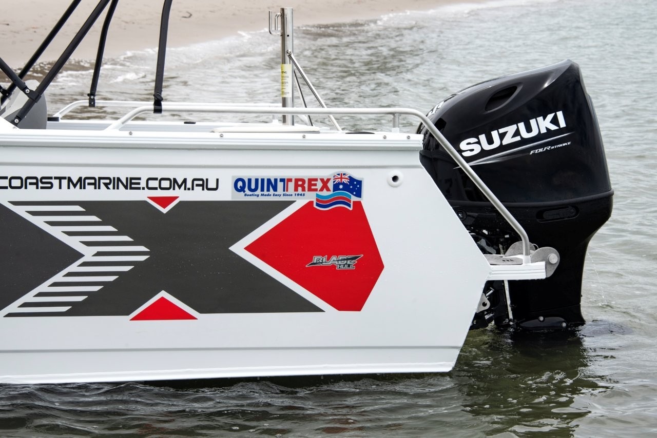 The new transom with the duckboard positioned higher on the stern to glide over the water, has a redesigned dashboard for a more seamless finish, a fresh aluminium deck fascia design, new split bow rail and bowsprit design, dual maxi brackets!