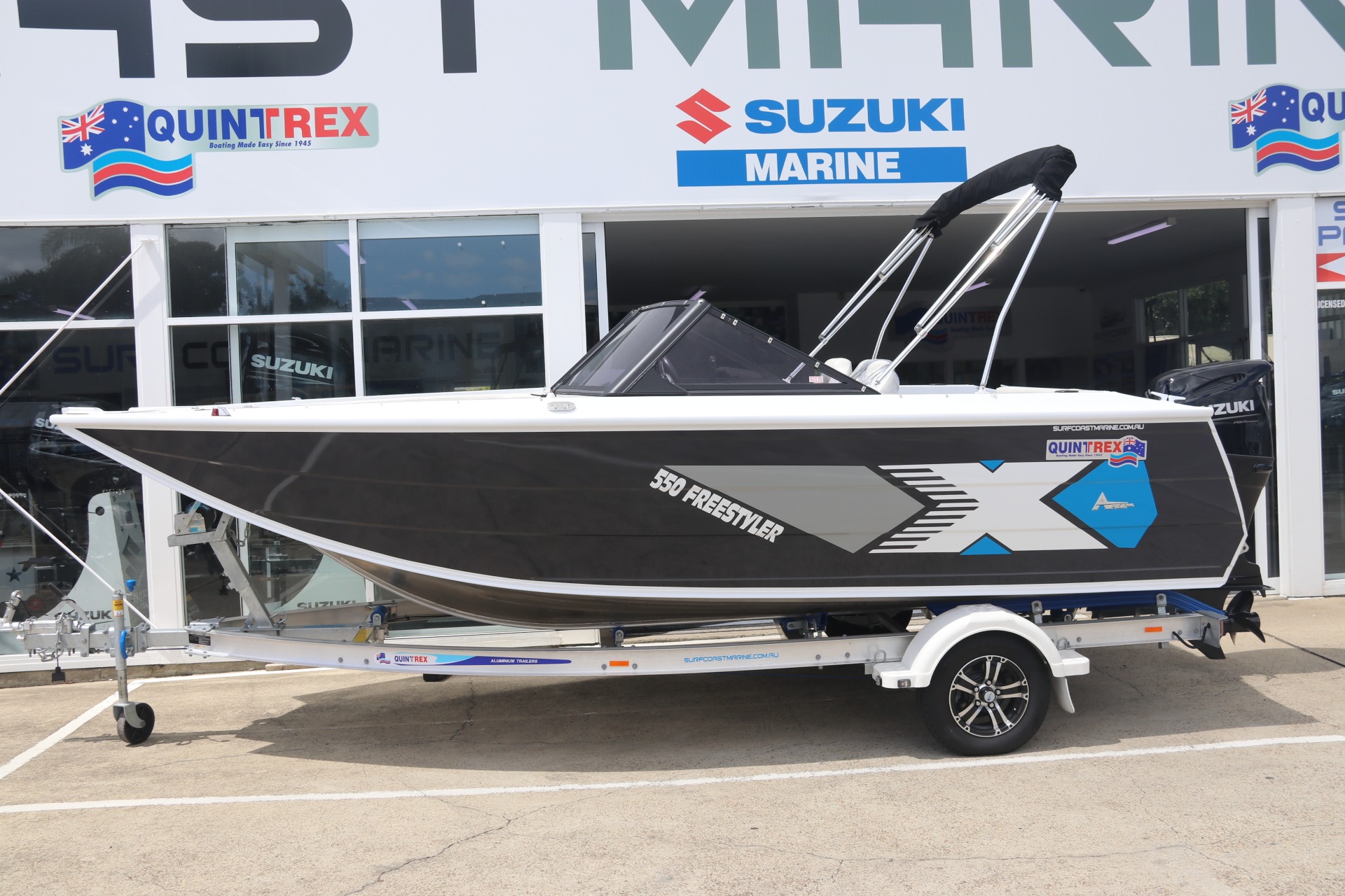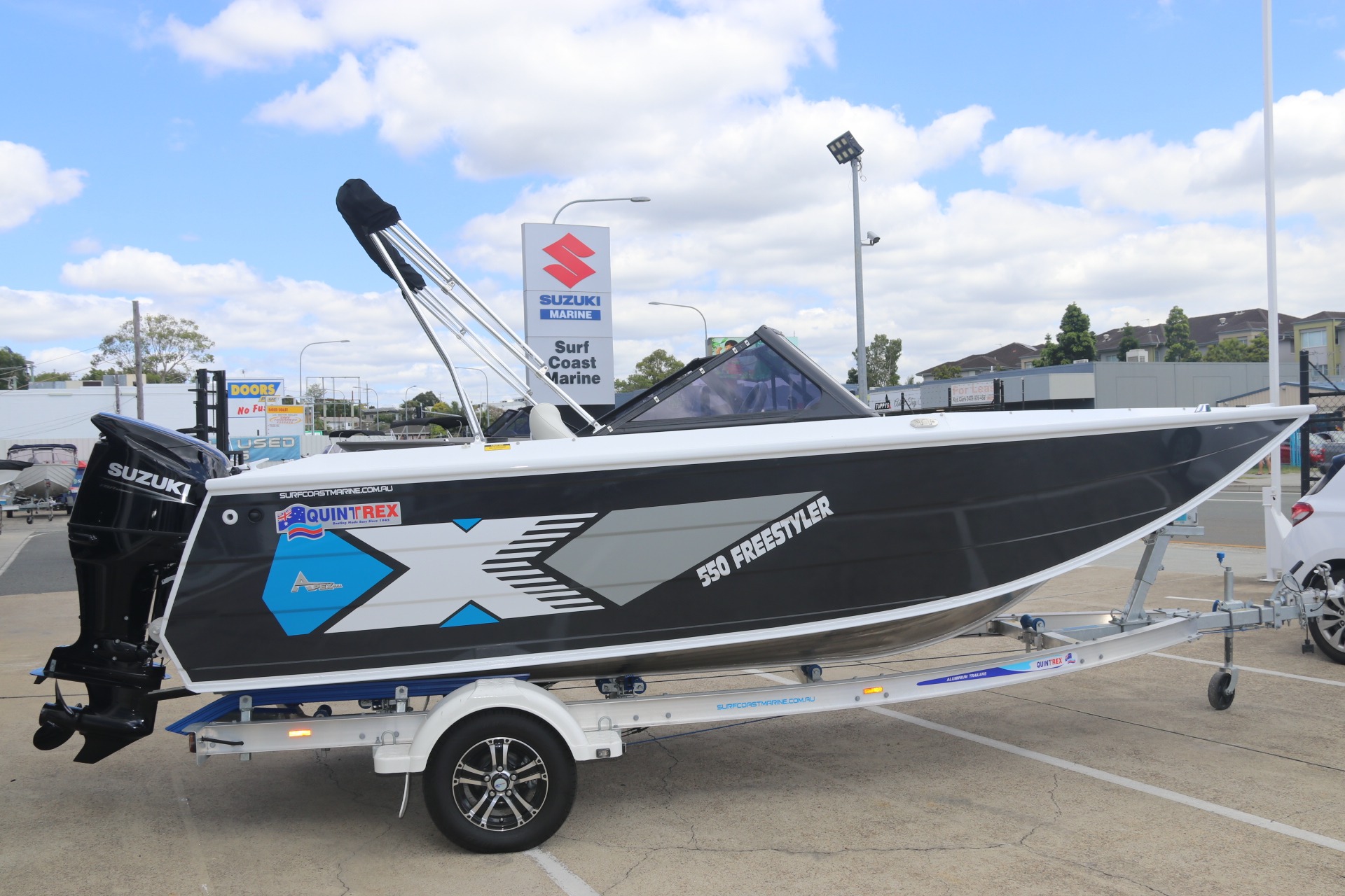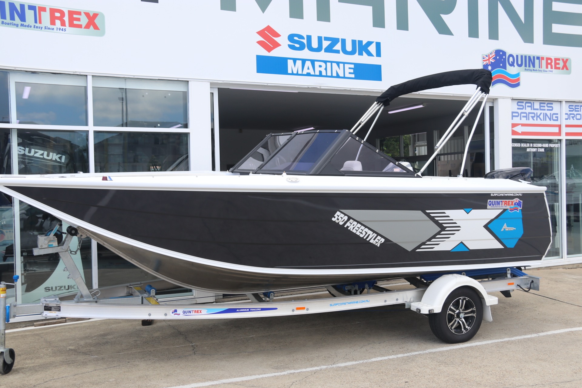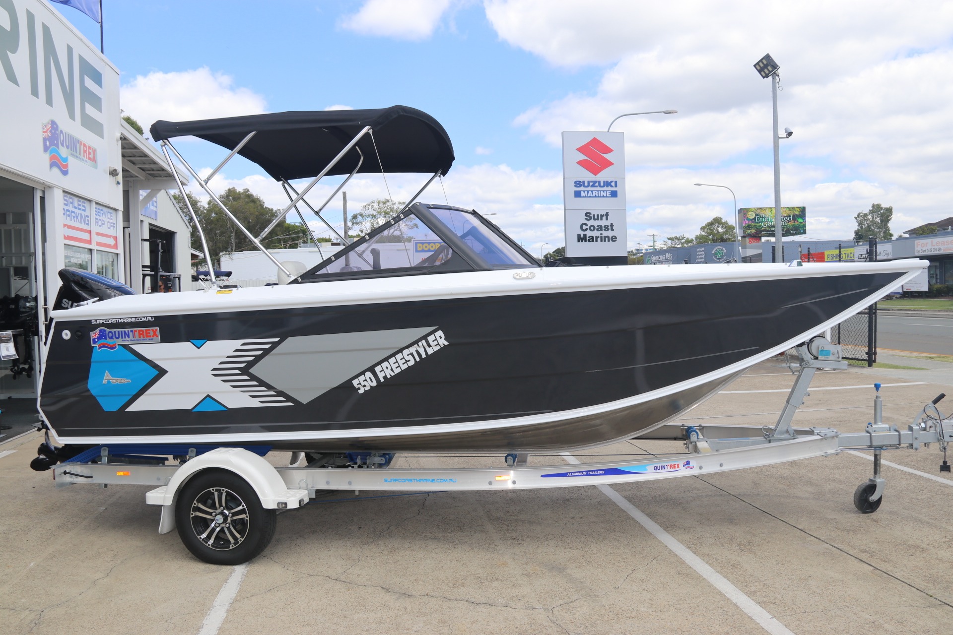 Order one like this for March 2026 - we have other Freestylers in stock Now!! The 550 Freestyler is here, featuring the Quintrex Apex Hull Design that is designed for both smooth and rough waters. The Apex Hull Design features one sweeping flare compared to the traditional two flares of the blade hull and flared bow design. These new models introduce a new range to run alongside the current Quintrex models. This Quintrex Freestyler features some great options to convert a bowrider into the ultimate crossover boat for family and fishing.
