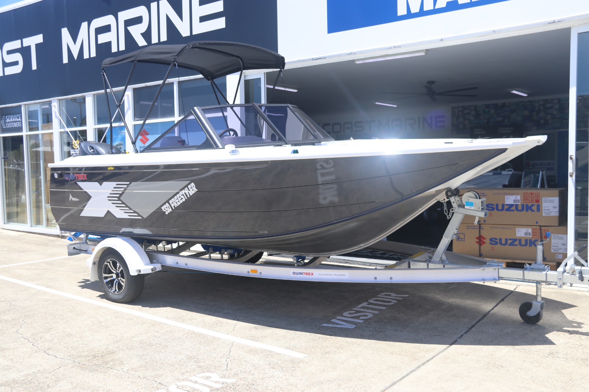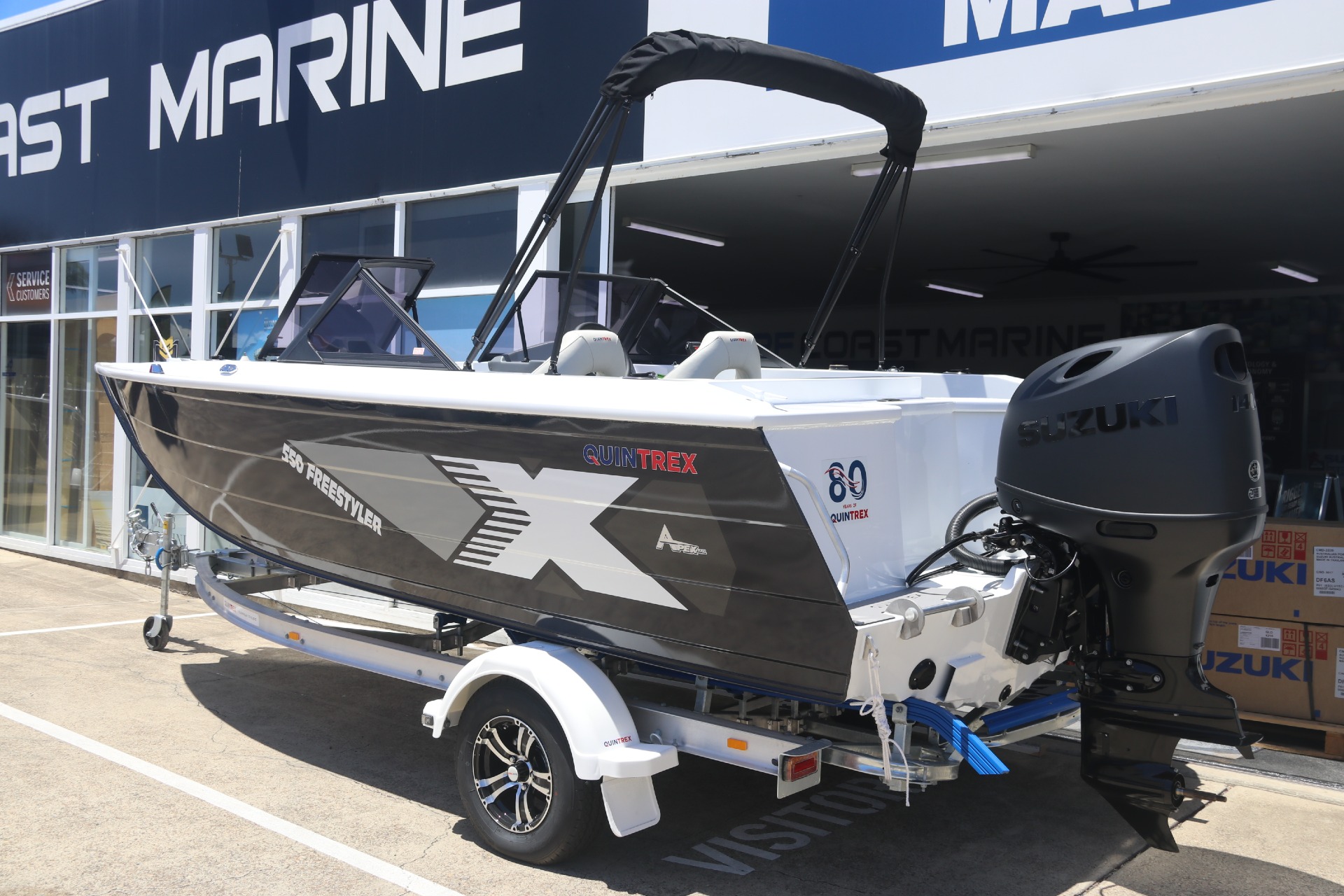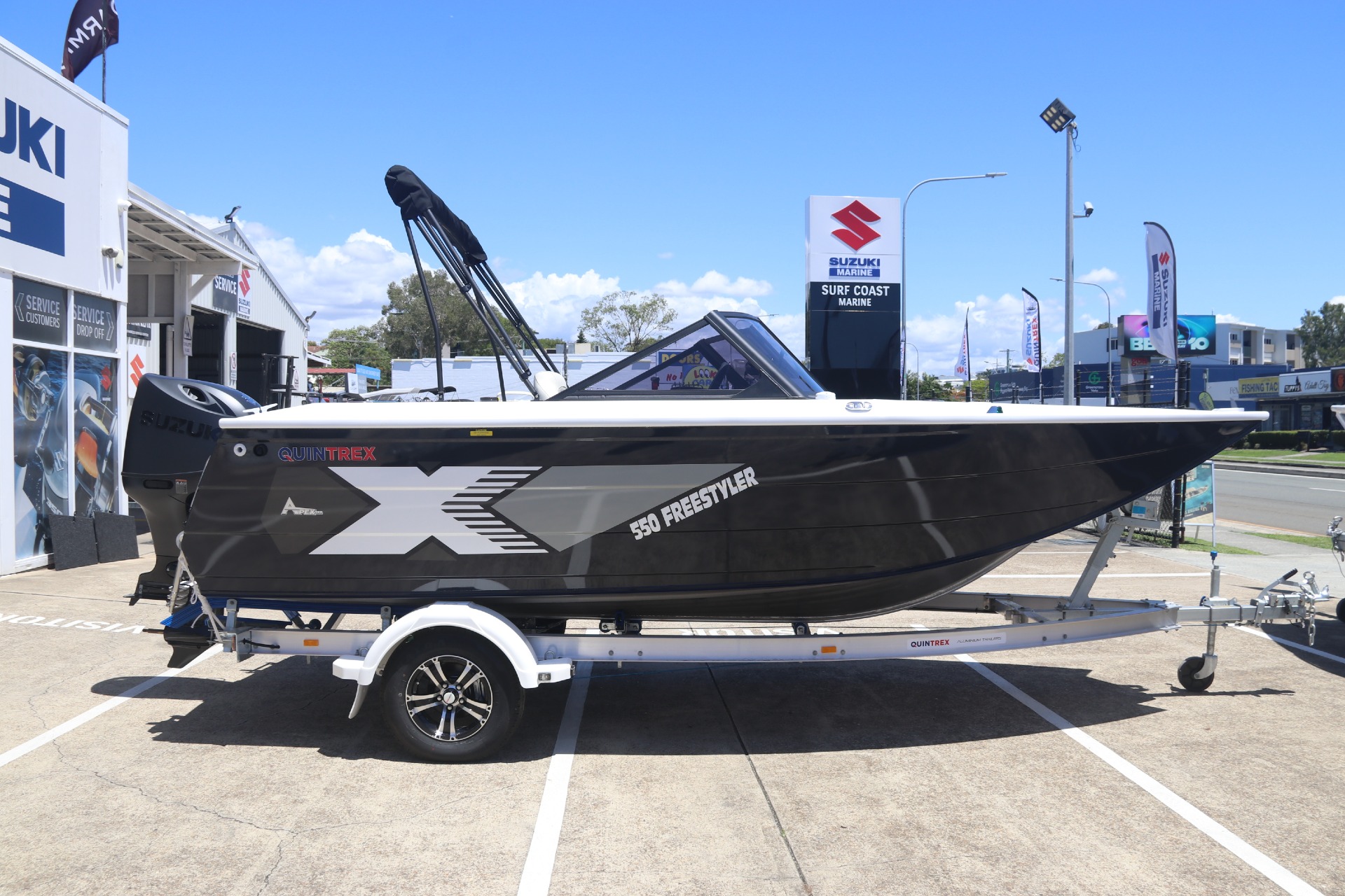 In Stock & Available at a Deal - thanks to the Rigged and Ready for Summer Promotion from Suzuki The 550 Freestyler is here, featuring the Quintrex Apex Hull Design that is designed for both smooth and rough waters. The Apex Hull Design features one sweeping flare compared to the traditional two flares of the blade hull and flared bow design. Featuring the New Release DF140B, With the world’s first Micro-Plastic Collecting Device! Superseding the ever-popular DF140A outboard motors, the new “B” series feature a host of updates. This Quintrex Freestyler features some great options to convert a bowrider into the ultimate crossover boat for family and fishing.