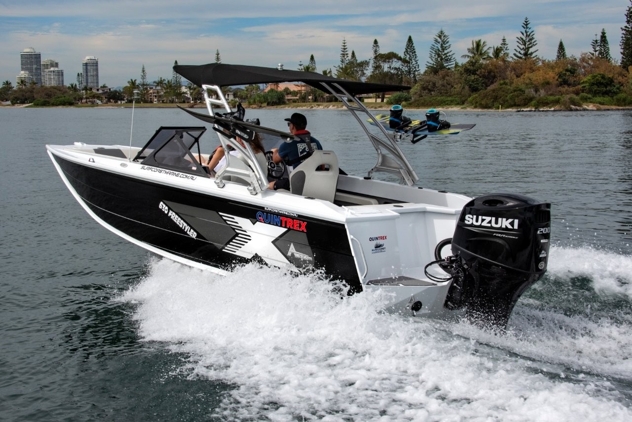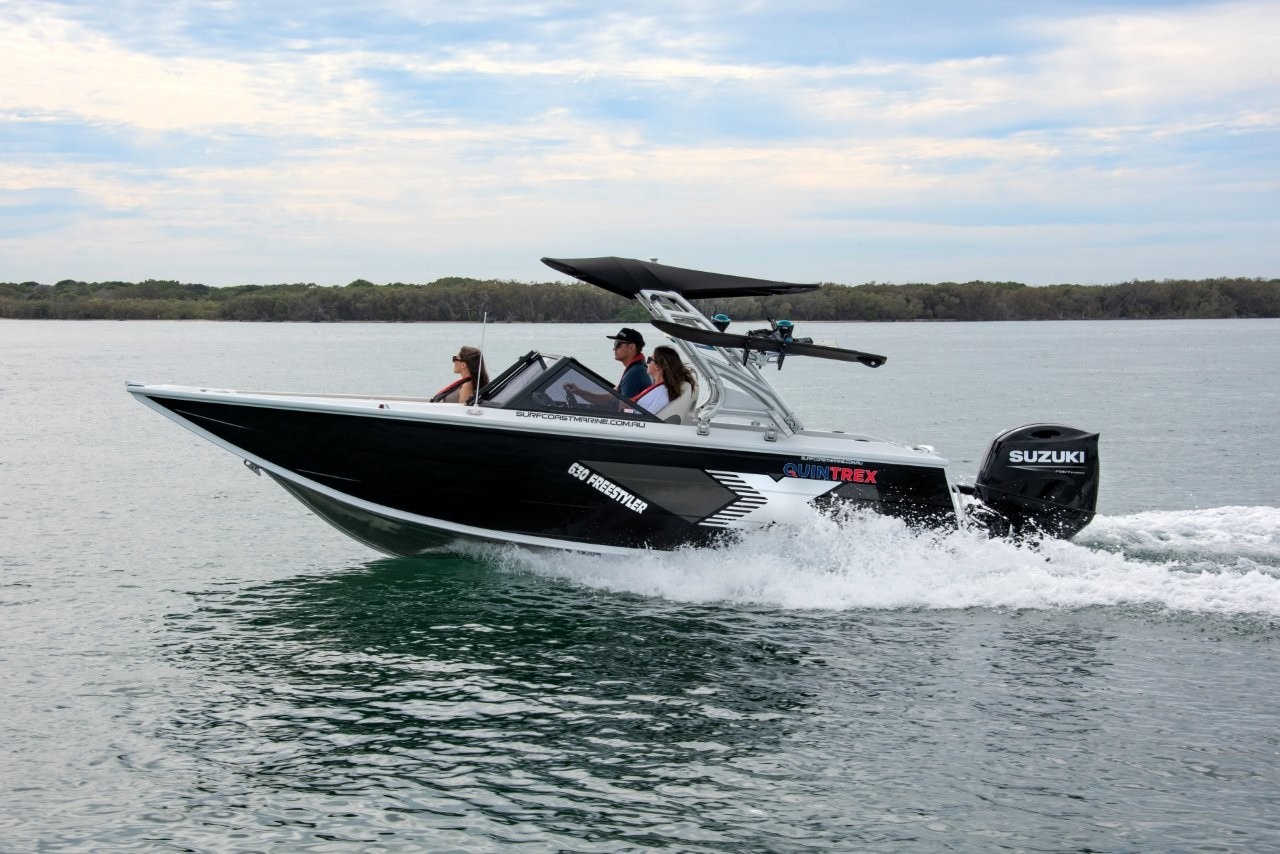 In Stock and available now at a Deal thanks to Suzuki's Rigged and Ready for Summer Campaign, and Quintrex Upgrade your Summer Promotion! The Apex hull design provides the ultimate on water performance, smoother riding in rough water and even better stability and grip when cornering, The forked bow design increases floor space along with the raised side decks (RSD) increasing freeboard by 80mm and overall volume by 20%. The revolutionary hull design allows you to reach full boating potential offering unsurpassed versatility and performance. The 630 Freestyler is perfect for the whole family offering safety and plenty of storage. The new console storage hatch position allows for easy access and a place to keep valuables close by.
