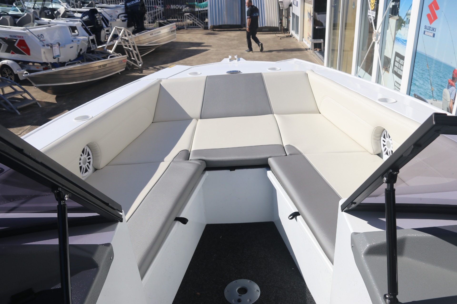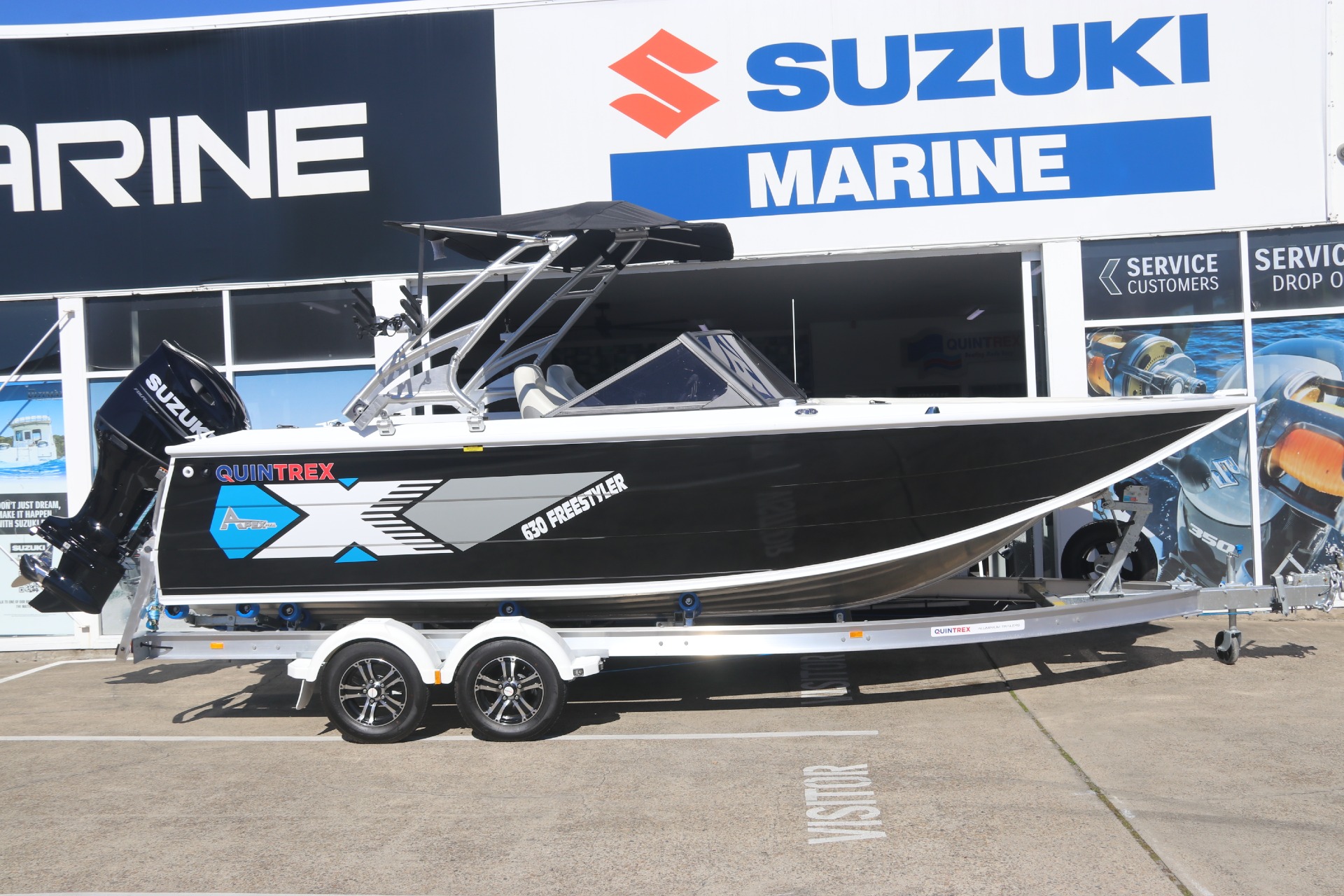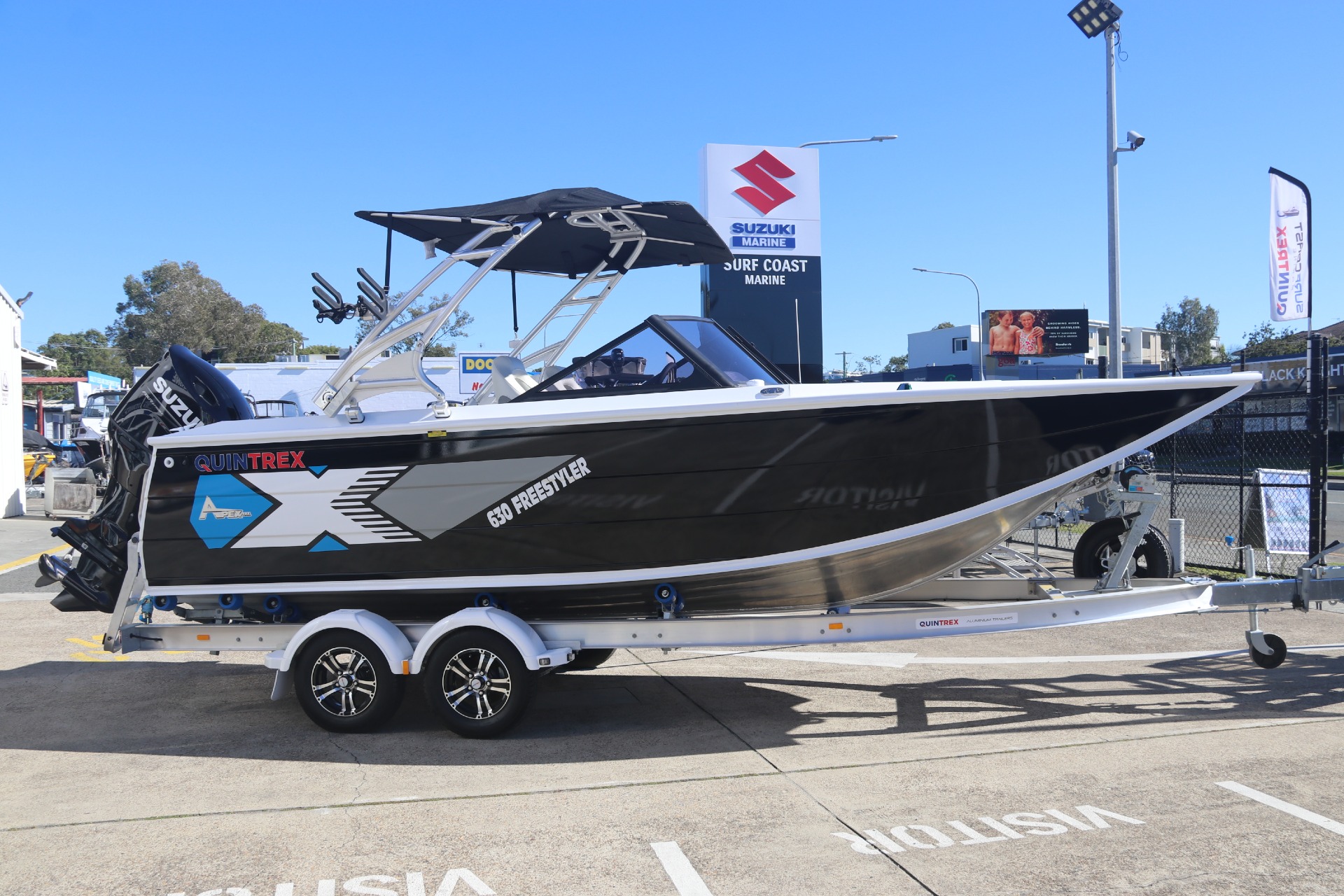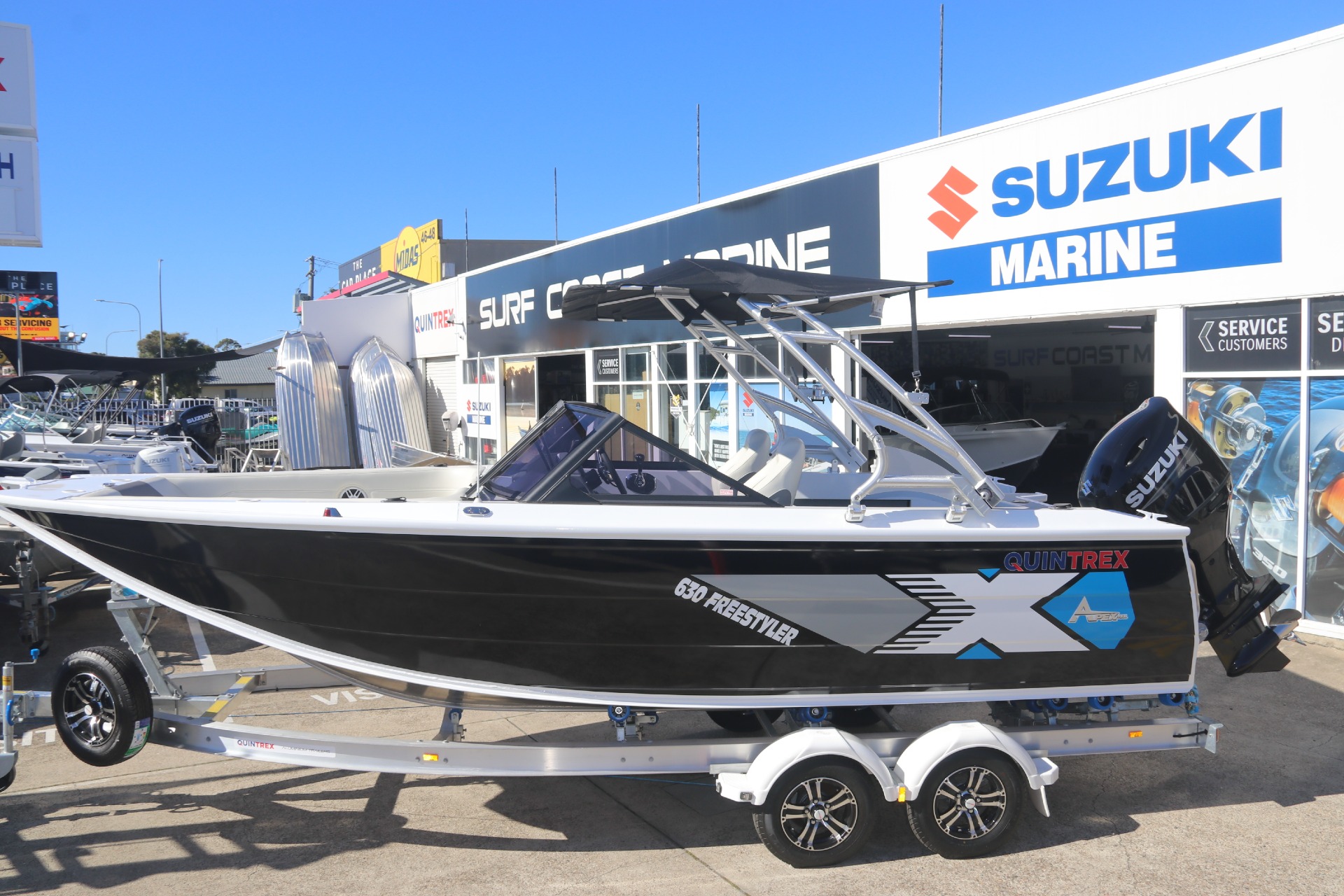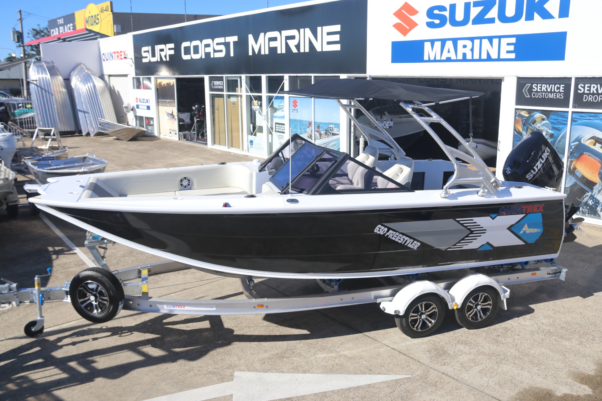 In Stock and available now at a Deal thanks to Suzuki's Rigged and Ready for Summer Campaign and Quintrex Upgrade your Summer Promotion! The Apex hull design provides the ultimate on water performance, smoother riding in rough water and even better stability and grip when cornering, The forked bow design increases floor space along with the raised side decks (RSD) increasing freeboard by 80mm and overall volume by 20%. The revolutionary hull design allows you to reach full boating potential offering unsurpassed versatility and performance. The 630 Freestyler is perfect for the whole family offering safety and plenty of storage. The new console storage hatch position allows for easy access and a place to keep valuables close by.