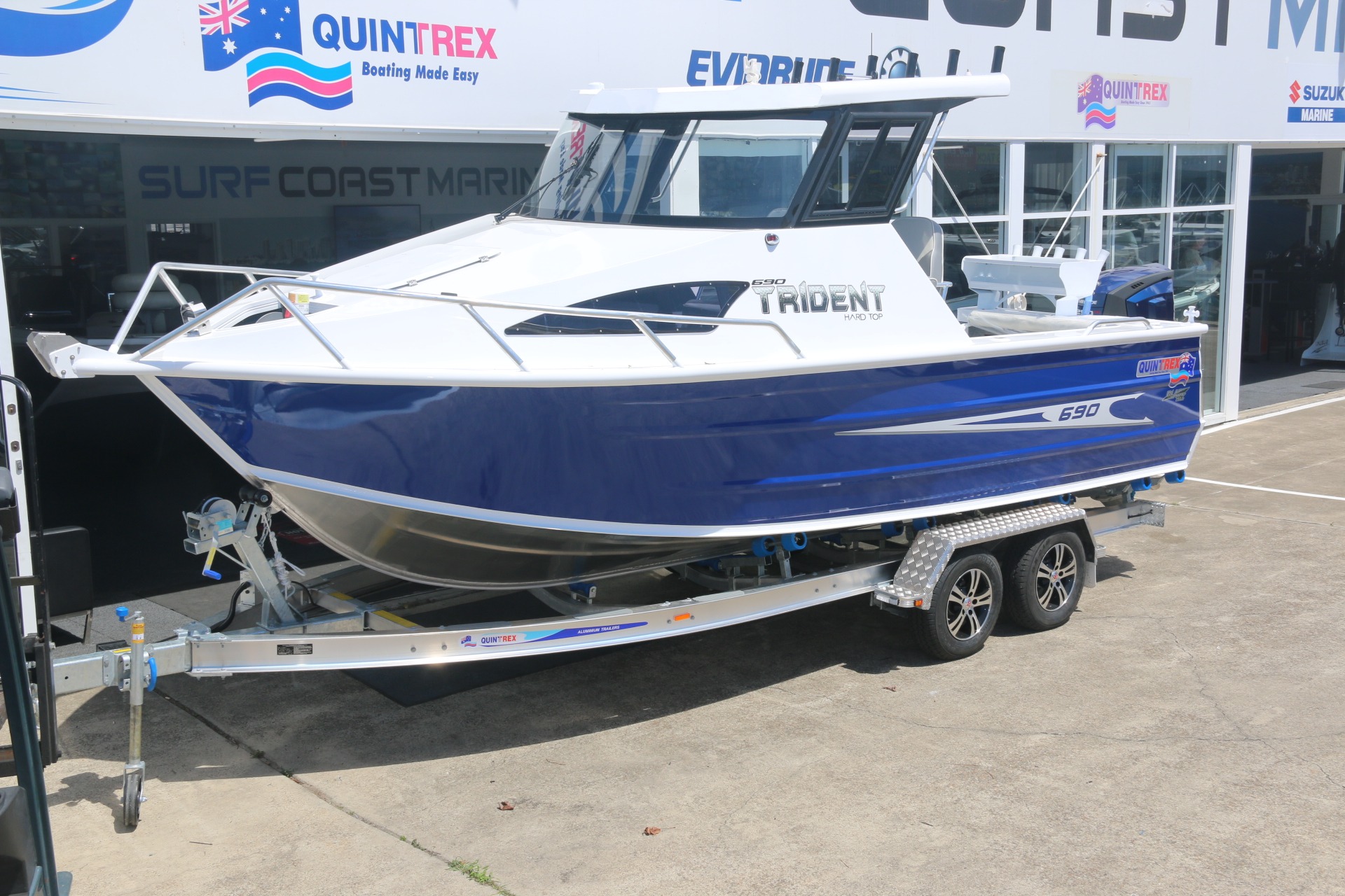 Plate Boats built to rule the ocean. Available as a 650 and 690 Hard Top, the Trident is built to combat the unpredictable conditions of the open water. Built purely with the keen fisherman in mind the 690 Trident HT is full of features that really matter when you're offshore looking for the perfect catch including 135L Kill Tank, bait station with rod holders and knife sheath and fully enclosed cabin in addition to the self-draining tread-plate floor as an extra safety precaution and 200lt fuel tank, you will be on the water all day long.