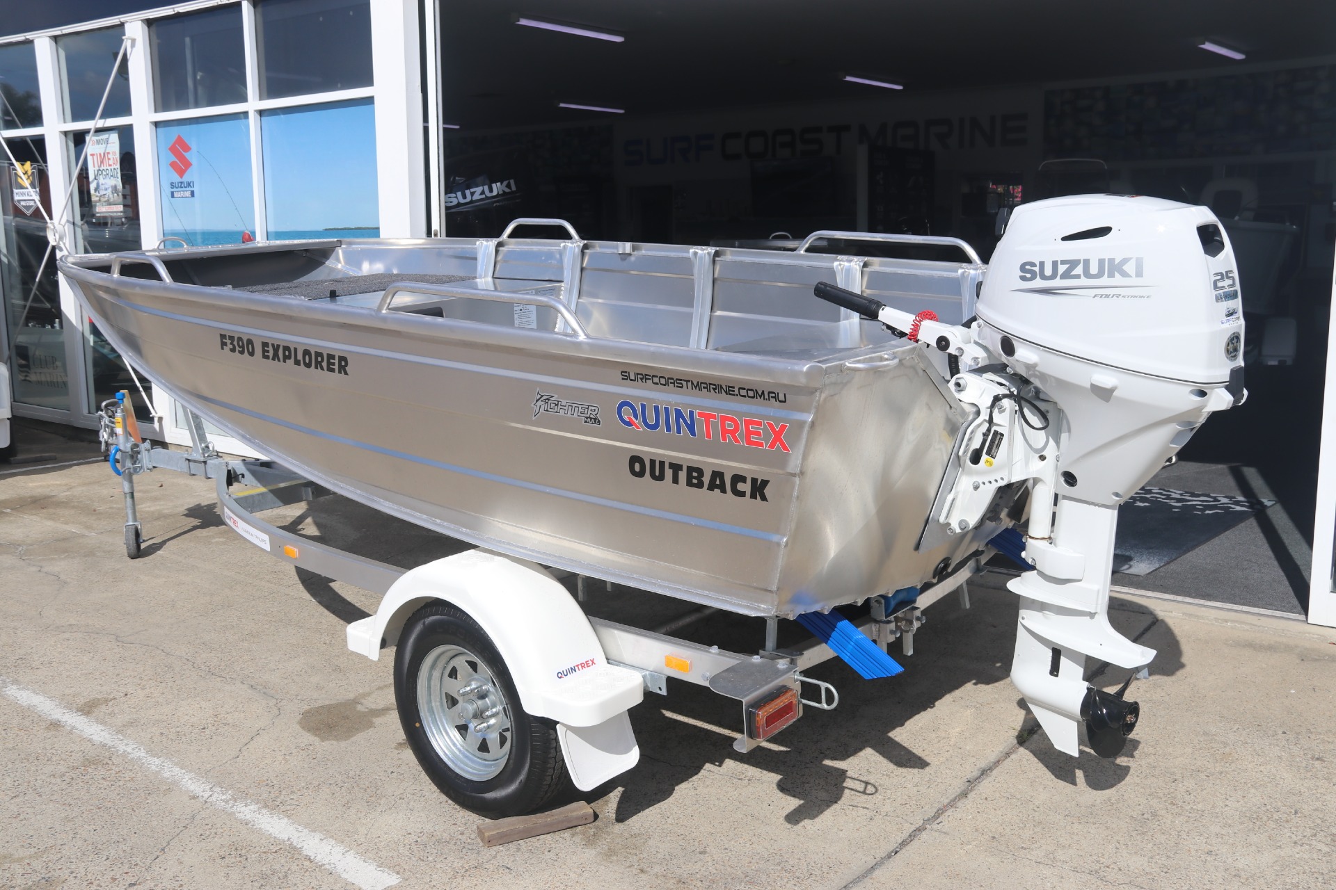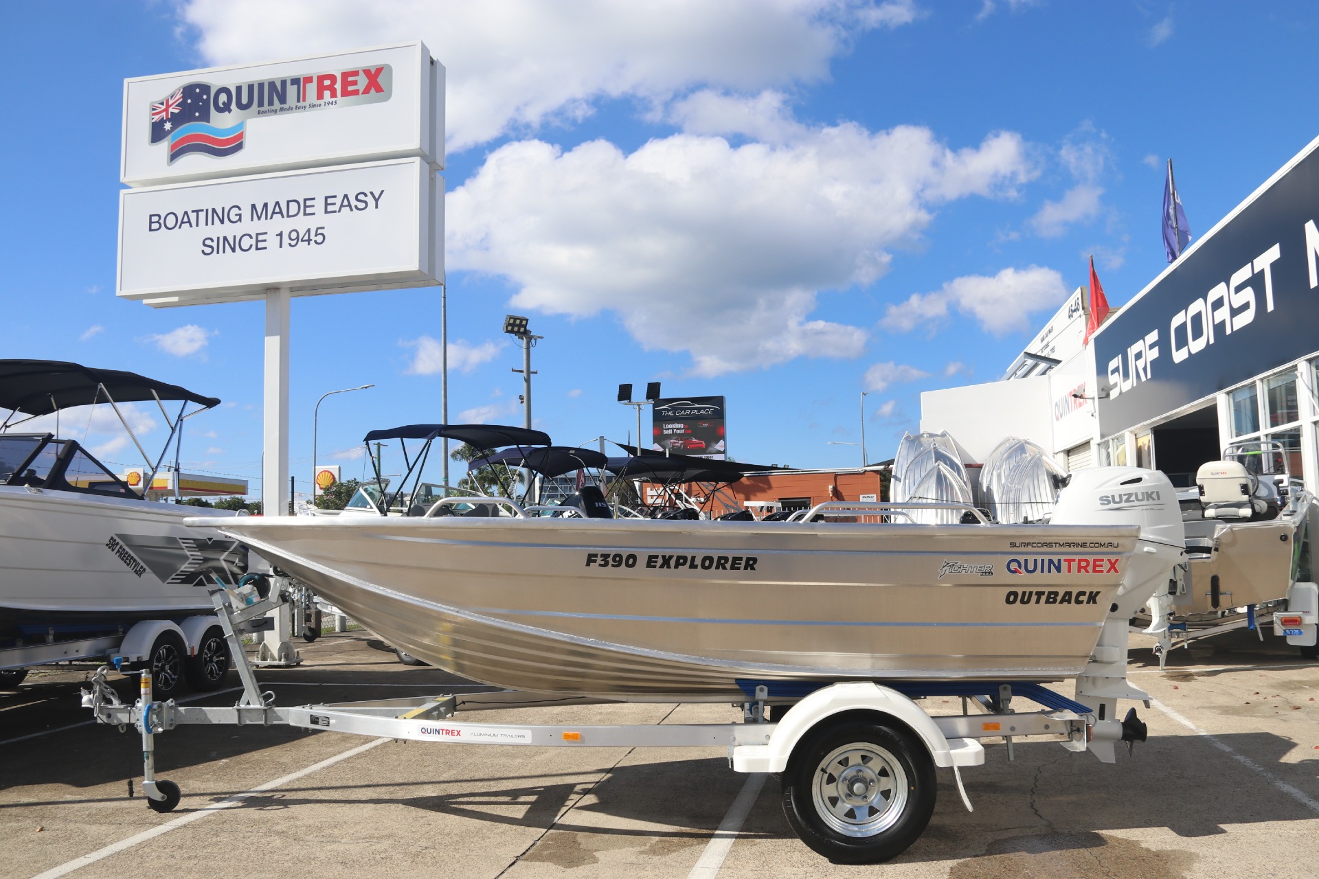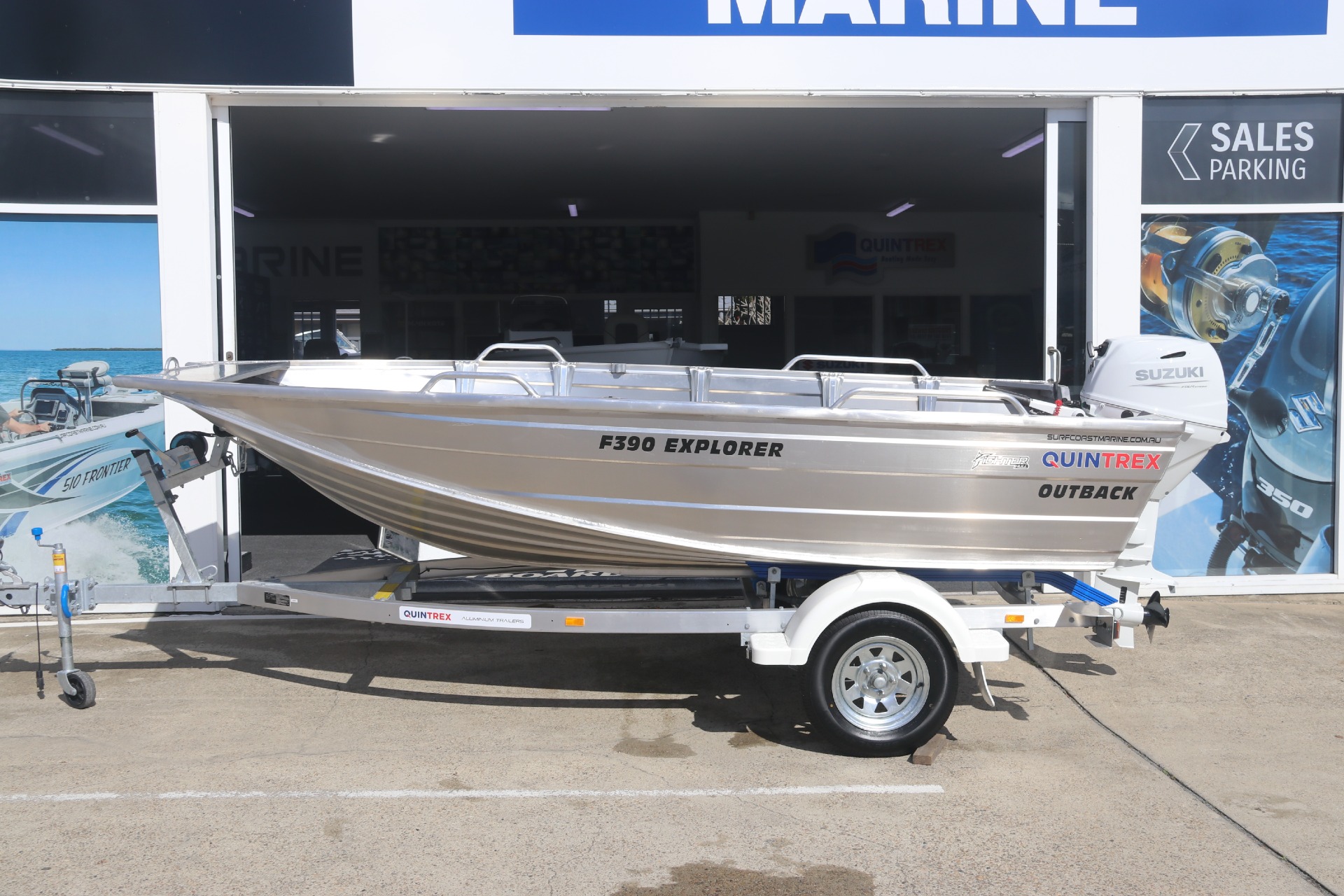 The F350, F370, and F390 make up the new range of Outback Explorers and all feature Quintrex s F-Series bow design for increased internal volume, stability and dryness