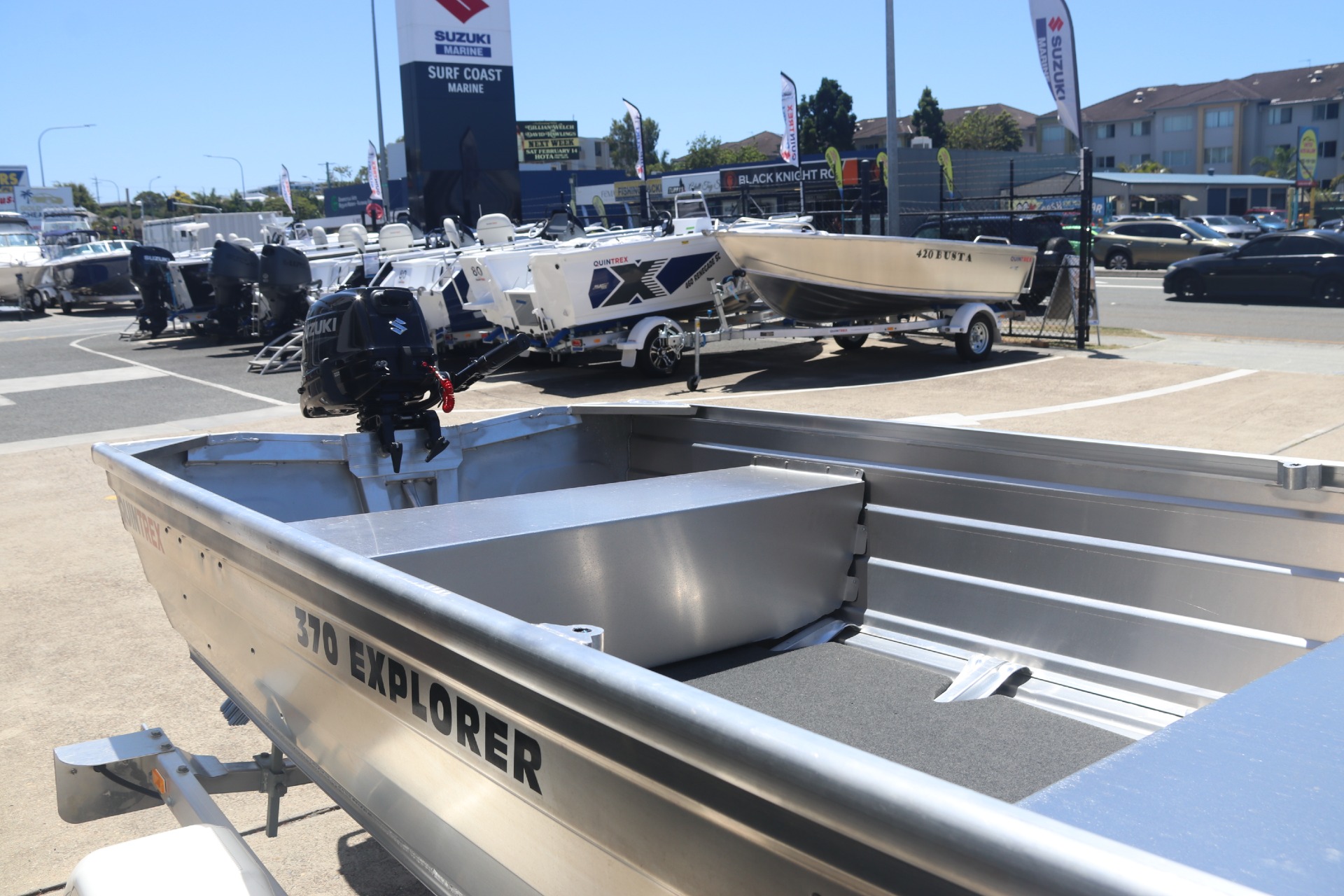 In Stock now at a Deal saving $1000 ! With a little more room to move, the 370 Explorer will fit nicely atop most utes for extra adventures when travelling. A one piece external Solid T Keel gives extra durability when loading and the Eclipse Hull allows for a comfortable and enjoyable day out on the water