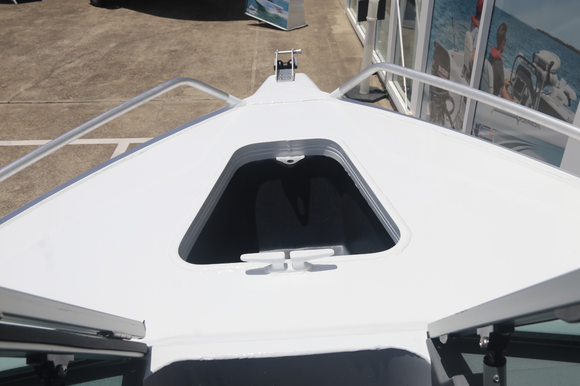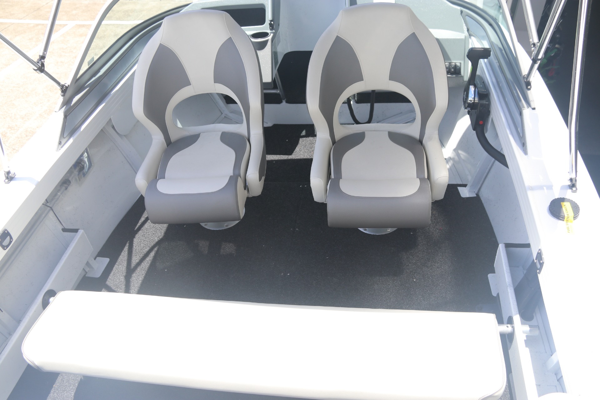 The transom with the duckboard positioned higher on the stern to glide over the water, has a redesigned dashboard for a more seamless finish, a fresh aluminium deck fascia design, new split bow rail and bowsprit design, dual maxi brackets!