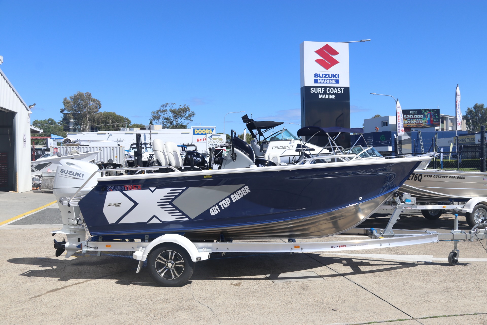 In Stock and available Now at a Deal thanks to our Summer Sale The all new Quintrex 481 Top Ender SC, with its sleek new smooth side sheets, fully welded top decks and gunwales packs a bigger punch than expected for a 481! Originally invented for the top end, the Top Ender Pro range is a popular fishing favourite Australia wide. The Top Ender Pros barra-bass tournament style layout, deep sides the Blade Hull and Flared Bow combination make the range perfect for remote creeks, estuaries and open bays. If you like sport angling this is the boat for you