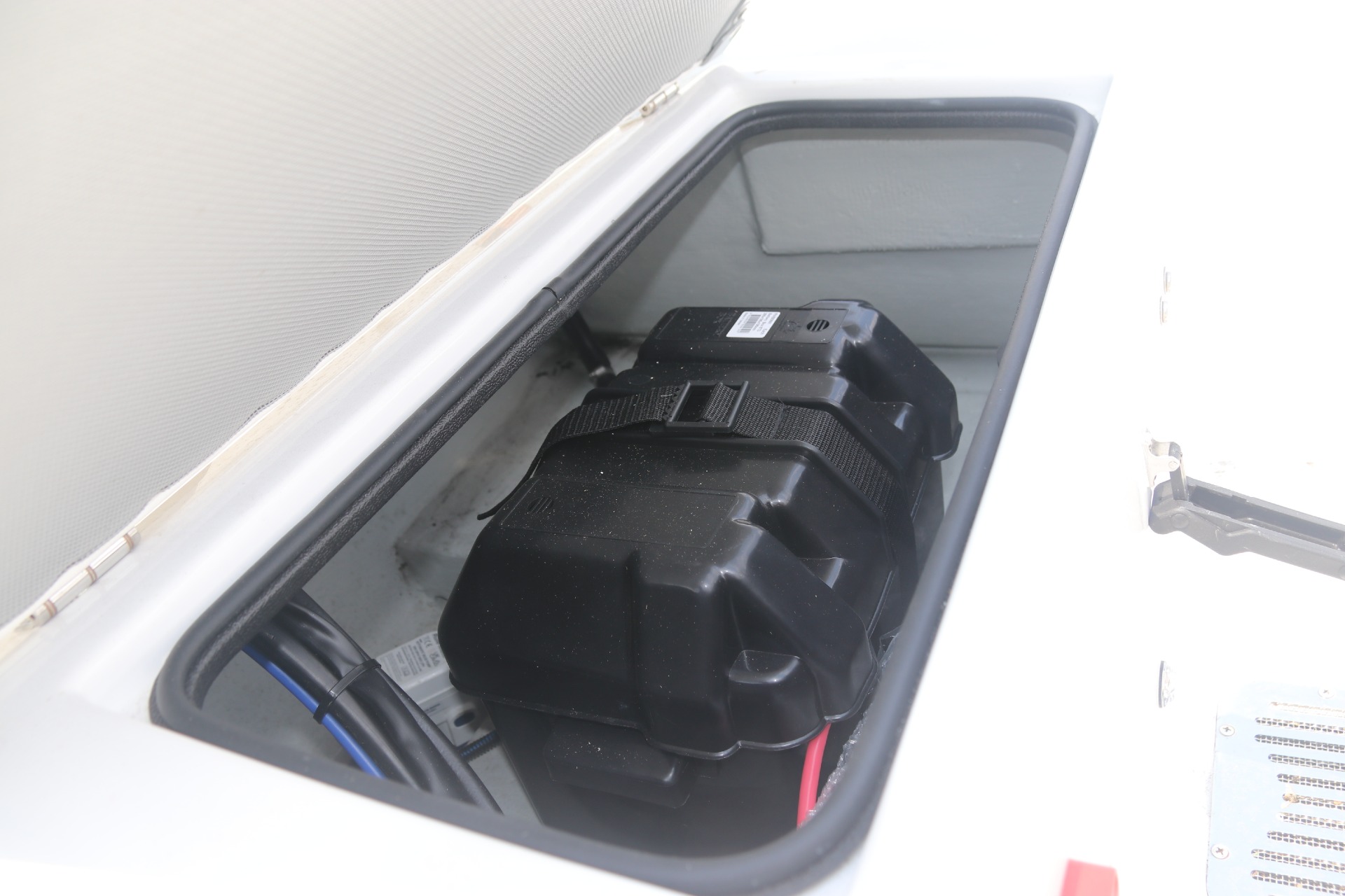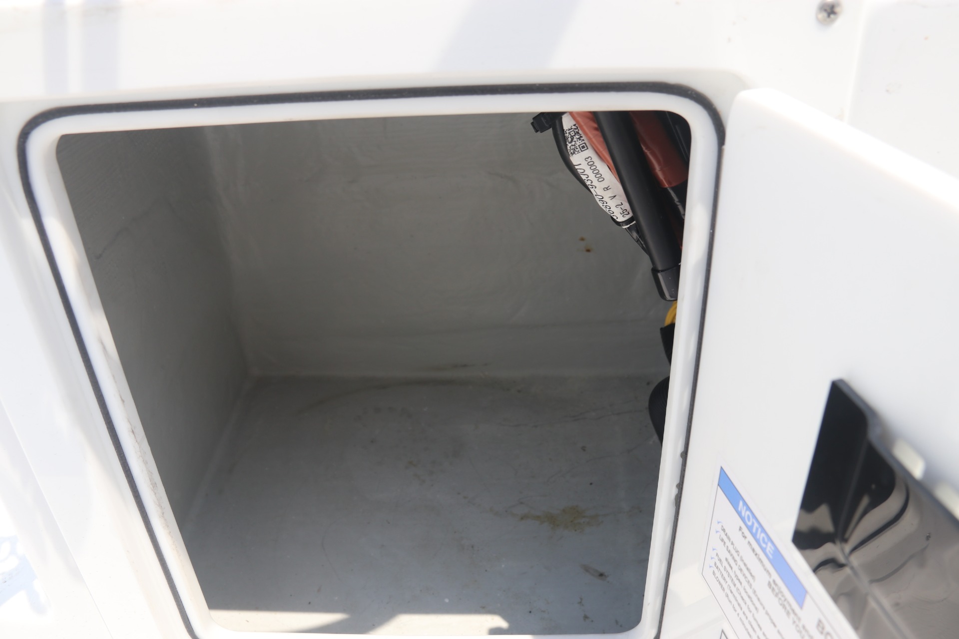 - Molded in fiberglass console complete with steering system, stainless steering wheel, switch panel, grab rail, storage compartment