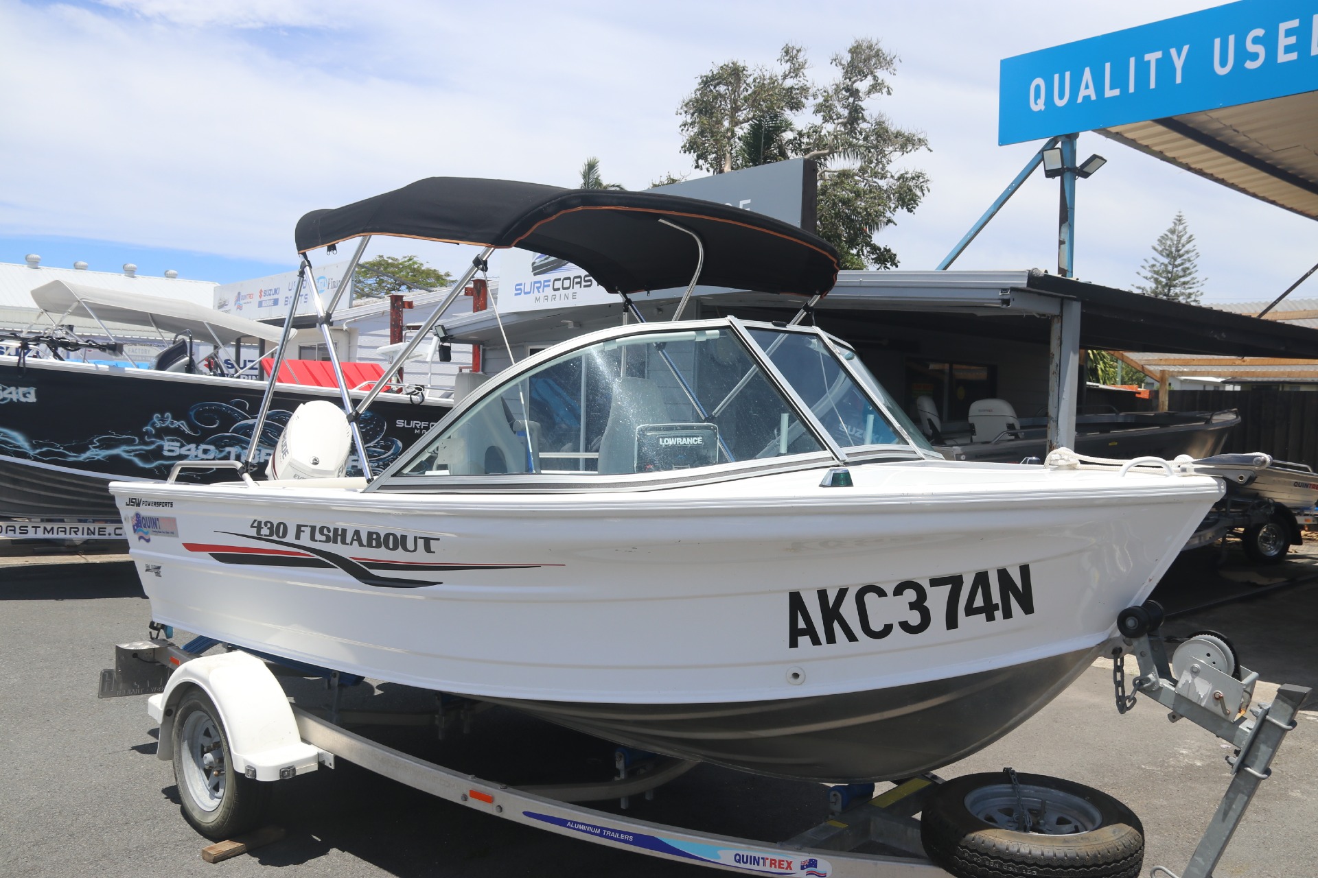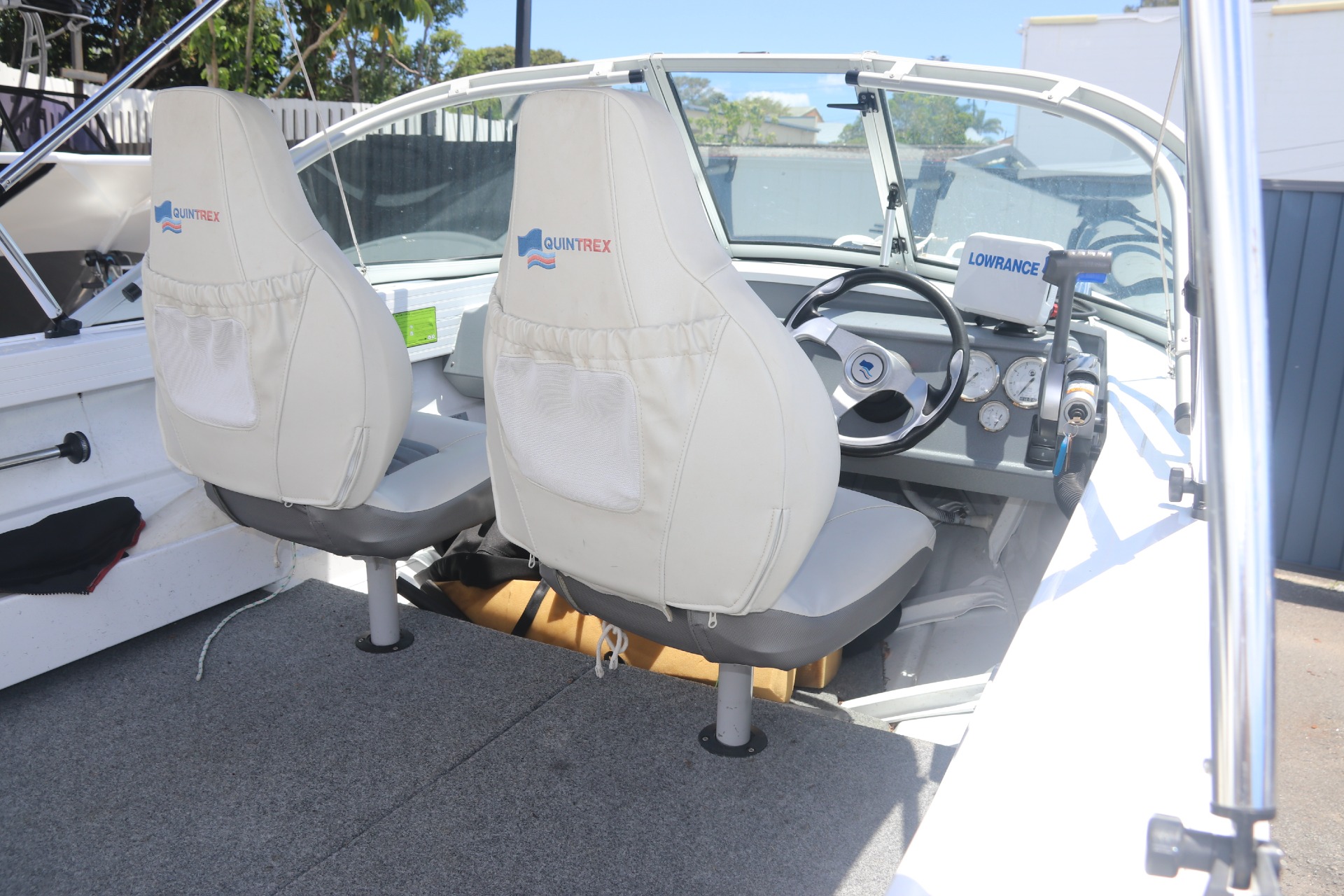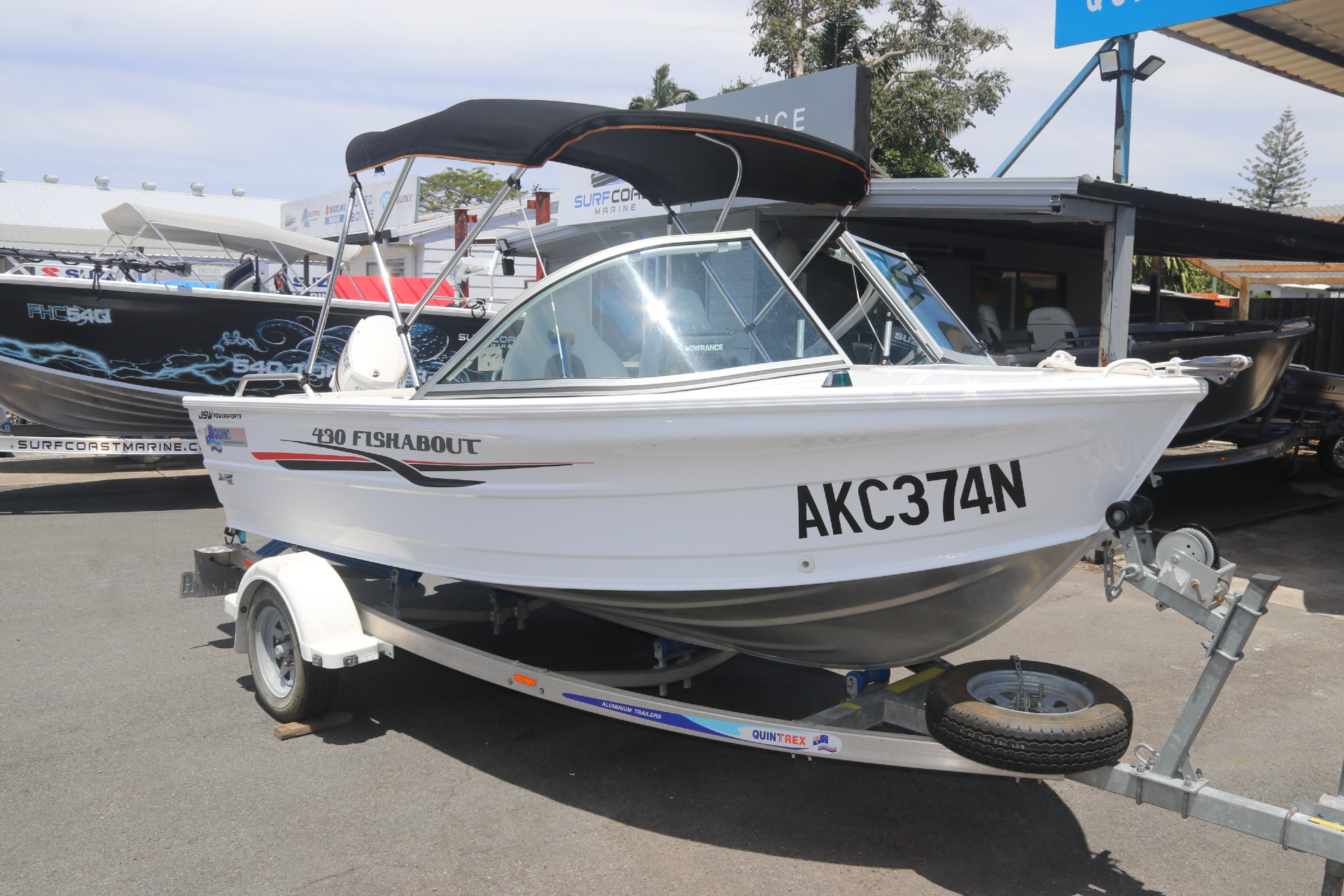 The Quintrex 430 Fishabout is the perfect size runabout for a days of fishing, cruising, . Along with the wrap around windscreen for excellent protection and split window for easy access to the anchor well. This package has had a comprehensive annual service with only 53hours, water tested as per photos, ready to hit the water!
