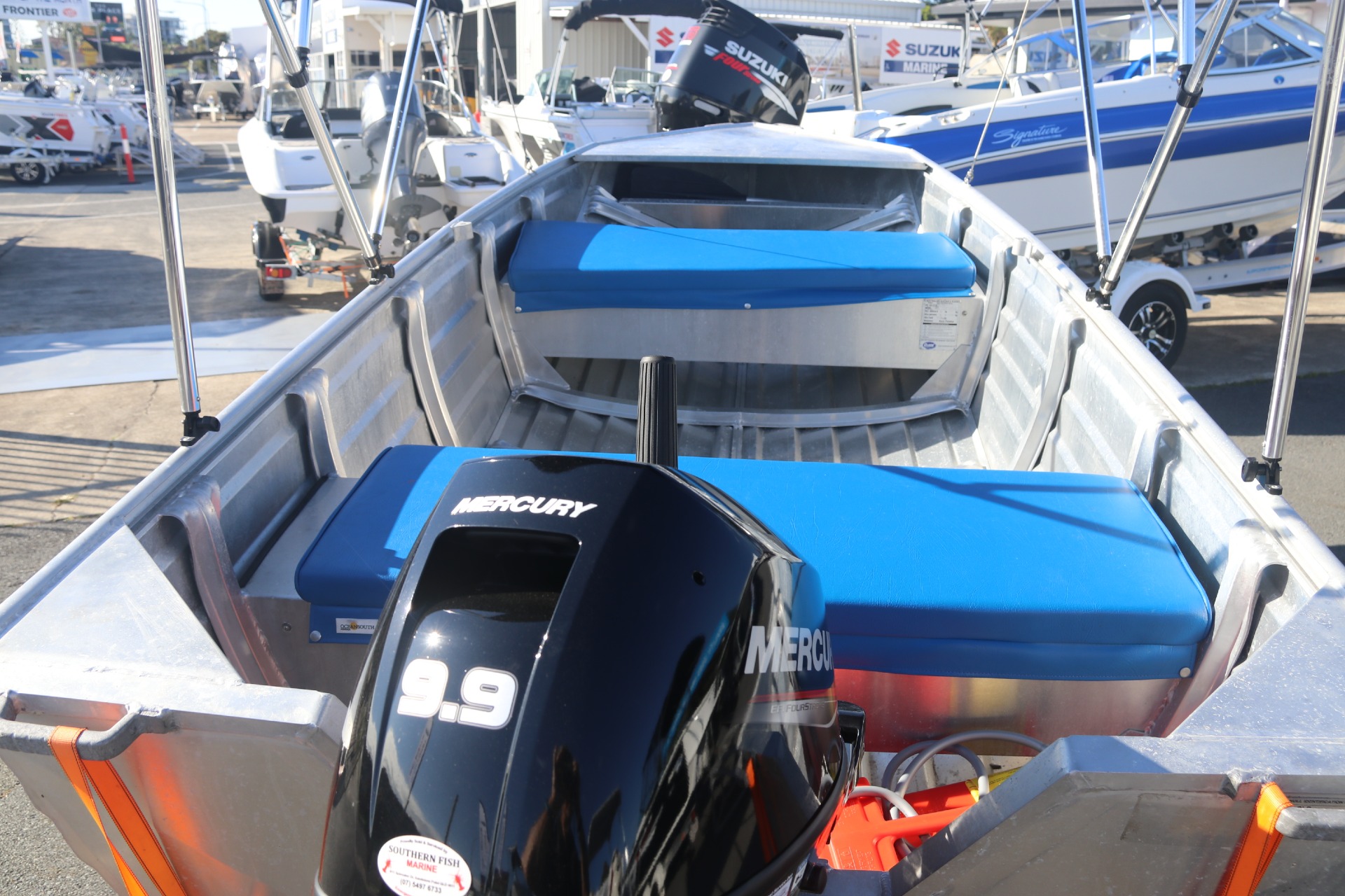 The Predator 3.55m offer stability combined with a softer ride than one would expect thanks to its sharper entry, ensuring easier handling in choppy conditions. Built with marine grade aluminium and incorporating full internal framing with fully welded bench seats with internal floatation, the Predator 3.55 stands ready to offer years of trouble free boating.