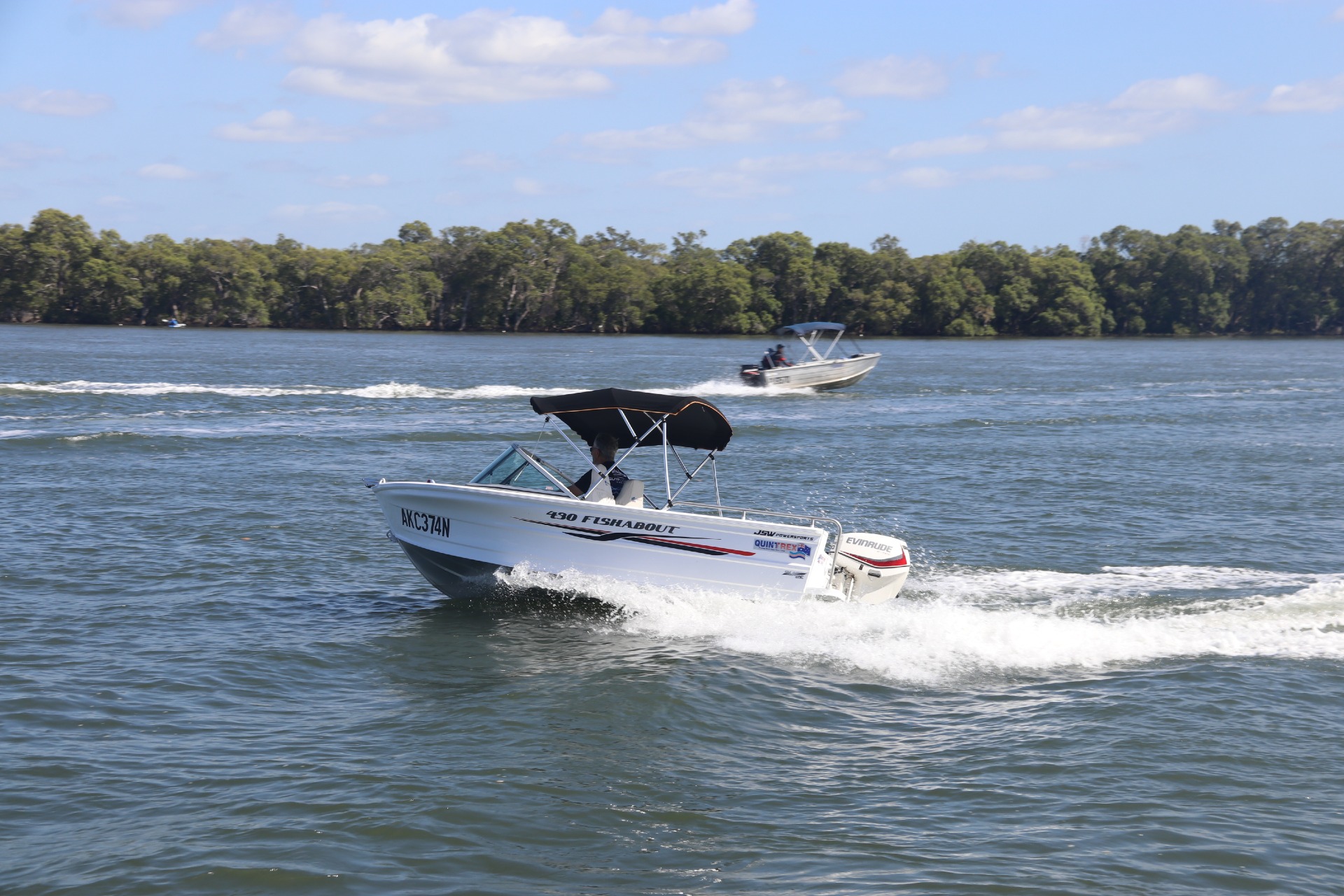 The Quintrex 430 Fishabout is the perfect size runabout for a days of fishing, cruising, . Along with the wrap around windscreen for excellent protection and split window for easy access to the anchor well. This package has had a comprehensive annual service with only 53hours, water tested as per photos, ready to hit the water!