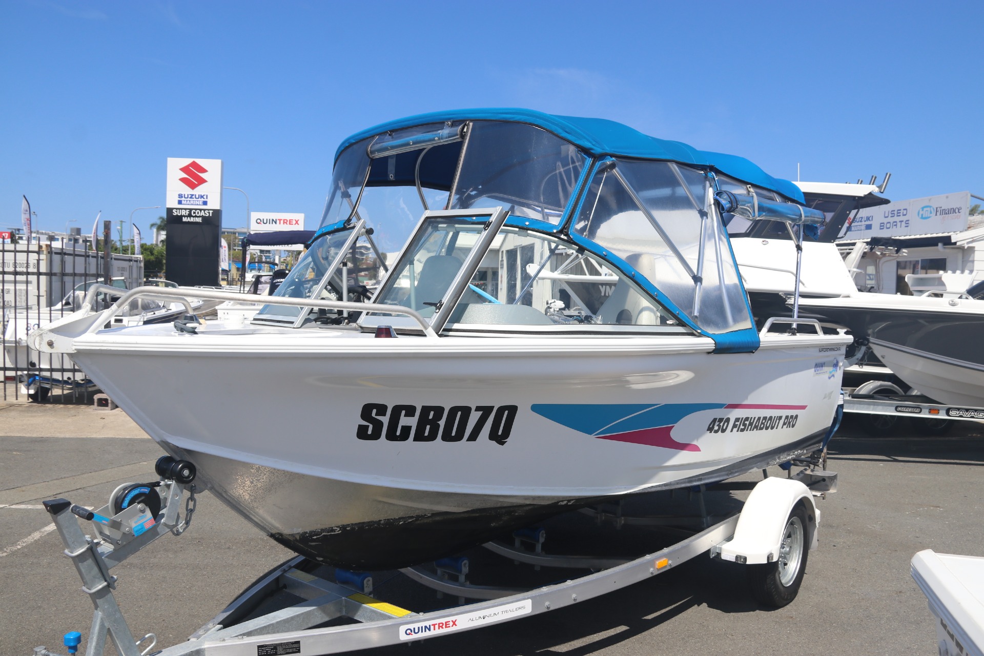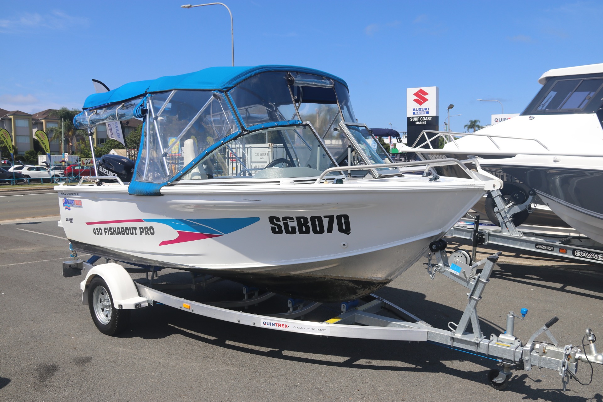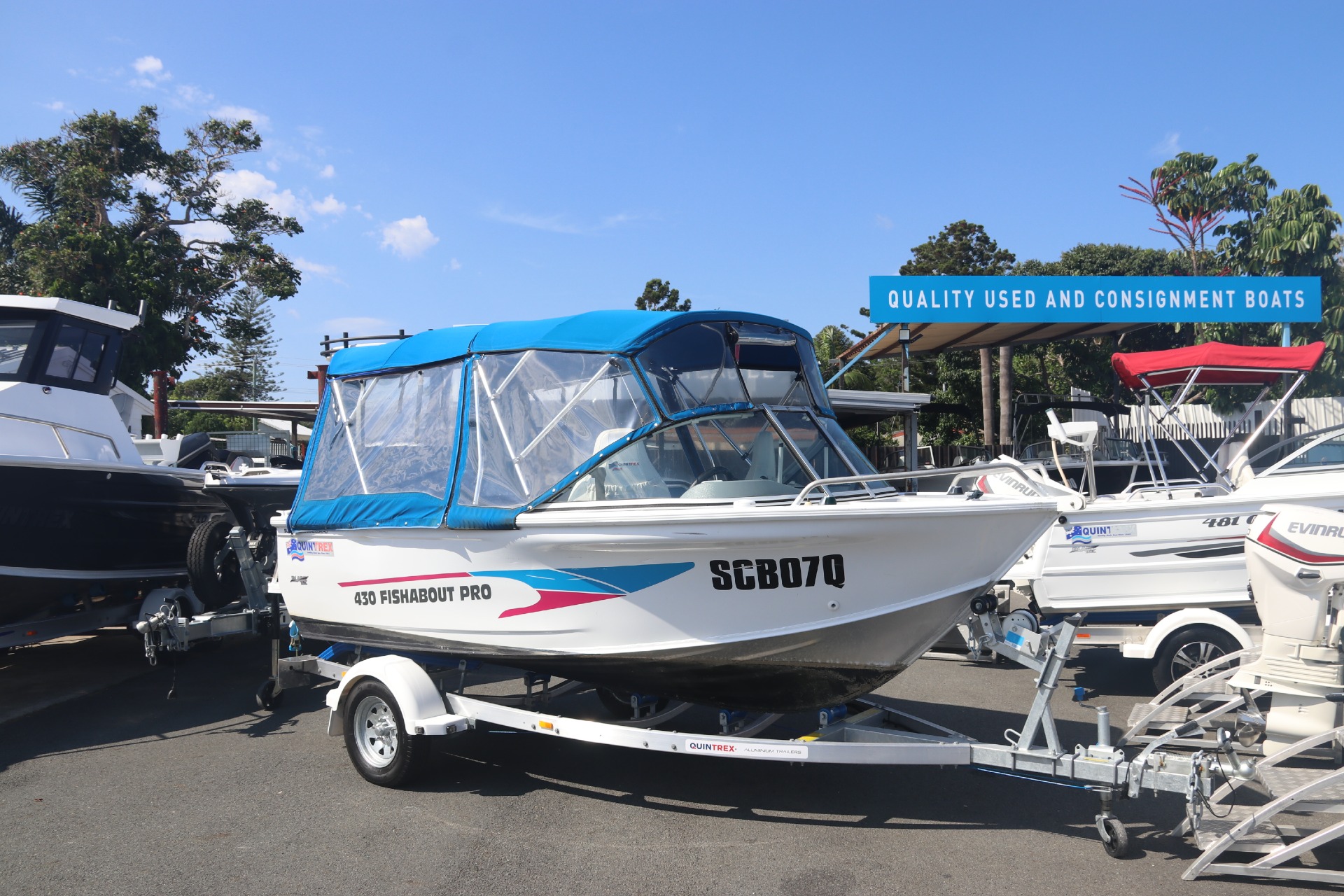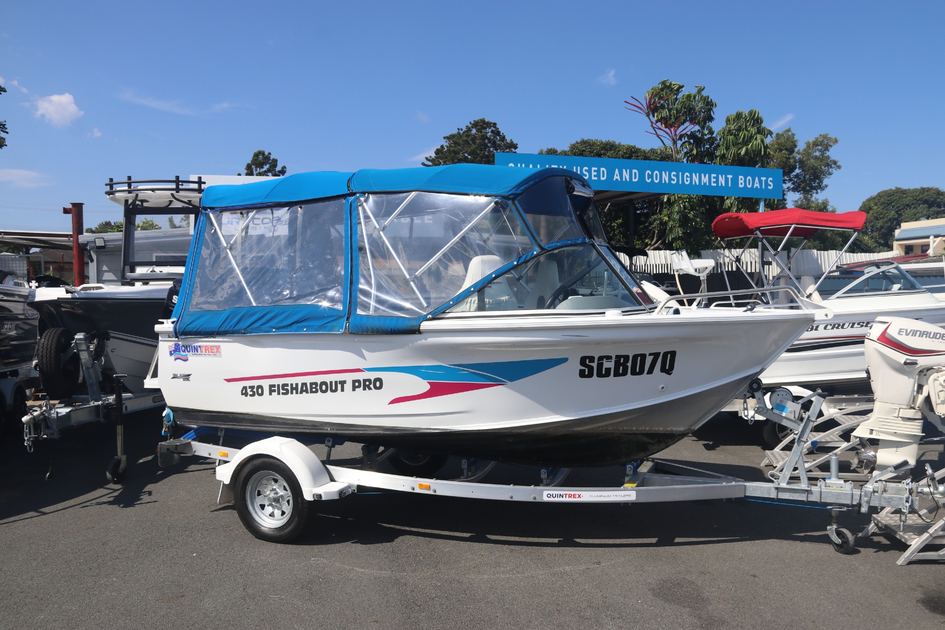 The Quintrex 430 Fishabout is the perfect size runabout for a days of fishing, cruising, . Along with the wrap around windscreen for excellent protection and split window for easy access to the anchor well. This package has had a comprehensive annual service with only 193hours, water tested as per photos, ready to hit the water!