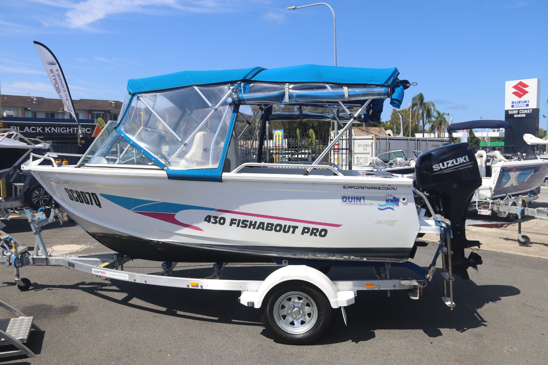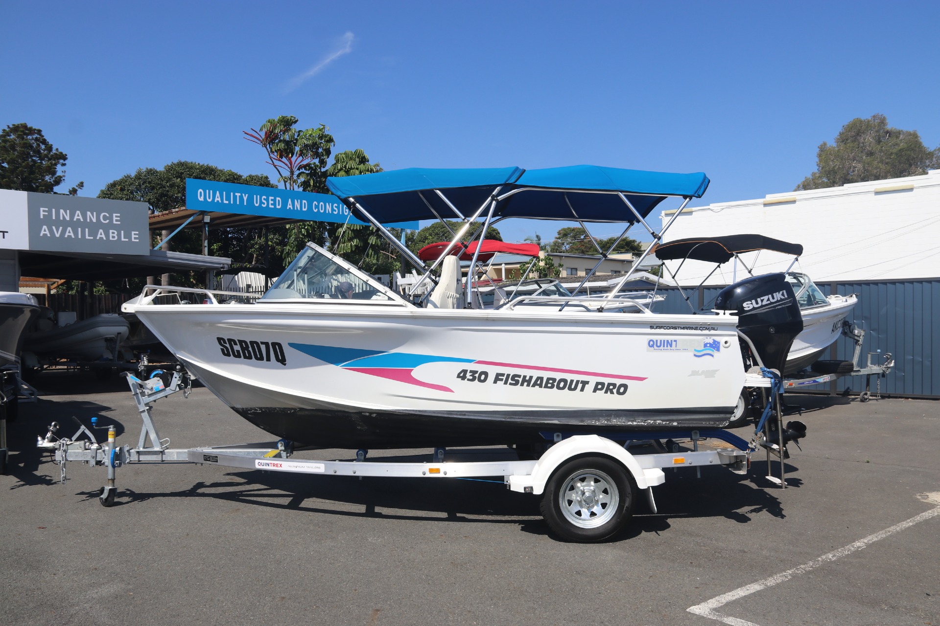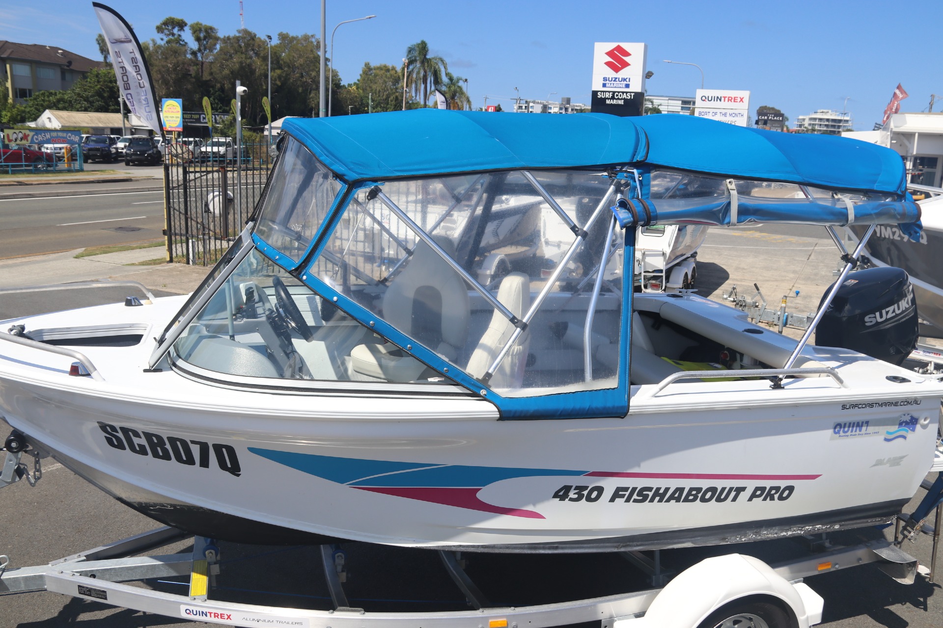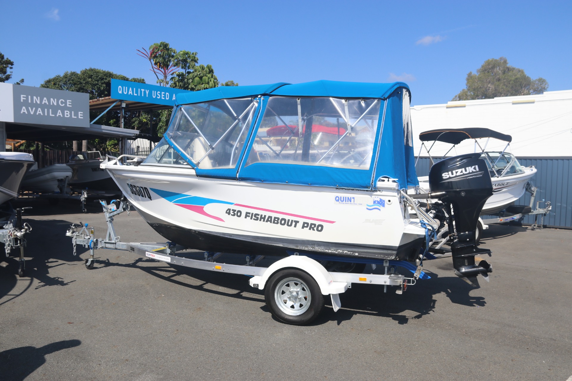 The Quintrex 430 Fishabout is the perfect size runabout for a days of fishing, cruising, . Along with the wrap around windscreen for excellent protection and split window for easy access to the anchor well. This package has had a comprehensive annual service with only 193hours, water tested as per photos, ready to hit the water!