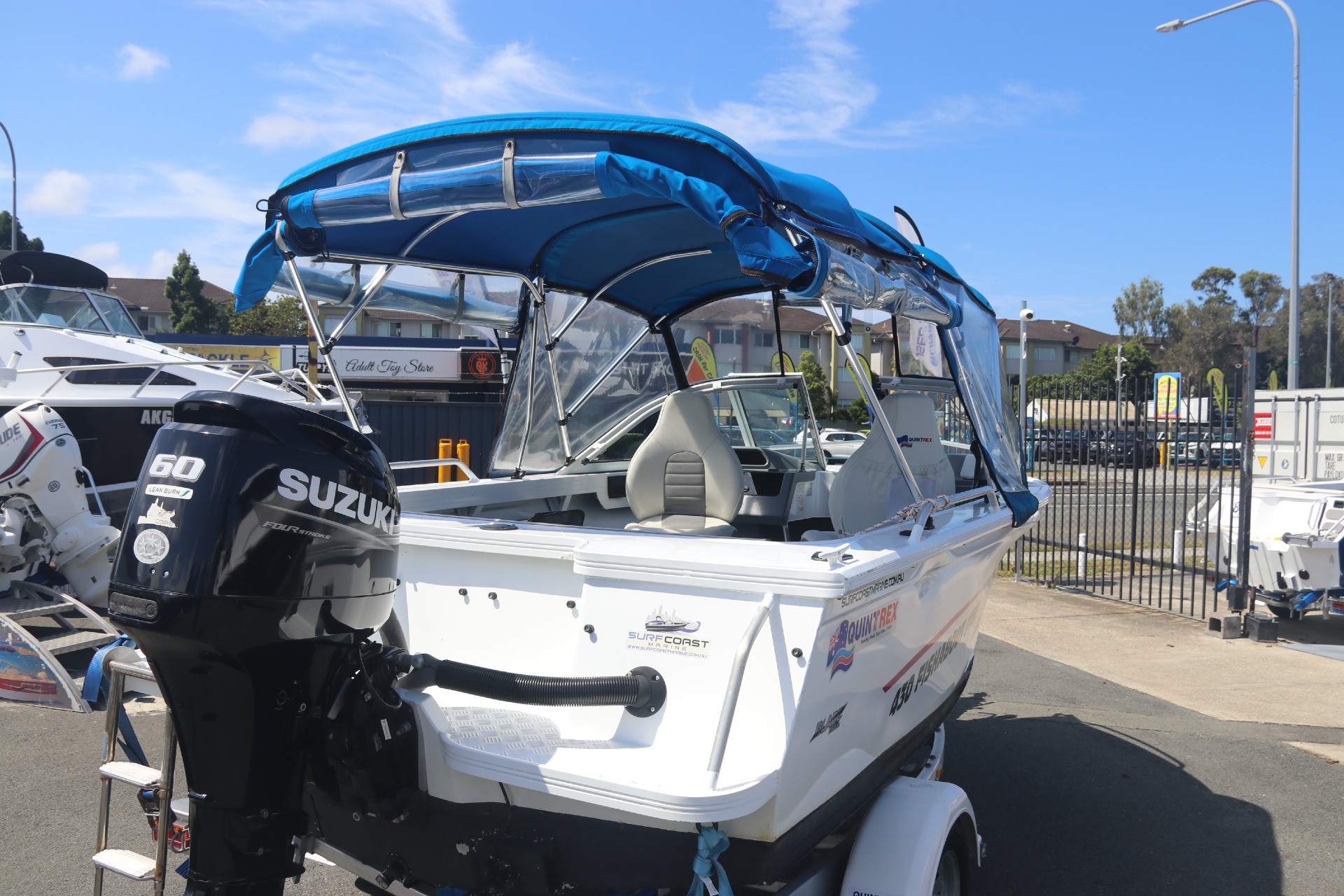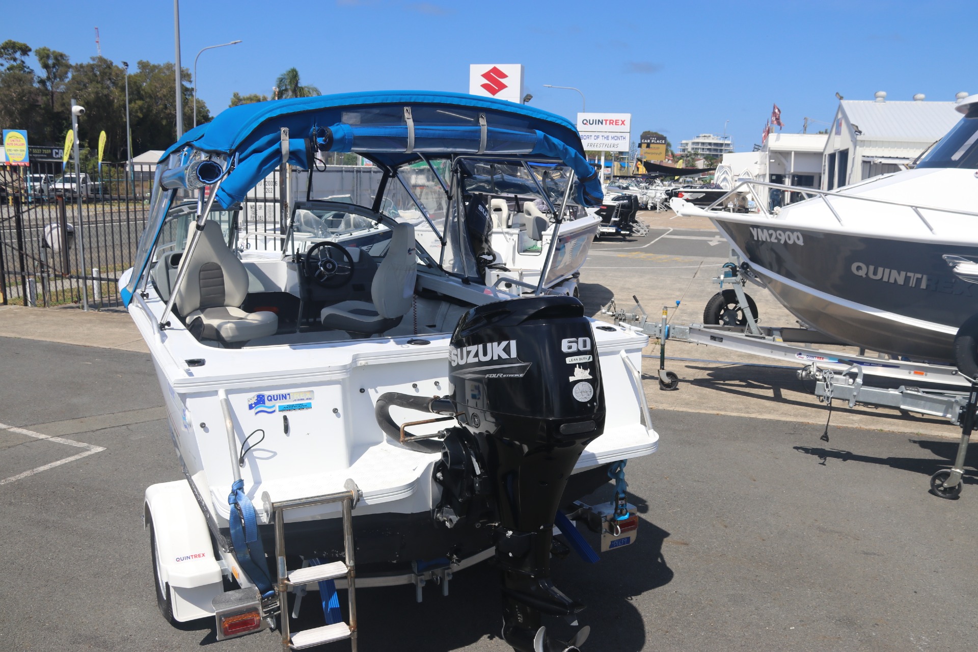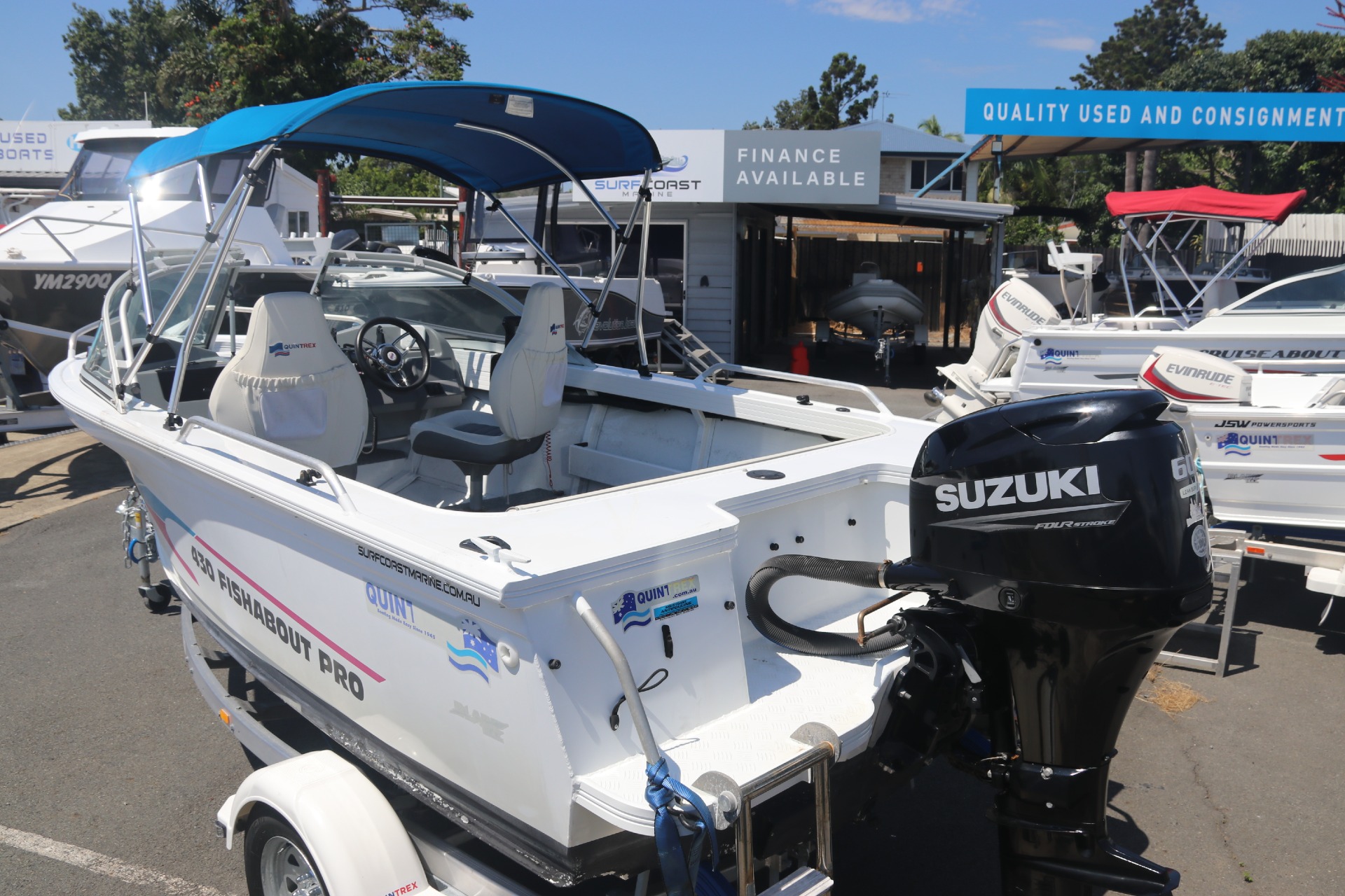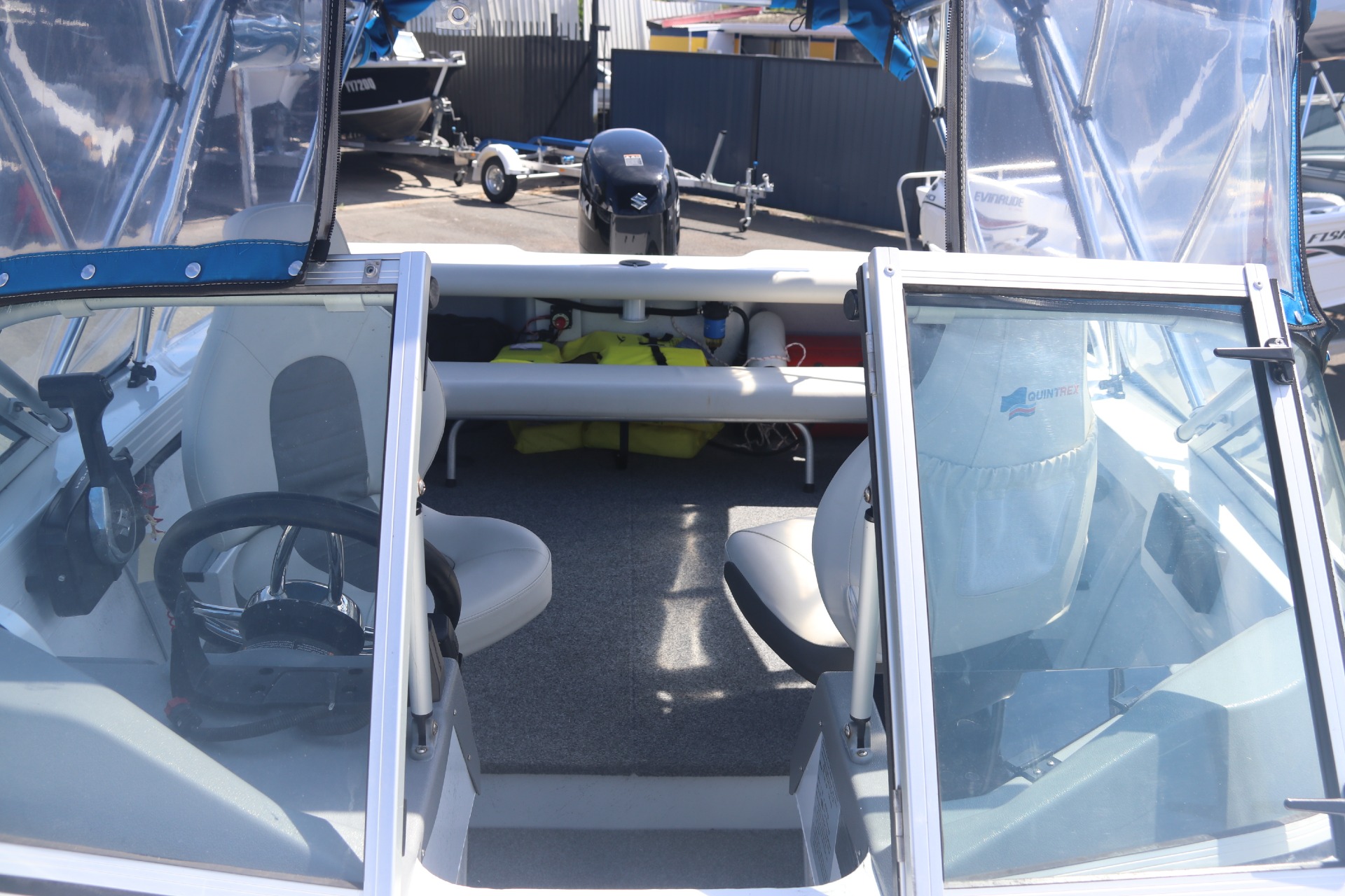The Quintrex 430 Fishabout is the perfect size runabout for a days of fishing, cruising, . Along with the wrap around windscreen for excellent protection and split window for easy access to the anchor well. This package has had a comprehensive annual service with only 193hours, water tested as per photos, ready to hit the water!