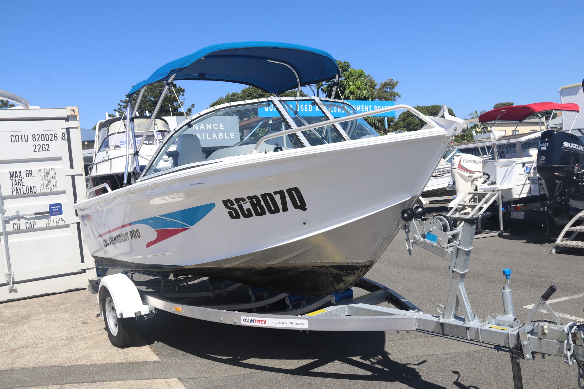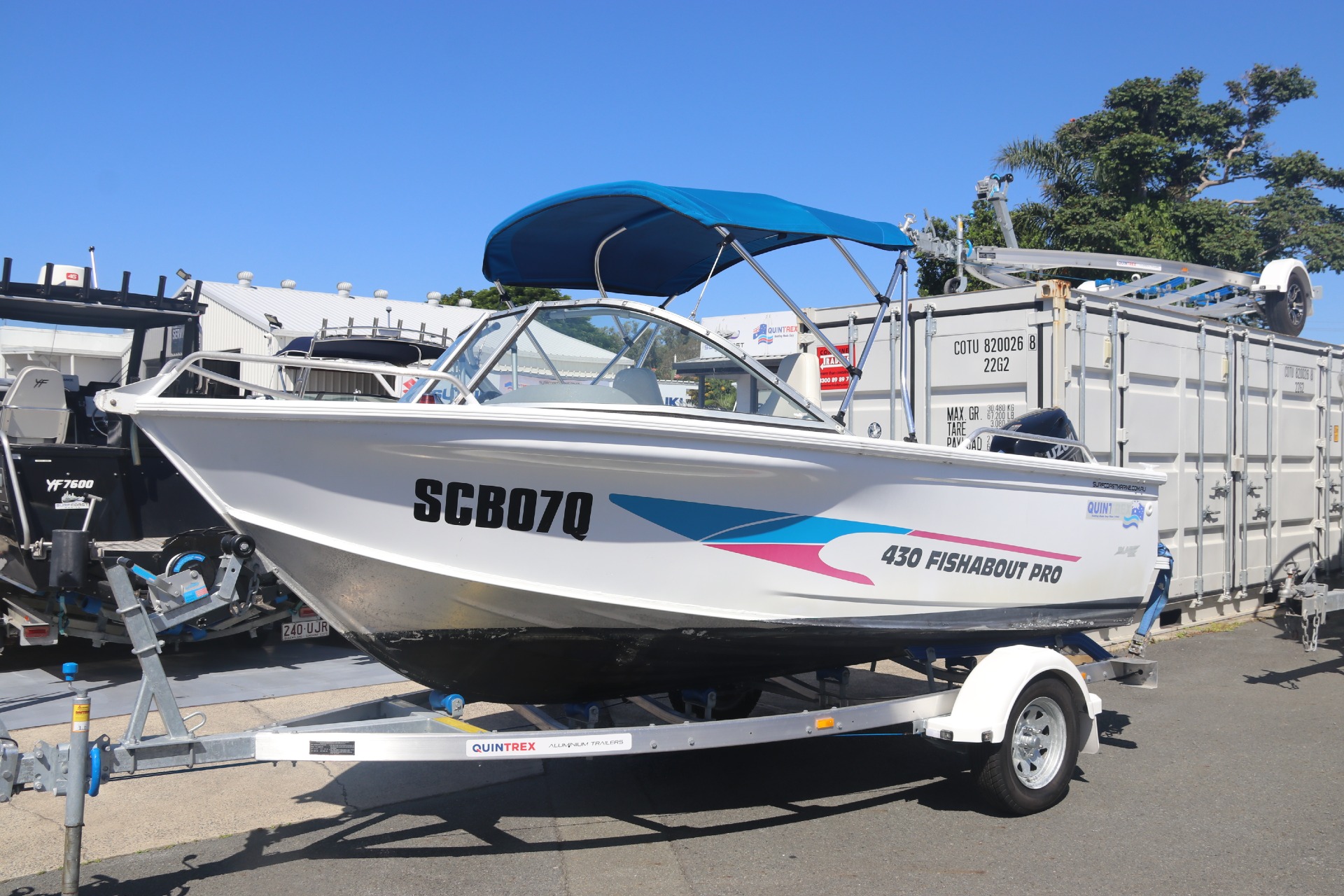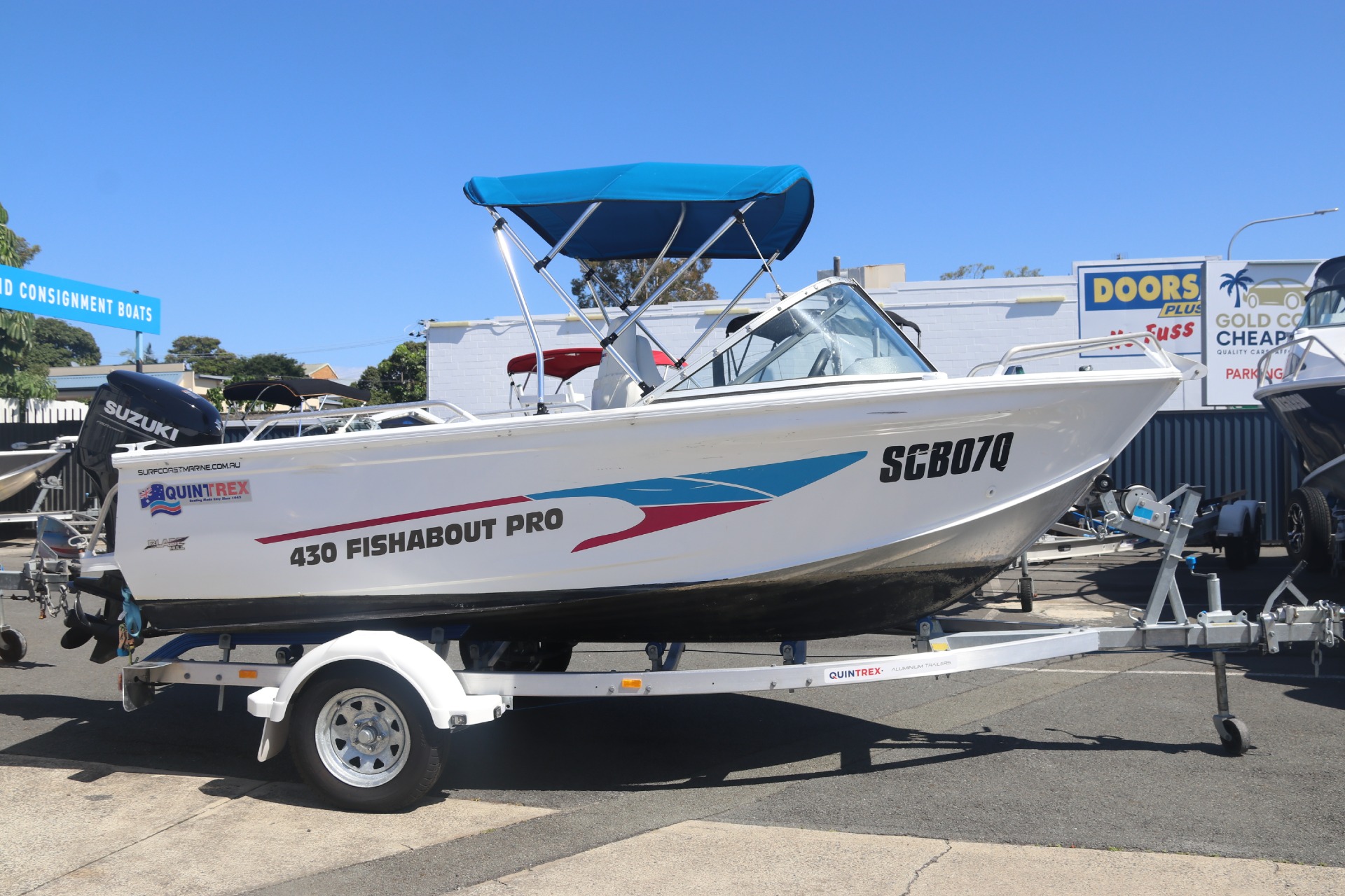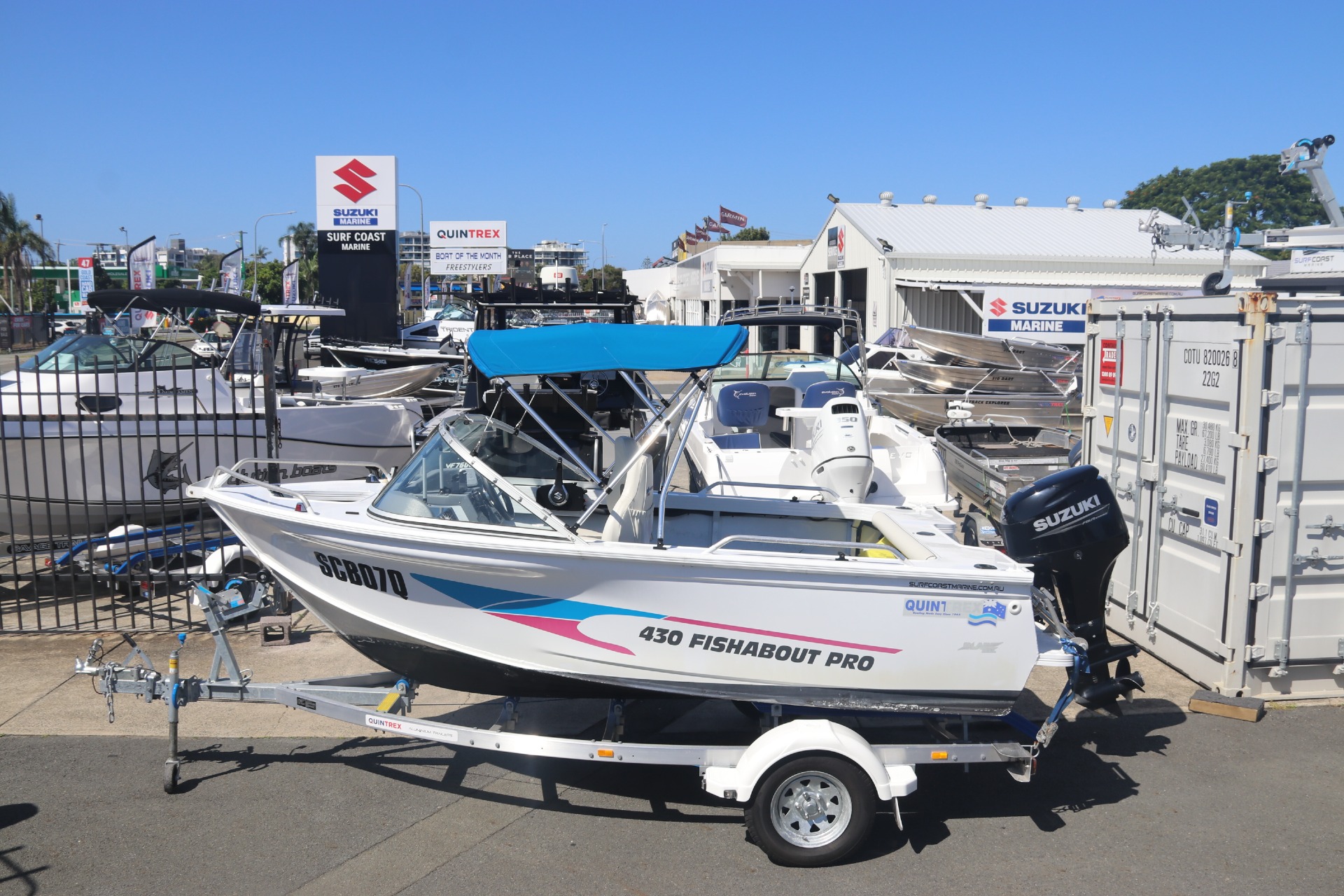 Comprehensively serviced at 165 hours - 3 Year Suzuki warranty remaining & transferrable! The Quintrex 430 Fishabout is the perfect size runabout for a days of fishing, cruising, . Along with the wrap around windscreen for excellent protection and split window for easy access to the anchor well. This package has had a comprehensive annual service with only 193hours, water tested as per photos, ready to hit the water!