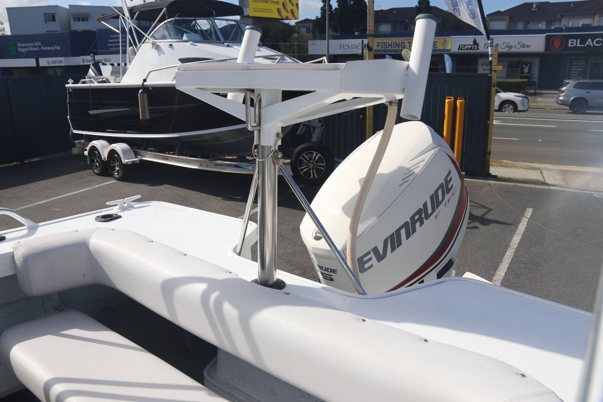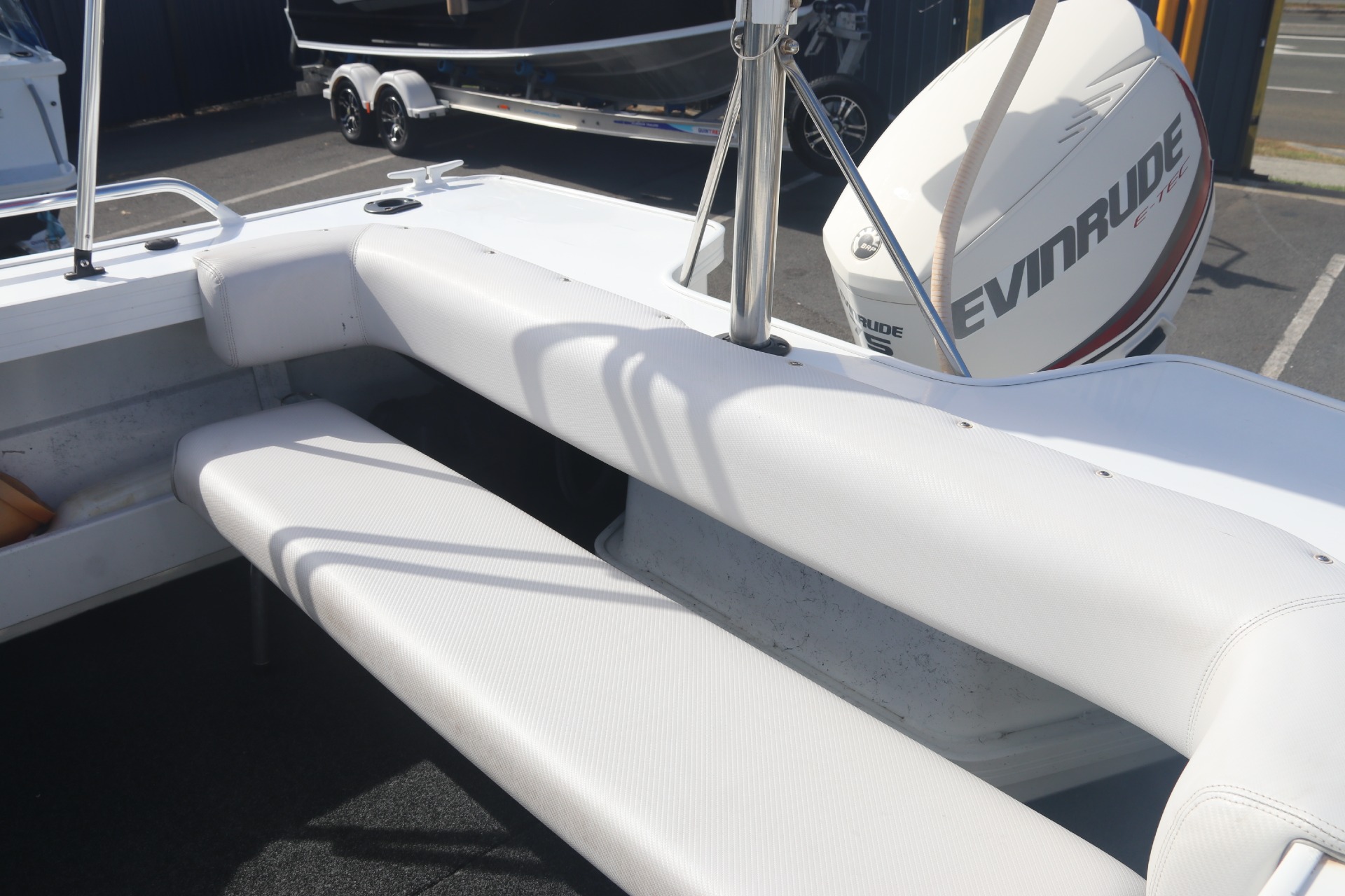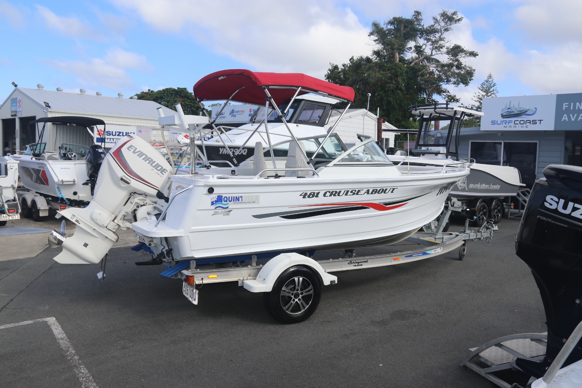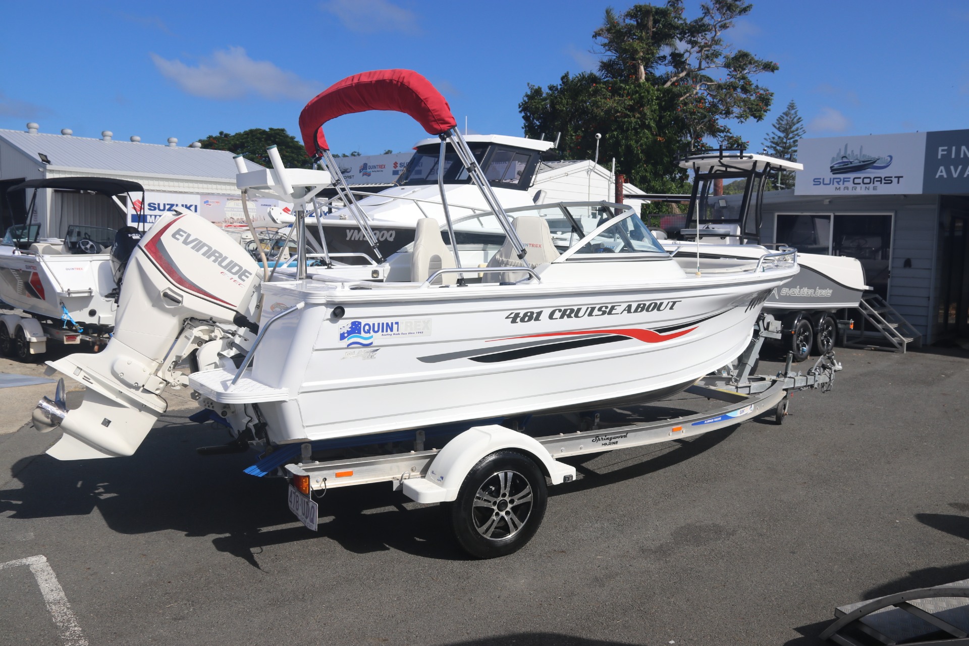 EVINRUDE E-TEC 75HP WITH STAINLESS STEEL PROPELLOR (180 hours)QUINTREX DRIVE ON 1100KG ALUMINIUM BRAKED TRAILER