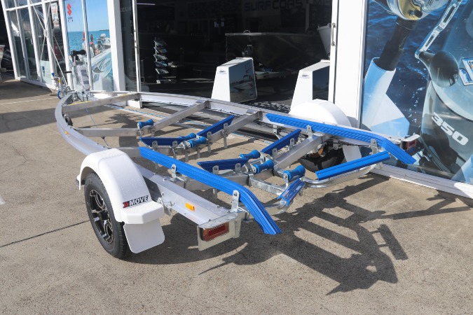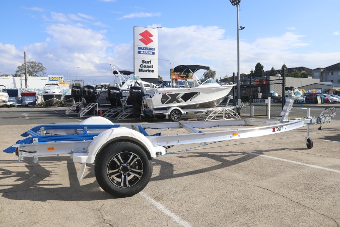 Perfect to suit your 4.3 mtr to 4.7 mtr boat, this trailer features alloy wheels, a swing up jockey wheel and flipper guides for easy loading and a tough aluminium frame this trailer is ready to hit the boat ramp! The aluminium frame is resilient to rust and corrosion, lightweight, tough and durable!
