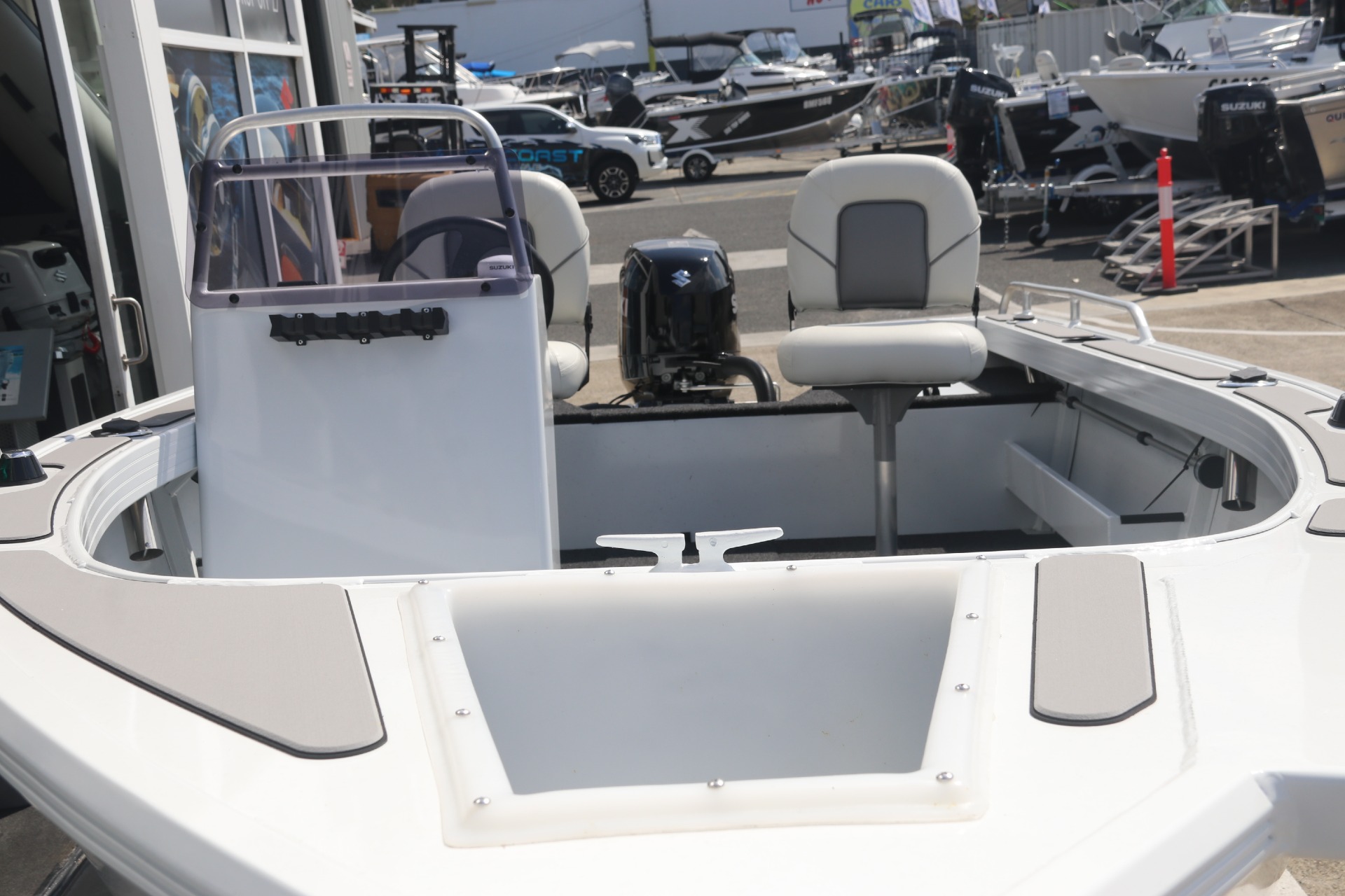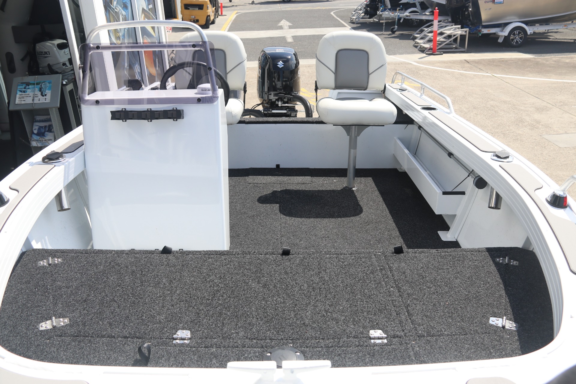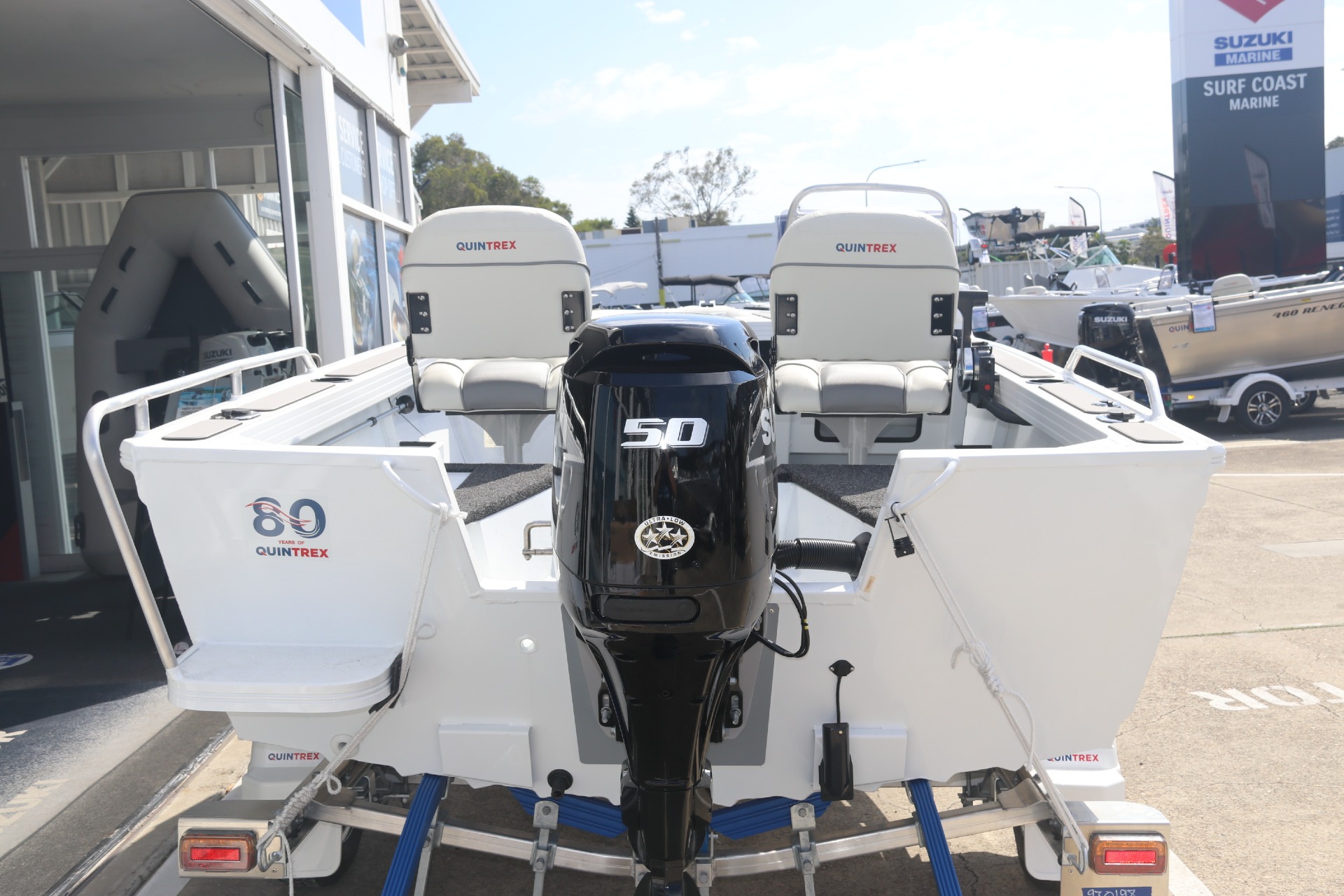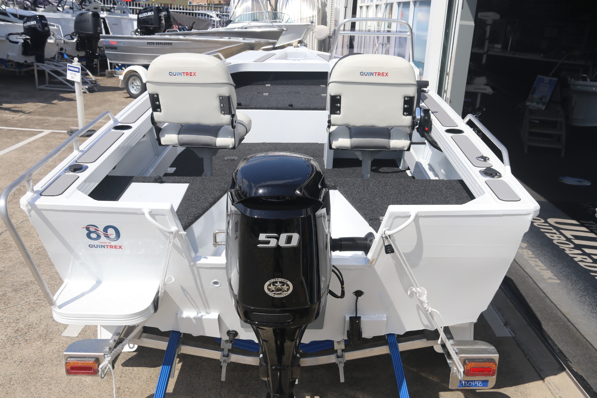 - FISHING PACK (INCLUDES STAINLESS ROD HOLDERS UPGRADE, GUNNEL SEATREAD, CONSOLE ROD RACKS AND QUINTREX ESKY)