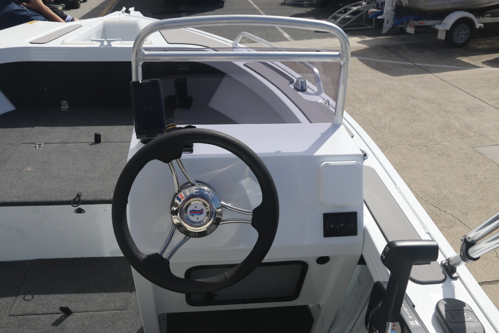 - NEW SIDE CONSOLE WITH SCREEN & GRABRAIL, GAUGES, SWITCHES, UNDER HELM STORAGE SHELF DRINK HOLDERS & LARGER AREA TO MOUNT BIG SOUNDERS