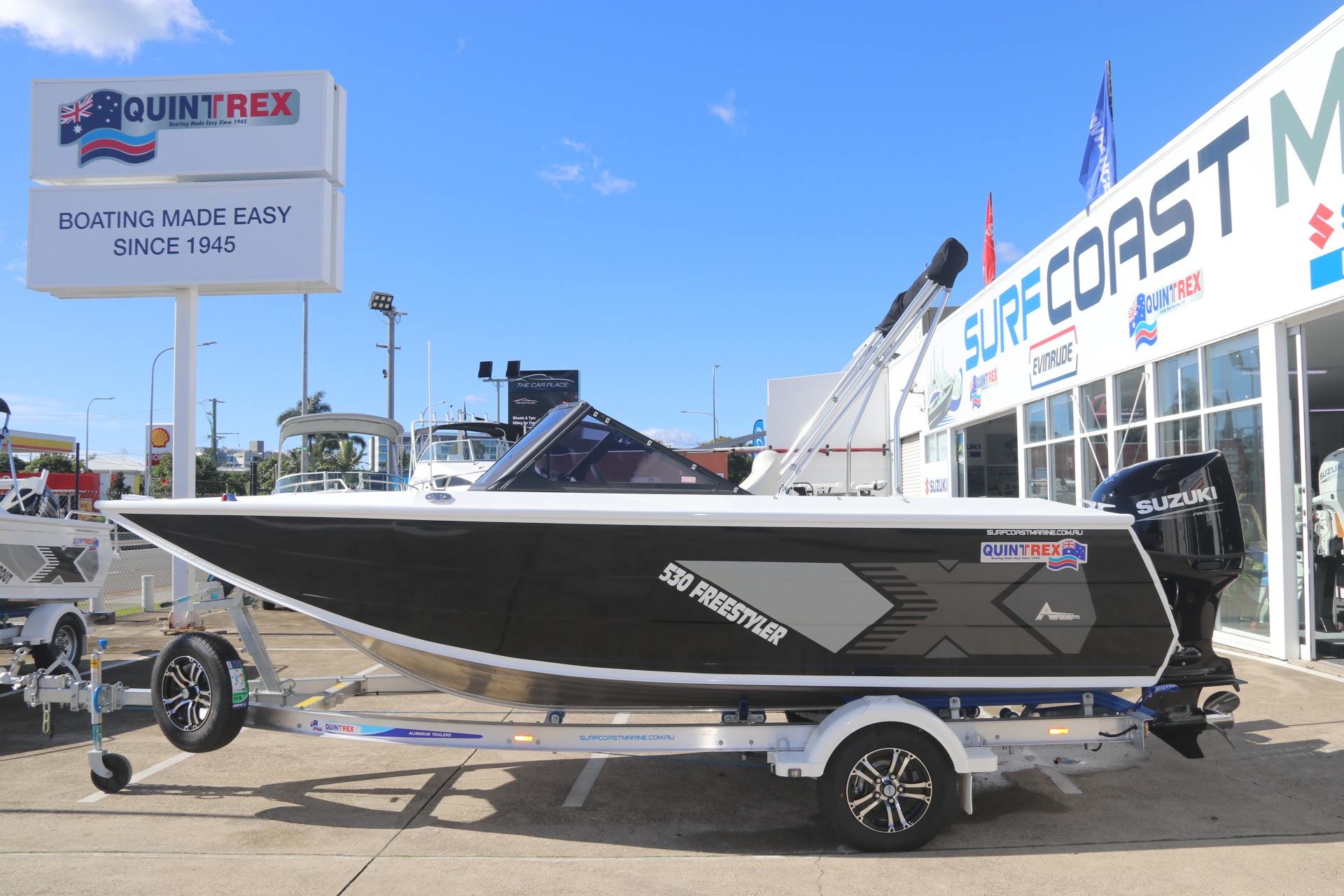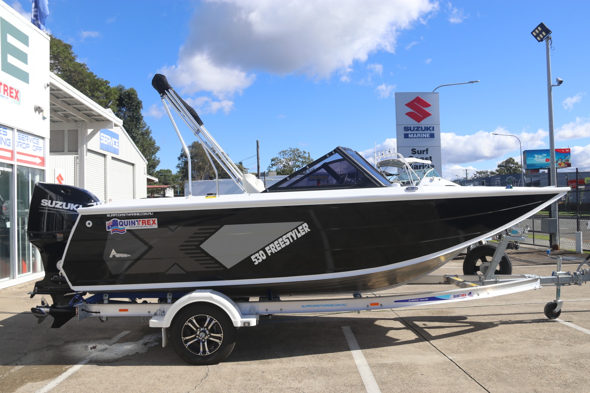 Build one like this for February 2026 The Apex hull design provides the ultimate on water performance, smoother riding in rough water and even better stability and grip when cornering, The forked bow design increases floor space along with the raised side decks (RSD) increasing freeboard by 80mm and overall volume by 20%. The revolutionary hull design allows you to reach full boating potential offering unsurpassed versatility and performance. The 530 Freestyler is perfect for the whole family offering safety and plenty of storage. The new console storage hatch position allows for easy access and a place to keep valuables close by.