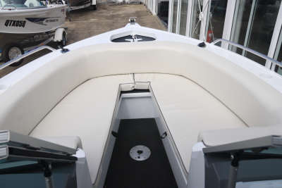 The new transom with the duckboard positioned higher on the stern to glide over the water, has a redesigned dashboard for a more seamless finish, a fresh aluminium deck fascia design, new split bow rail and bowsprit design, dual maxi brackets!