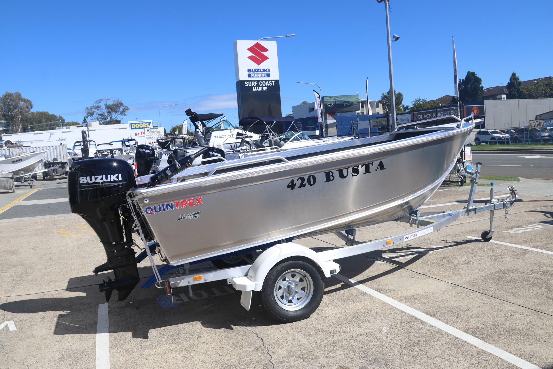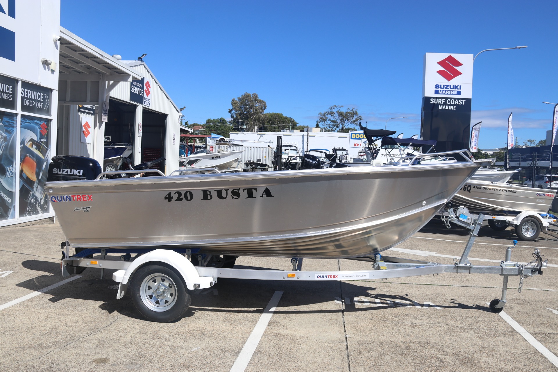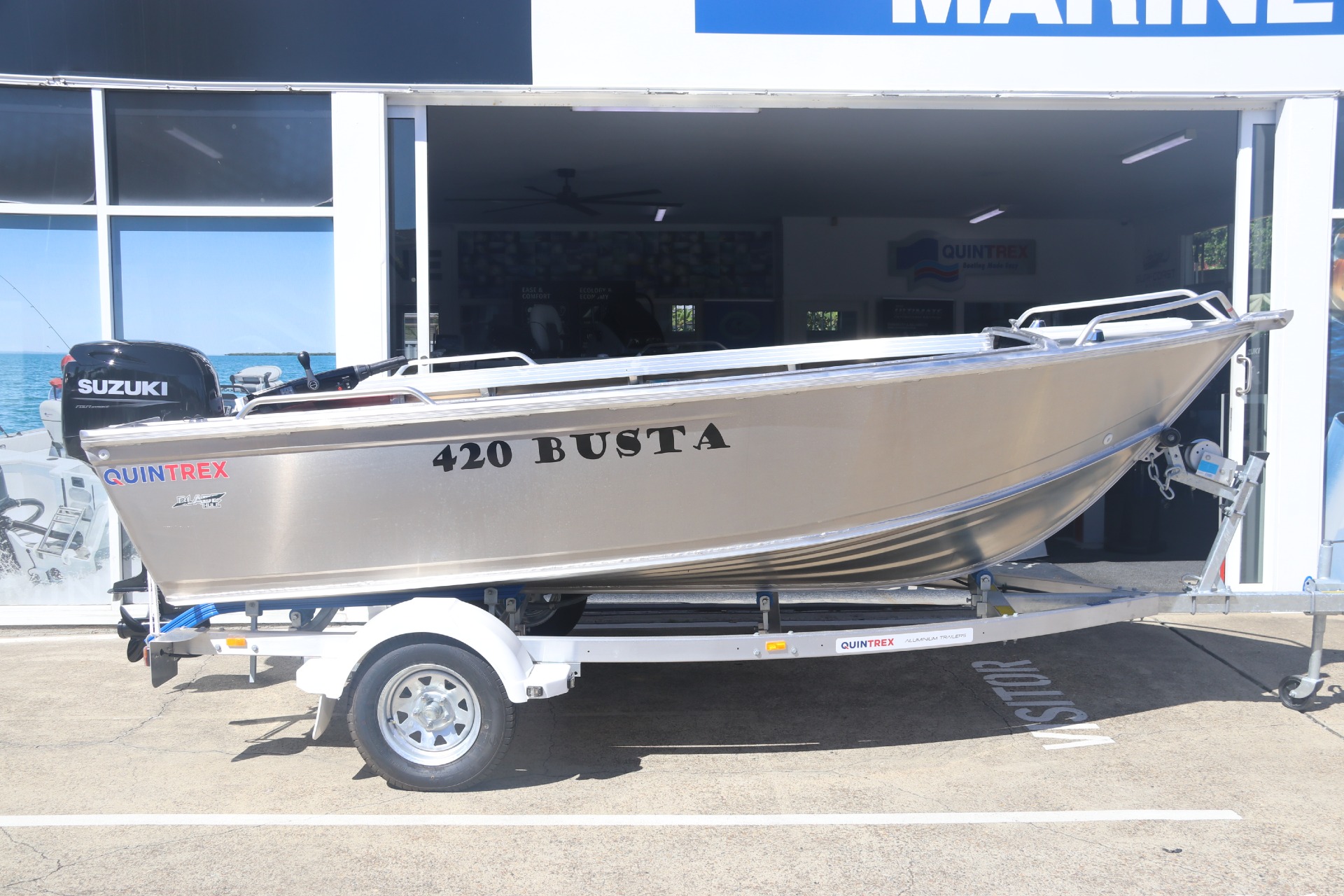 In Stock and available Now at a Deal thanks to the Make Your Summer Legendary Promotion from Suzuki Now New Release Busta Featuring 4 Person Capacity , Wider Beam and 3mm upgrade in all Transoms, Side and Bottom Sheets, Wide Beam at 2.09 the New Busta has had a serious upgrade! Engineered with the Blade Hull, the 420 Busta is a great tinnie, ready to take you and your mates on a day of fishing adventures.