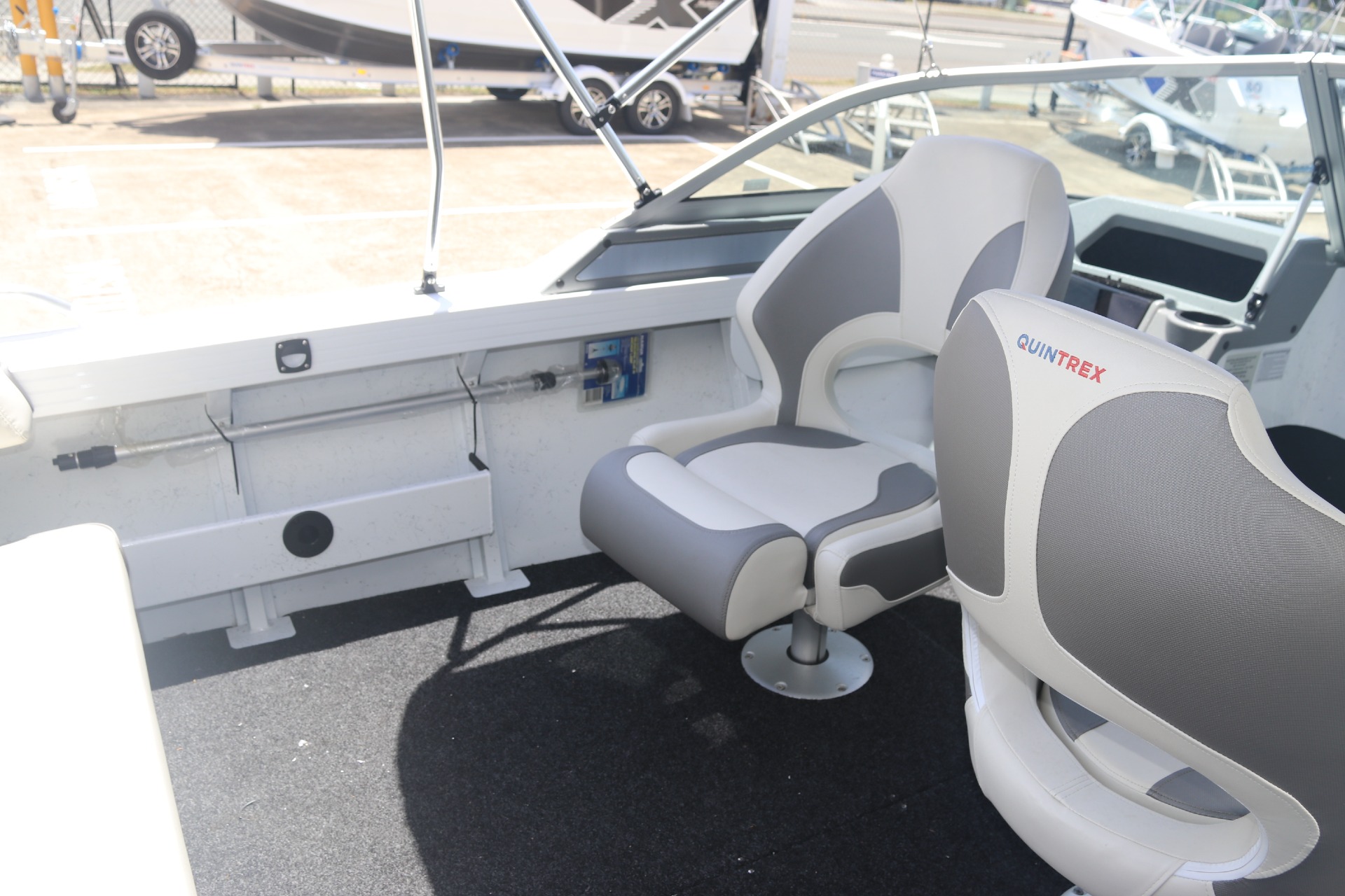 The transom with the duckboard positioned higher on the stern to glide over the water, has a redesigned dashboard for a more seamless finish, a fresh aluminium deck fascia design, new split bow rail and bowsprit design, dual maxi brackets!