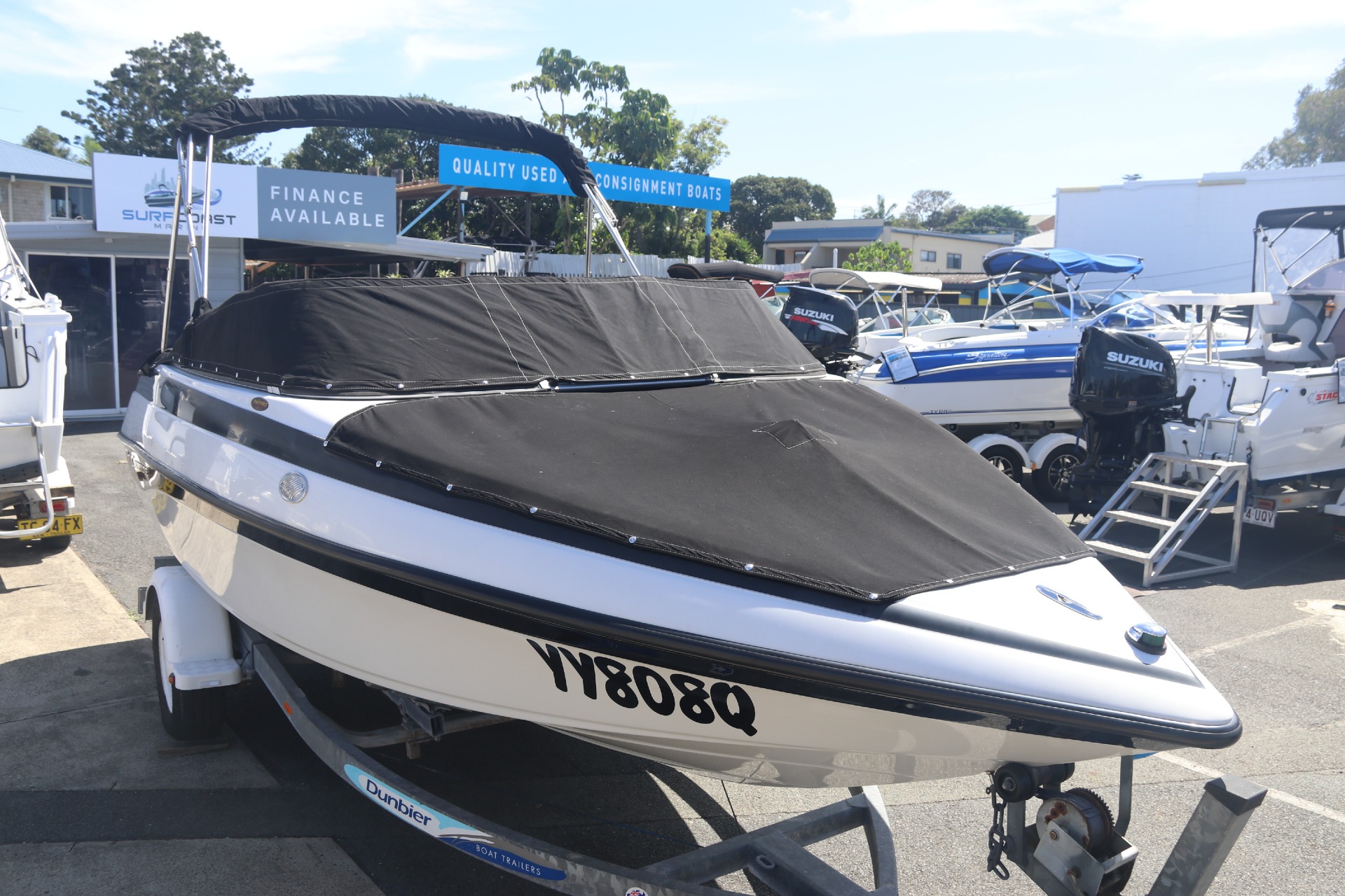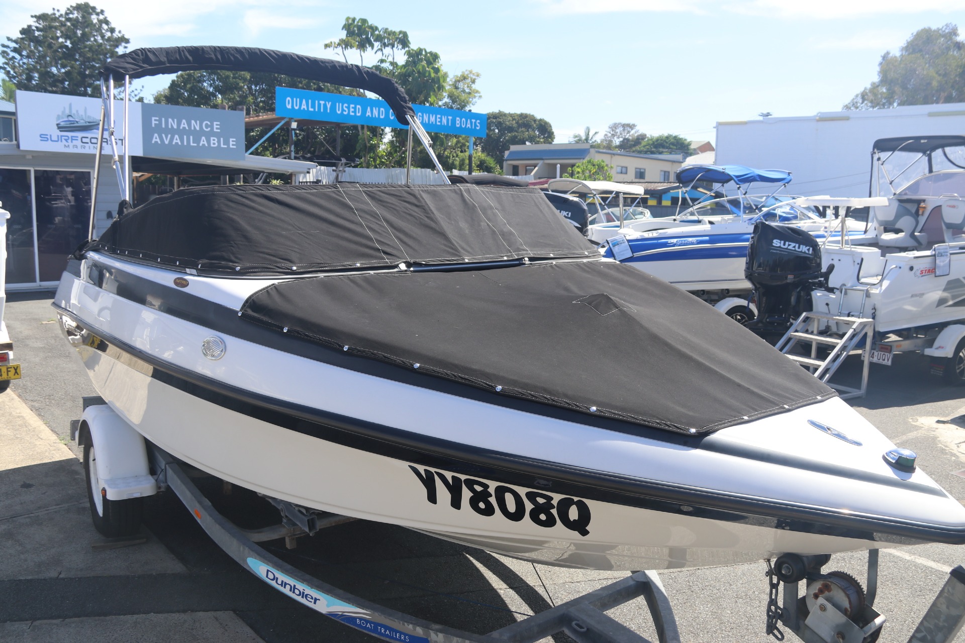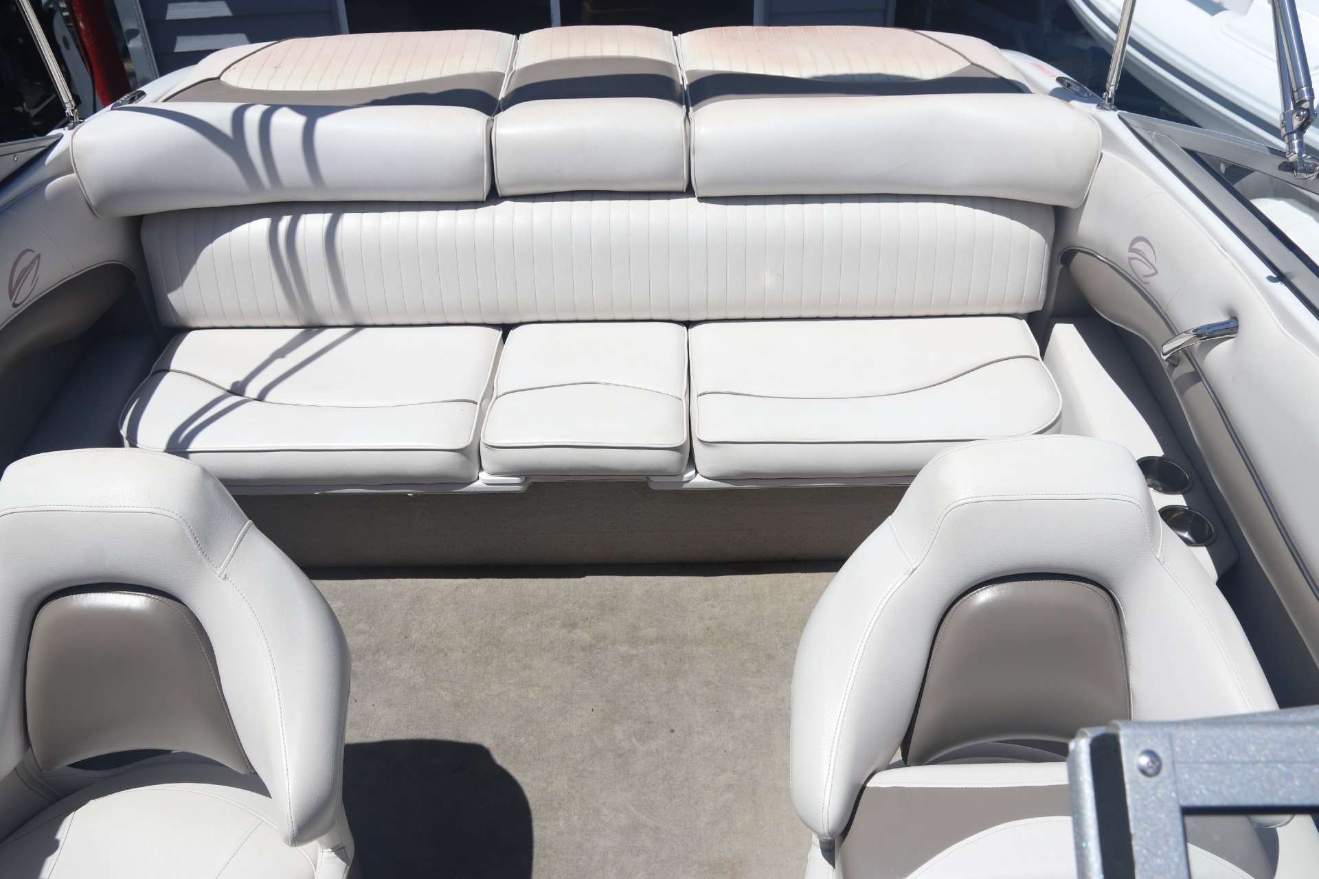 - Construction: Fiberglass bowrider with an extended fiberglass swim platform.