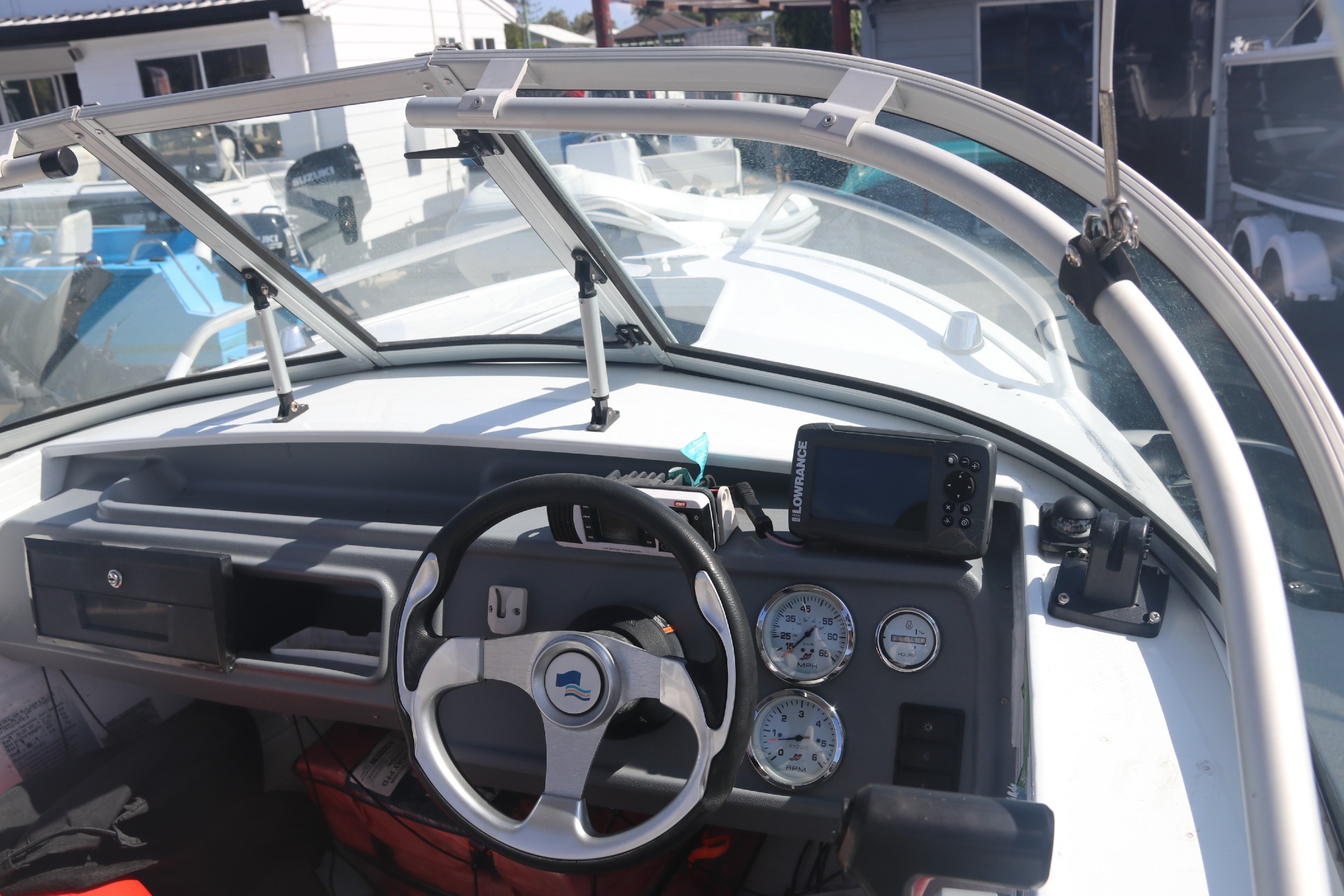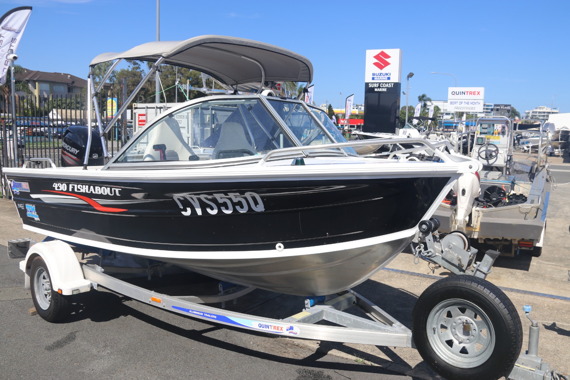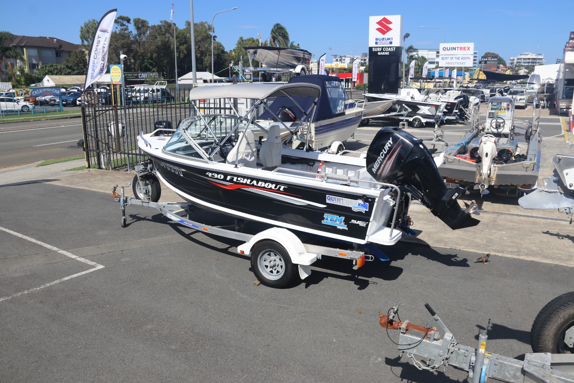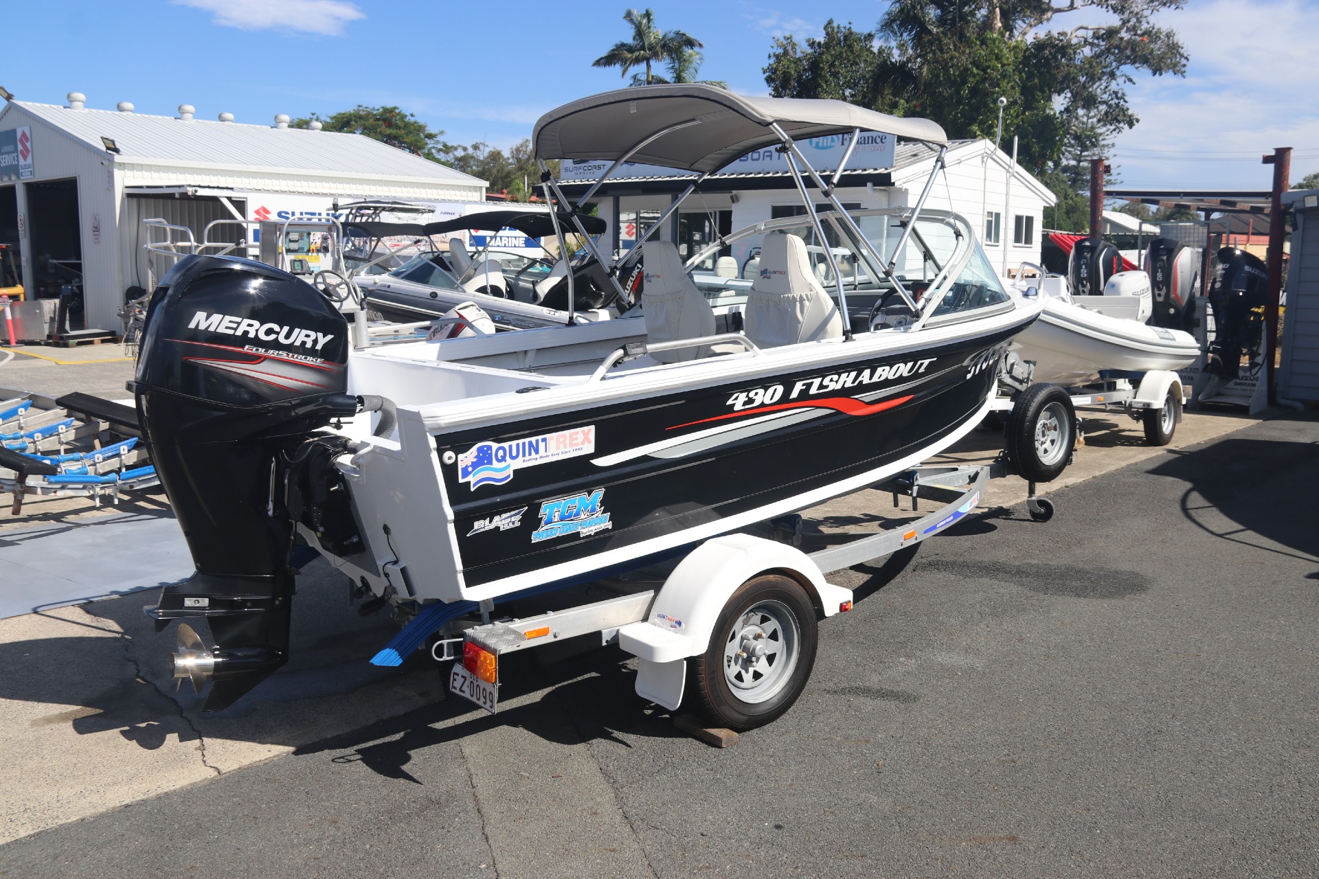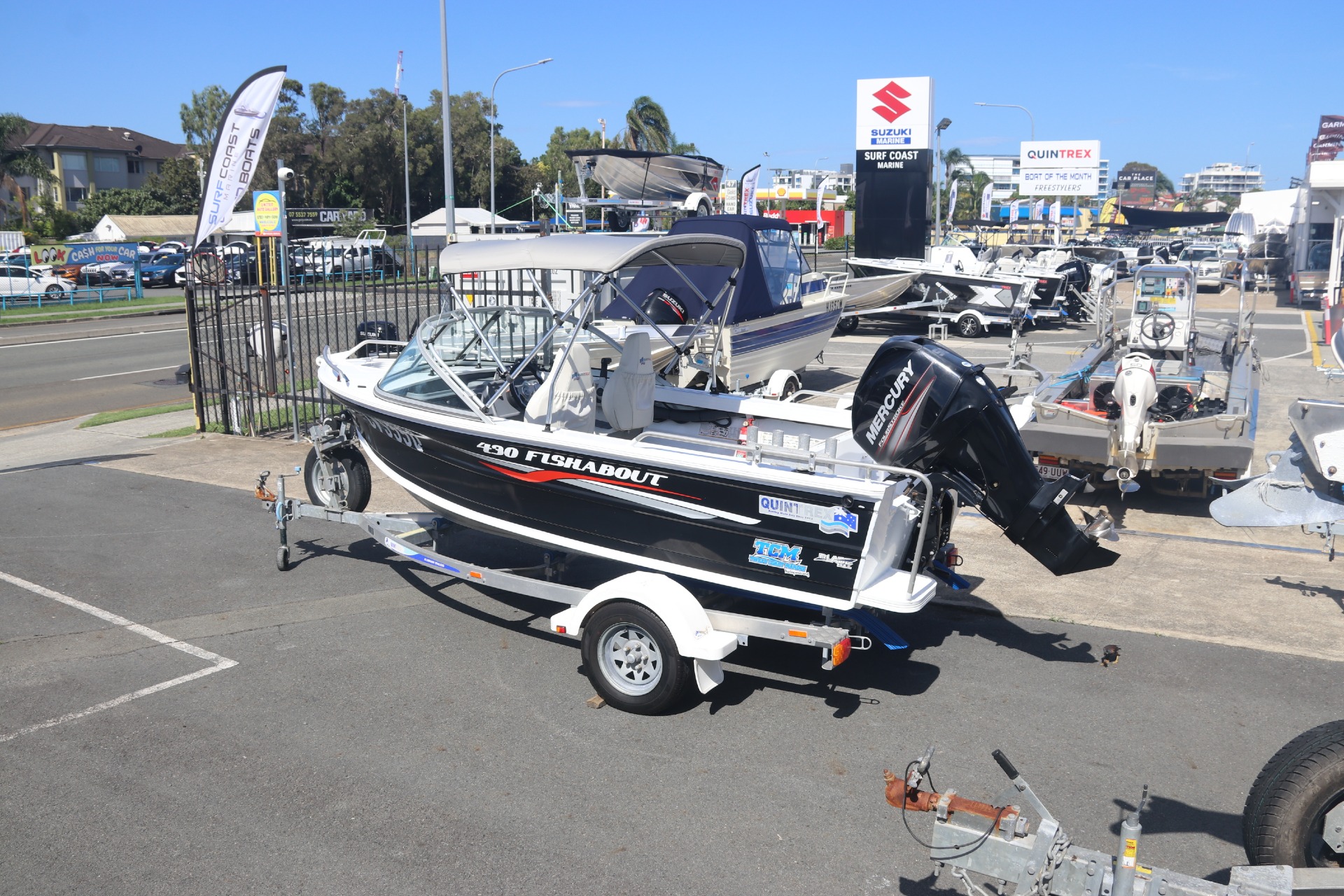 The Quintrex 430 Fishabout is the perfect size runabout for a days of fishing, cruising, . Along with the wrap around windscreen for excellent protection and split window for easy access to the anchor well. This package has had a comprehensive annual service with only 53hours, water tested as per photos, ready to hit the water!