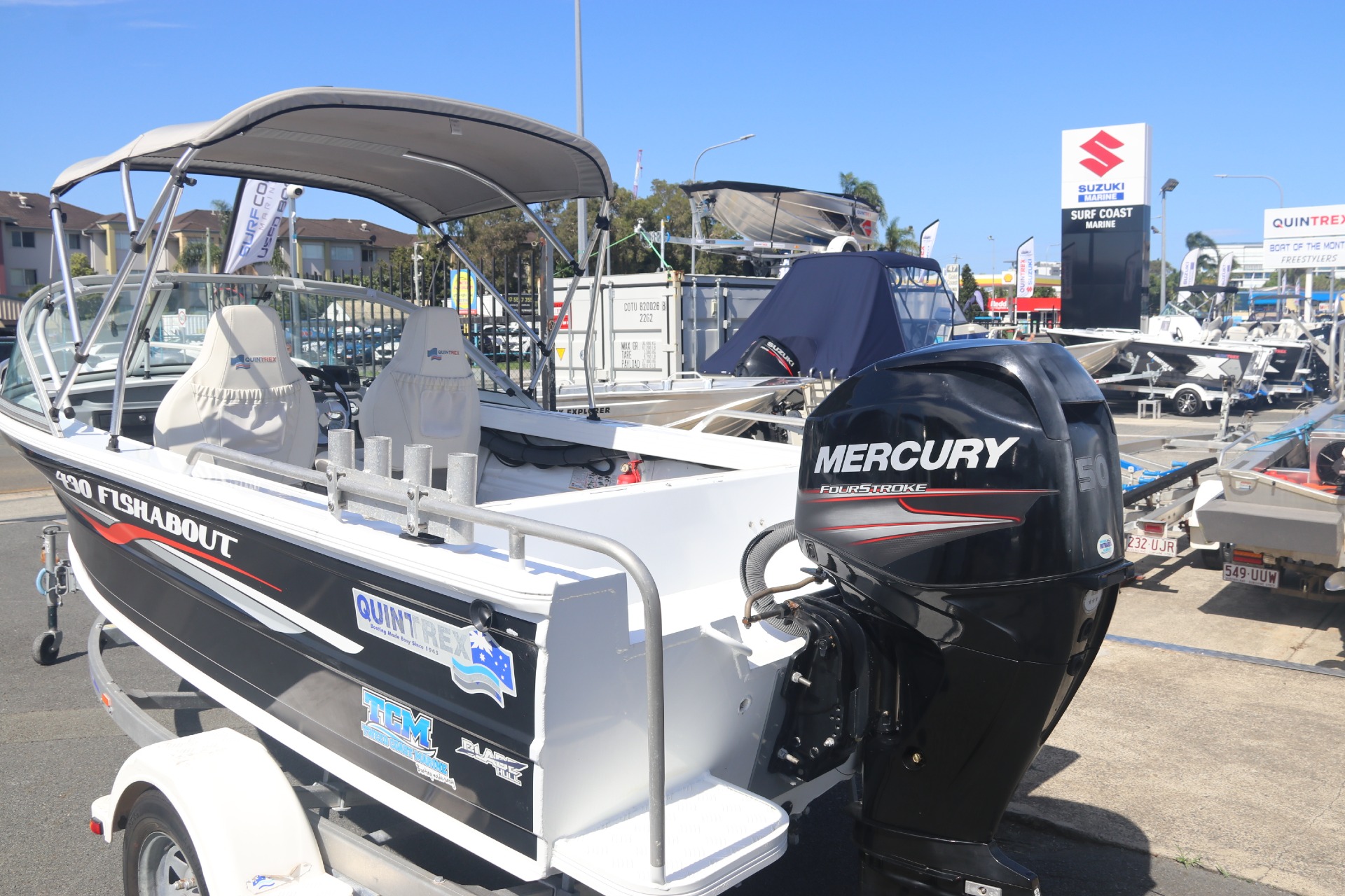 The Quintrex 430 Fishabout is the perfect size runabout for a day of fishing, cruising, . Along with the wrap around windscreen for excellent protection and split window for easy access to the anchor well. This package has had a comprehensive annual service with only 54hours, water tested as per photos, ready to hit the water!