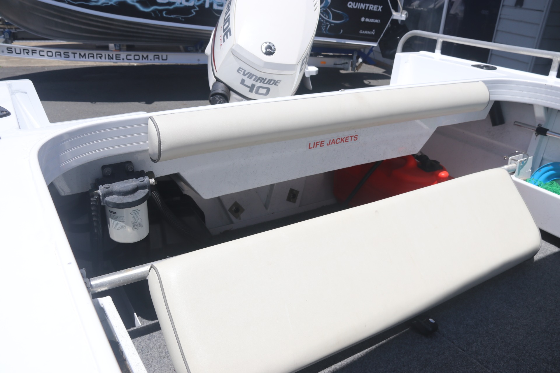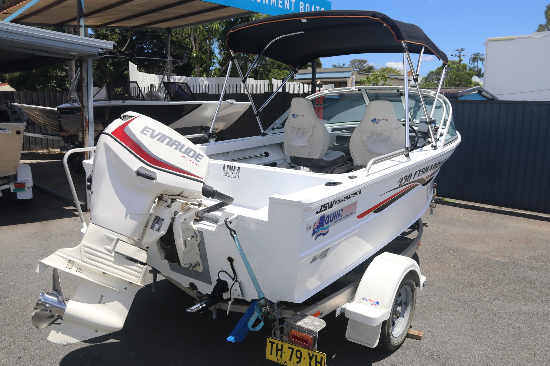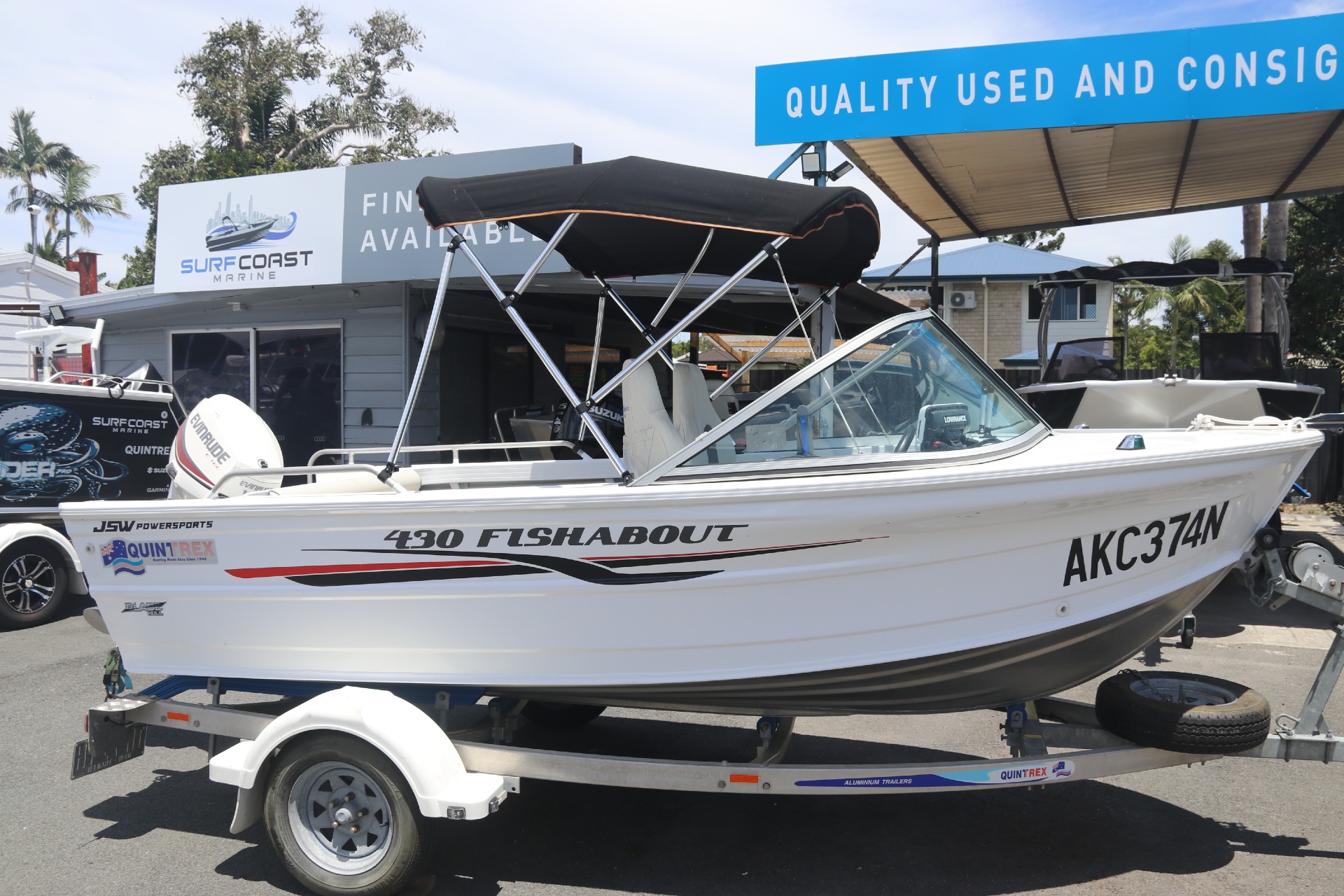 The Quintrex 430 Fishabout is the perfect size runabout for a days of fishing, cruising, . Along with the wrap around windscreen for excellent protection and split window for easy access to the anchor well. This package has had a comprehensive annual service with only 53hours, water tested as per photos, ready to hit the water!