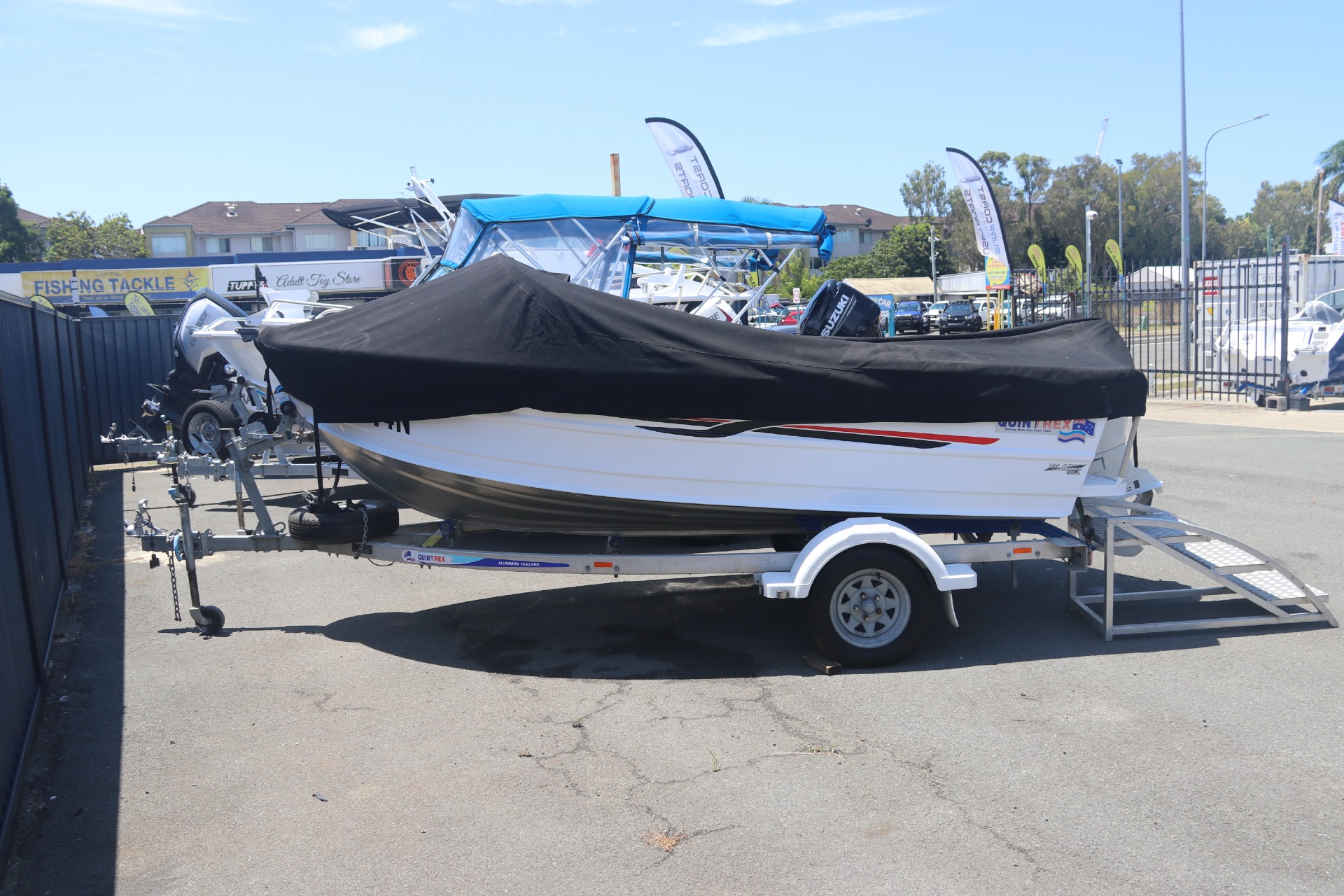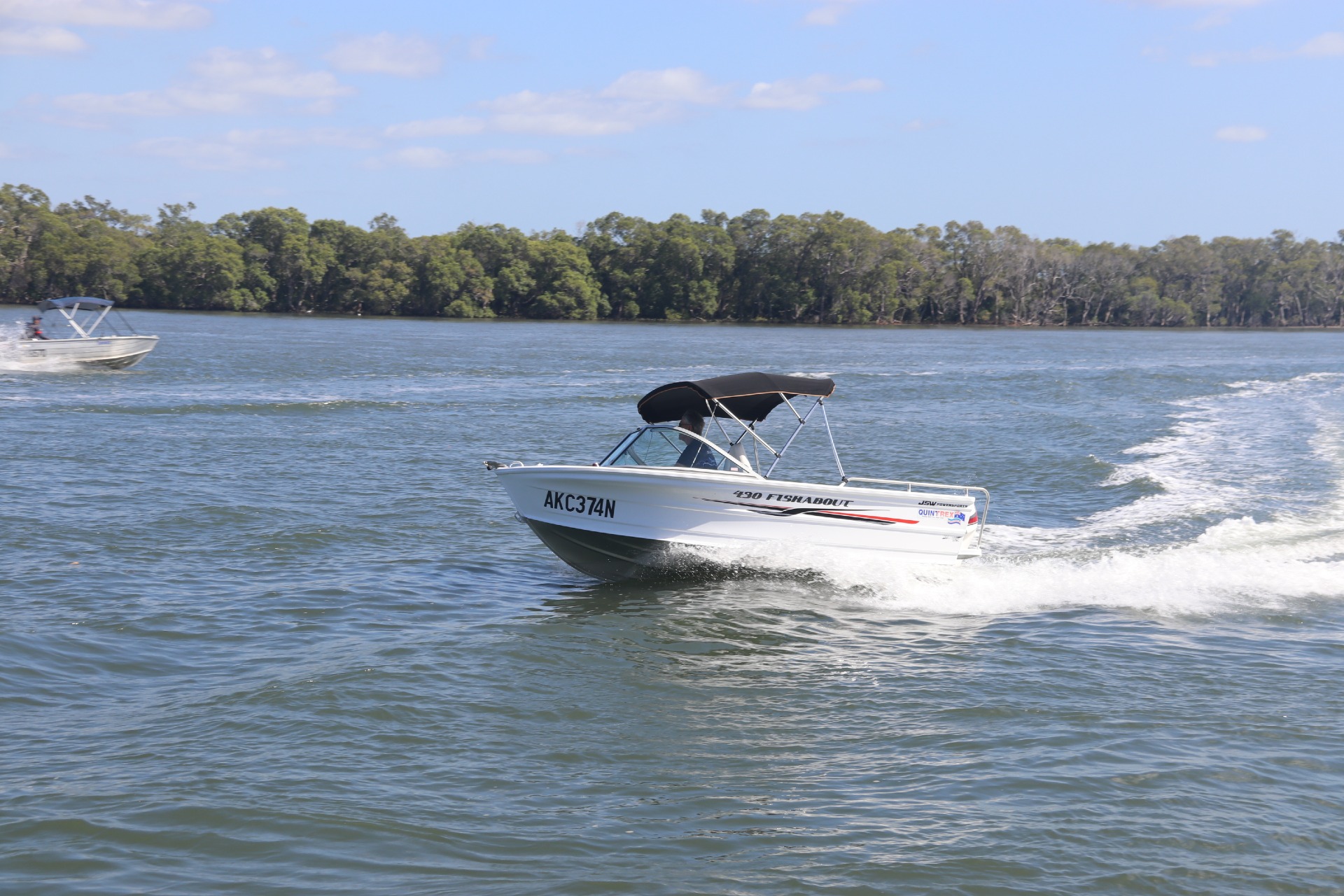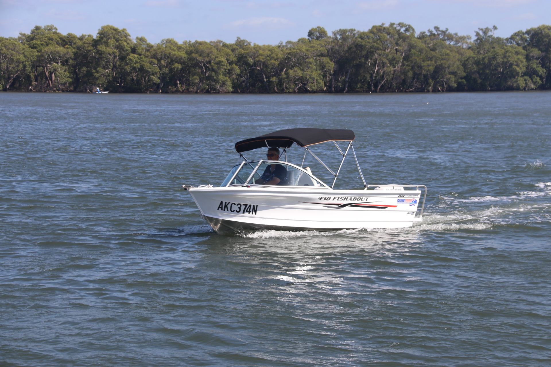 The Quintrex 430 Fishabout is the perfect size runabout for a days of fishing, cruising, . Along with the wrap around windscreen for excellent protection and split window for easy access to the anchor well. This package has had a comprehensive annual service with only 53hours, water tested as per photos, ready to hit the water!