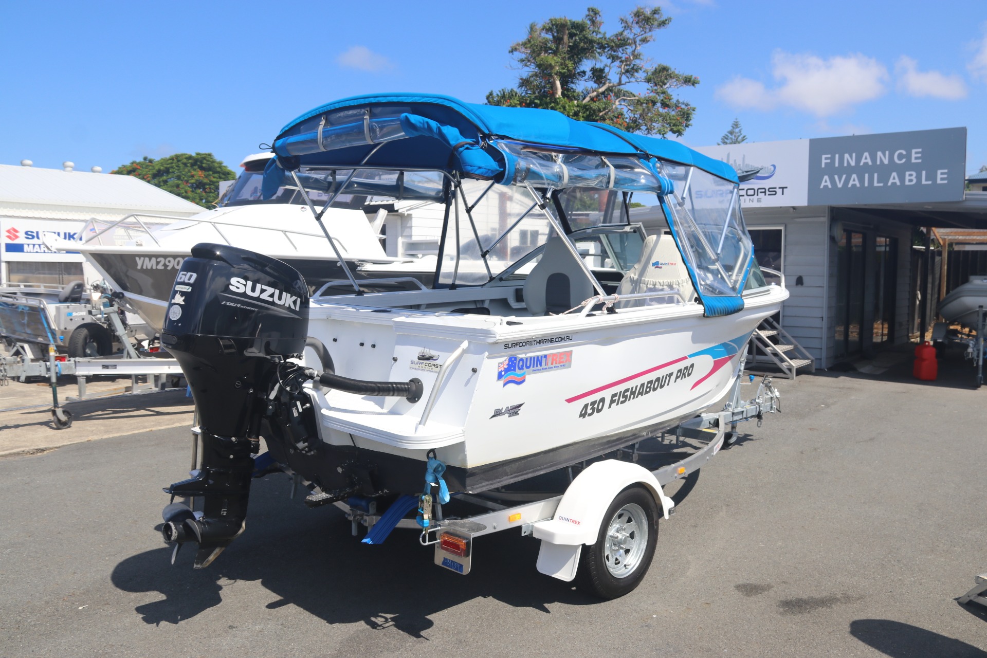 The Quintrex 430 Fishabout is the perfect size runabout for a days of fishing, cruising, . Along with the wrap around windscreen for excellent protection and split window for easy access to the anchor well. This package has had a comprehensive annual service with only 193hours, water tested as per photos, ready to hit the water!